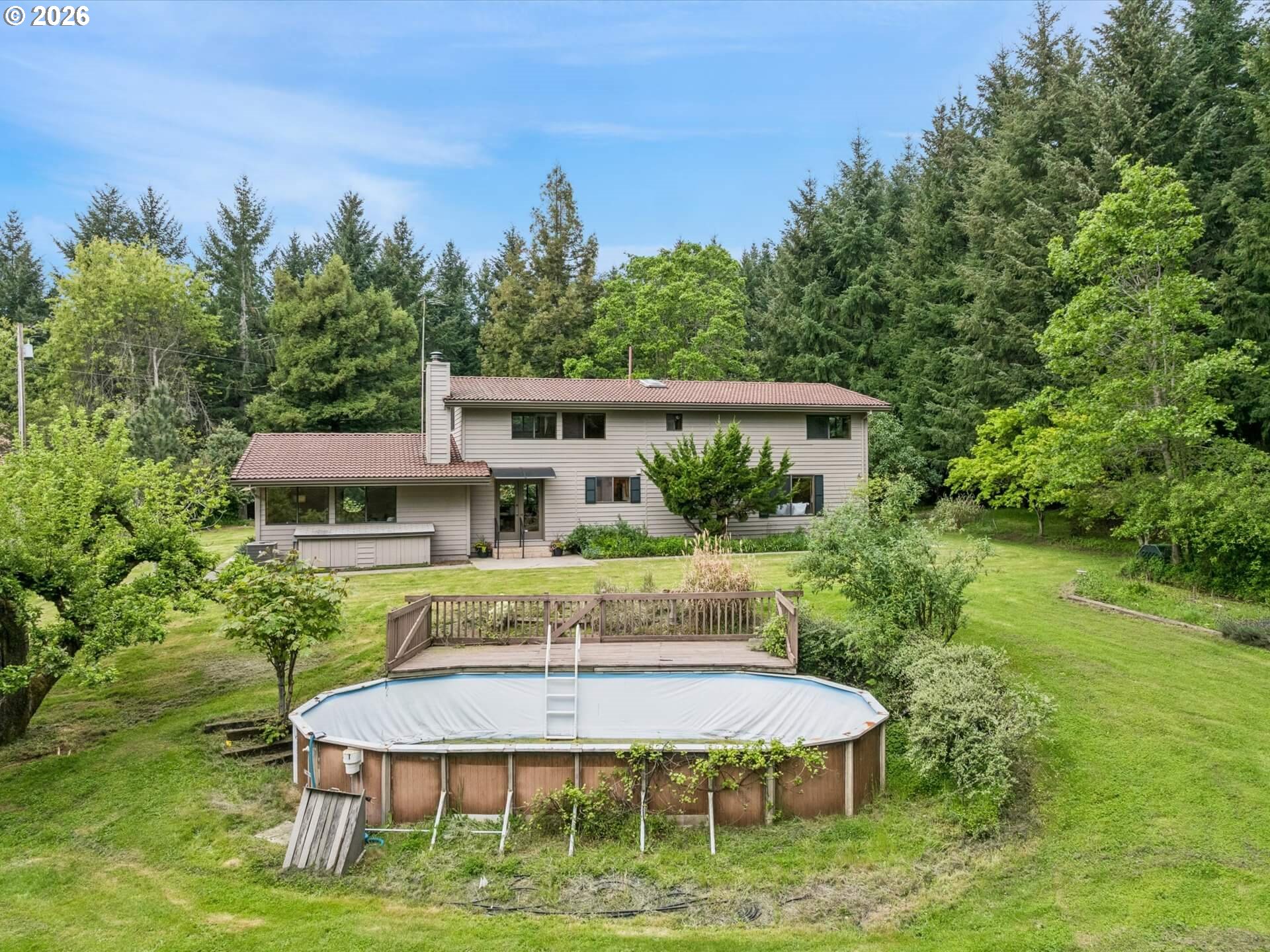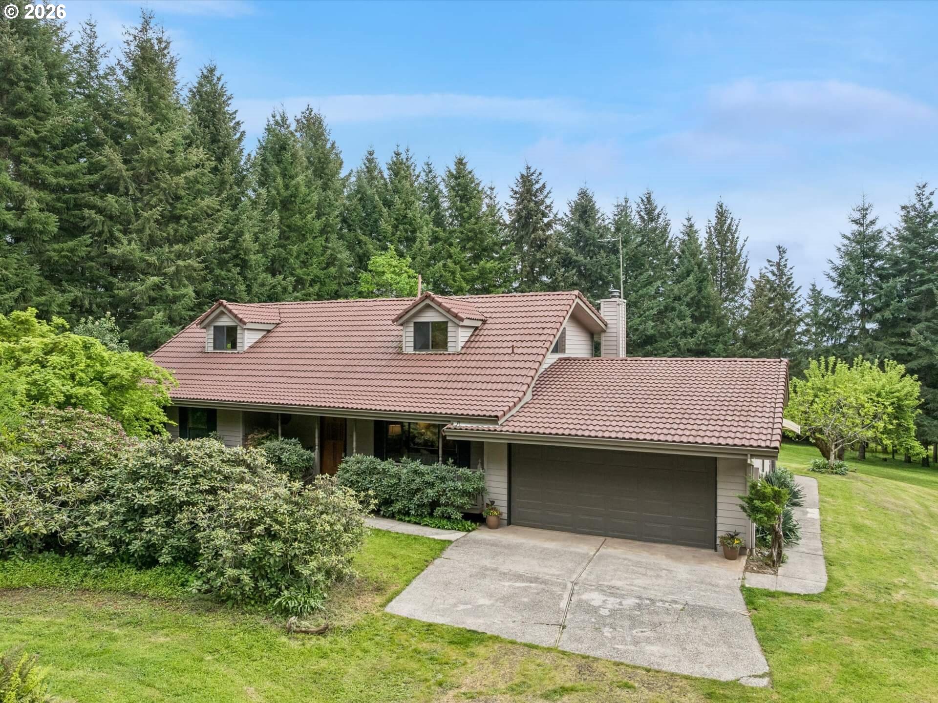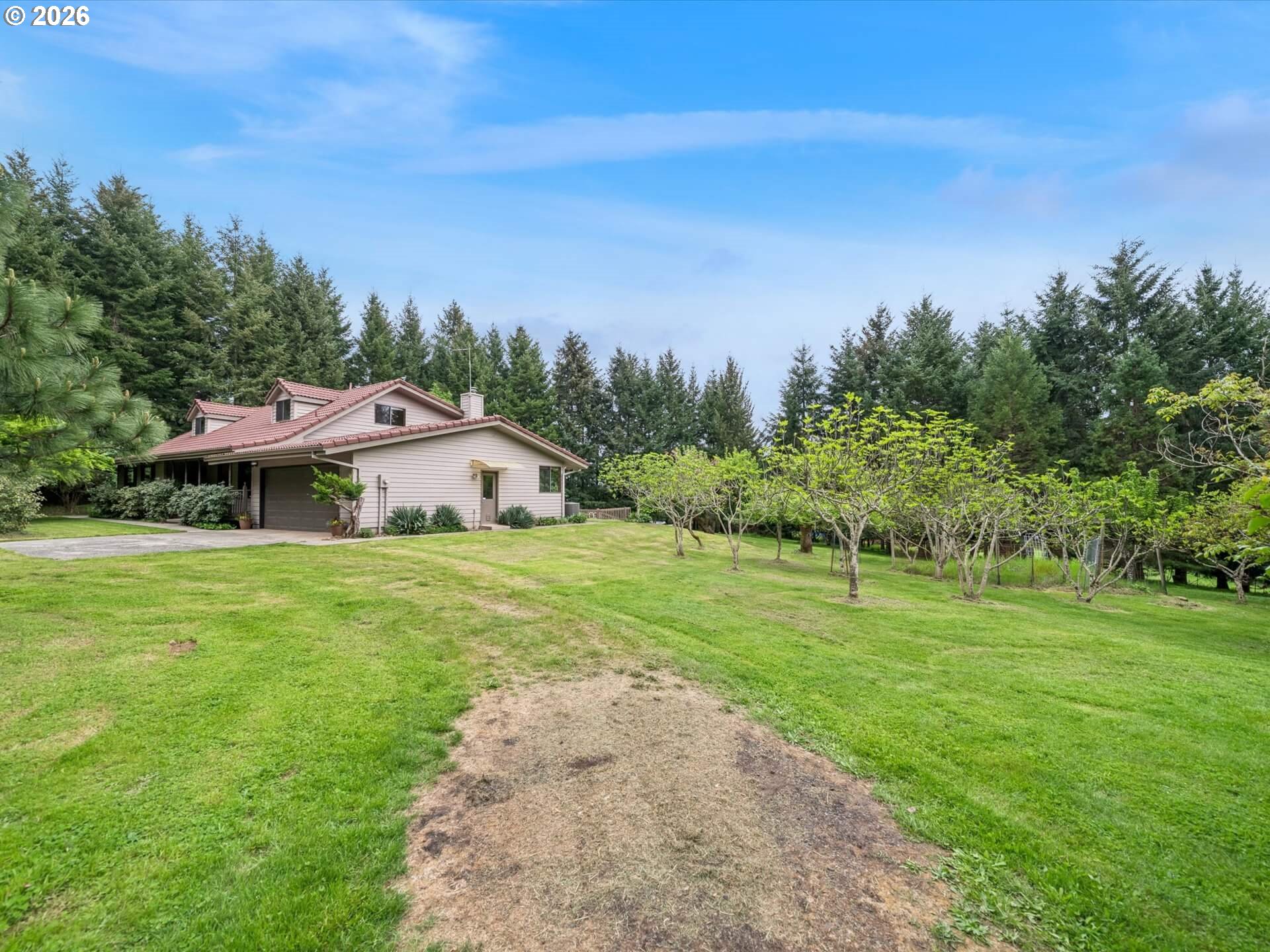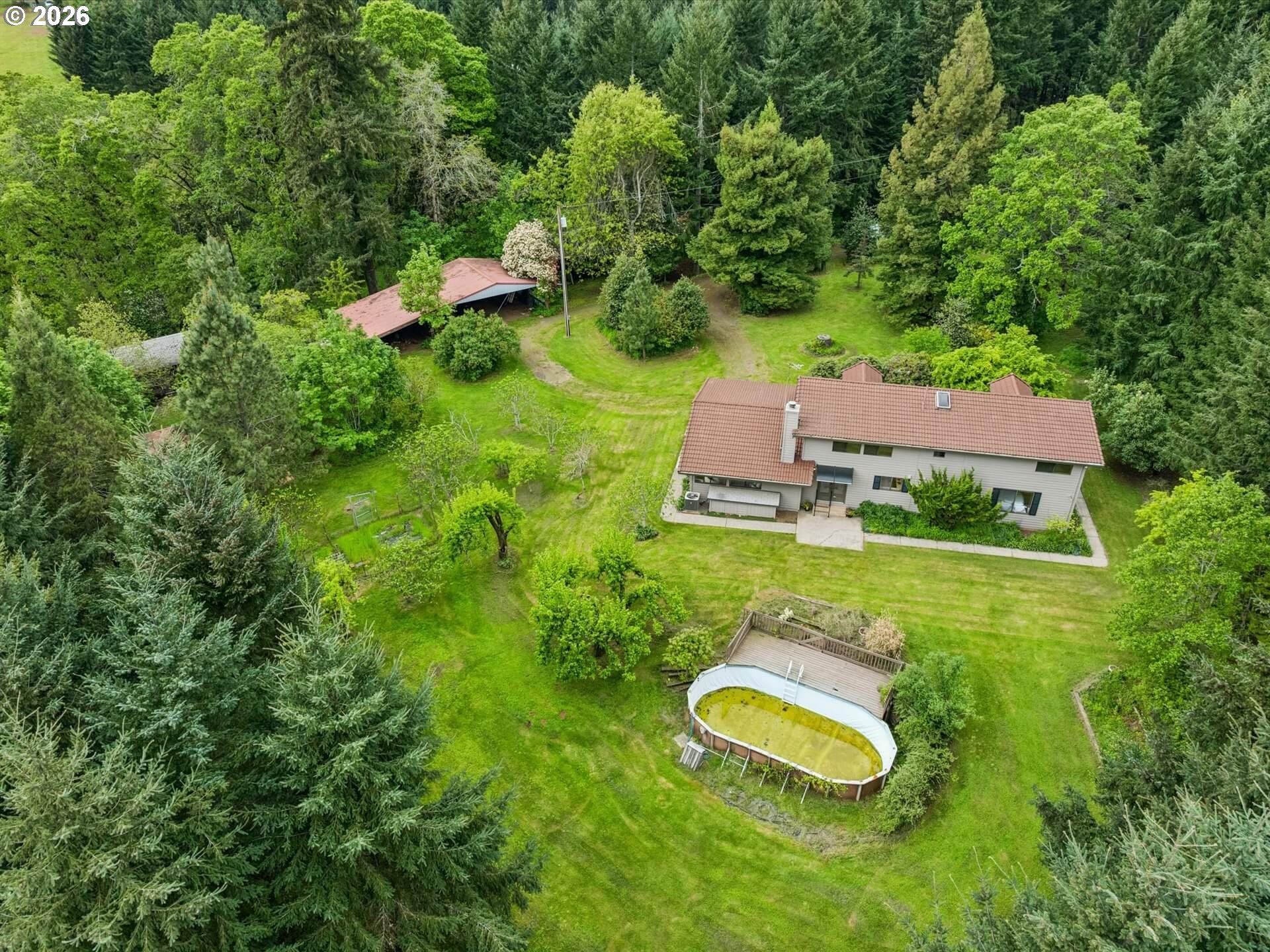 Acreage like this simply doesn’t come along. Just minutes to Wilsonville, this stunning 6+ acre setting blends curated beauty with true Northwest character—lush, manicured grounds, towering firs, rolling pasture, wooded trails, and a fruit tree orchard, all framed by private views and neighboring vineyard fields. The original-owner, custom-built 1984 home offers 5 bedrooms and 3.5 baths—solid, spacious, and ready to enjoy or elevate. Tile roof, recently painted cedar siding, newer HVAC with AC (2025), and new 200-amp panel (2025) brings comfort and peace of mind. A 360-ft well services house and property, and the large covered shed is perfect for tractors and gear. County forest deferral keeps taxes low. Private. Usable. Close-in. Rare. A true lifestyle property with space to breathe, room to grow, and endless potential—properties like this are tightly held and seldom available.