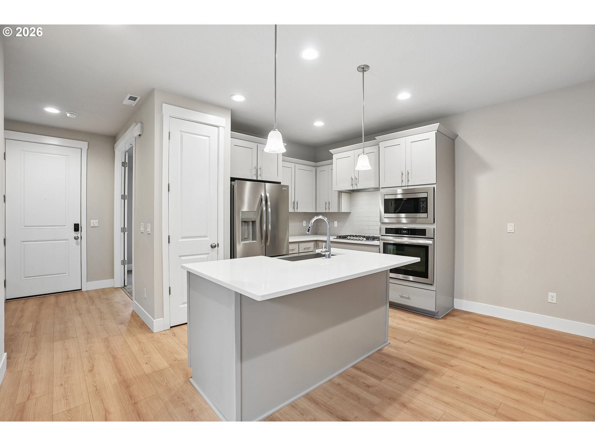 Dishwasher, Disposal, FreeStandingGasRange, GasAppliances, Island, Microwave, PlumbedForIceMaker, Stainless