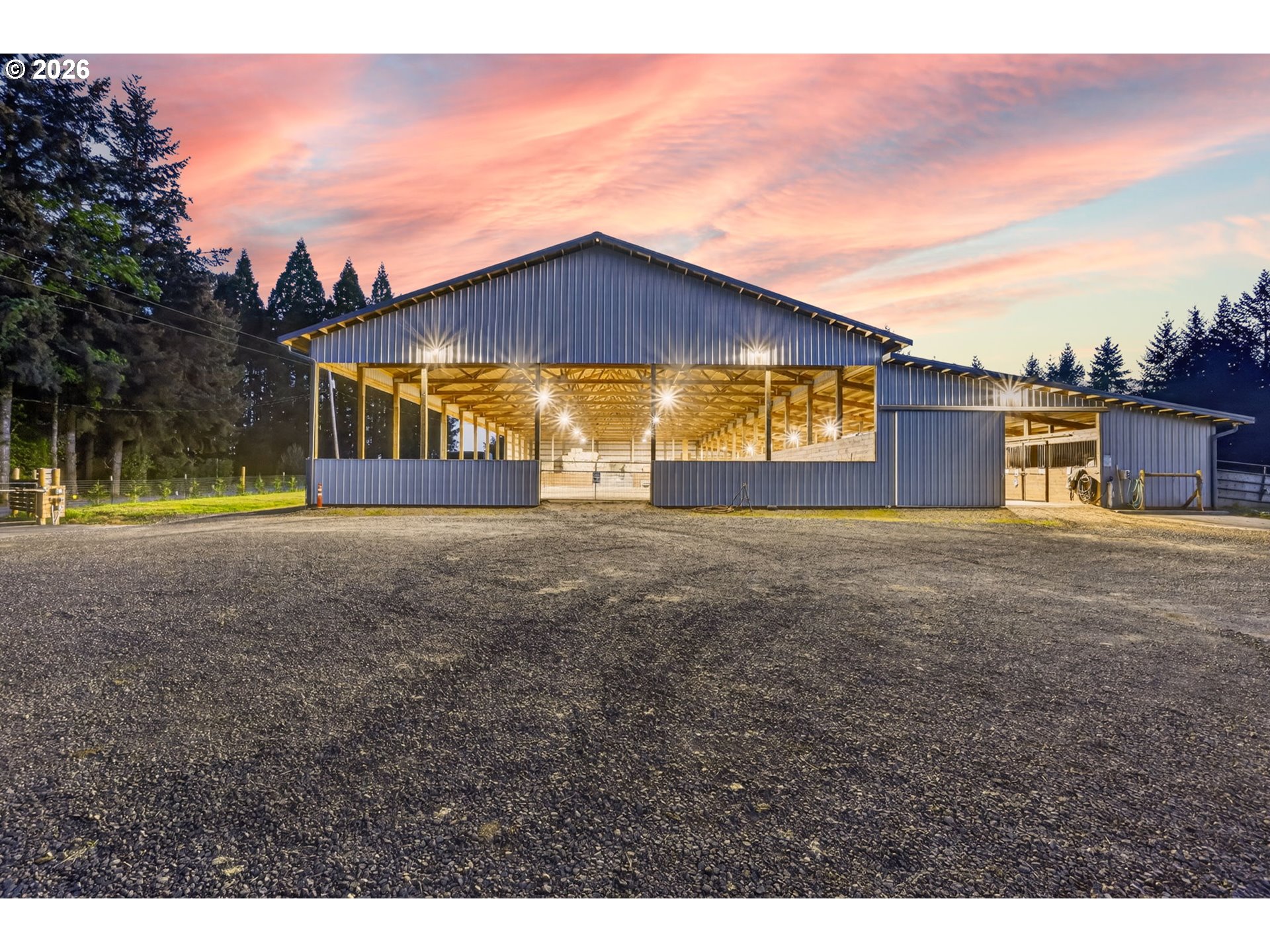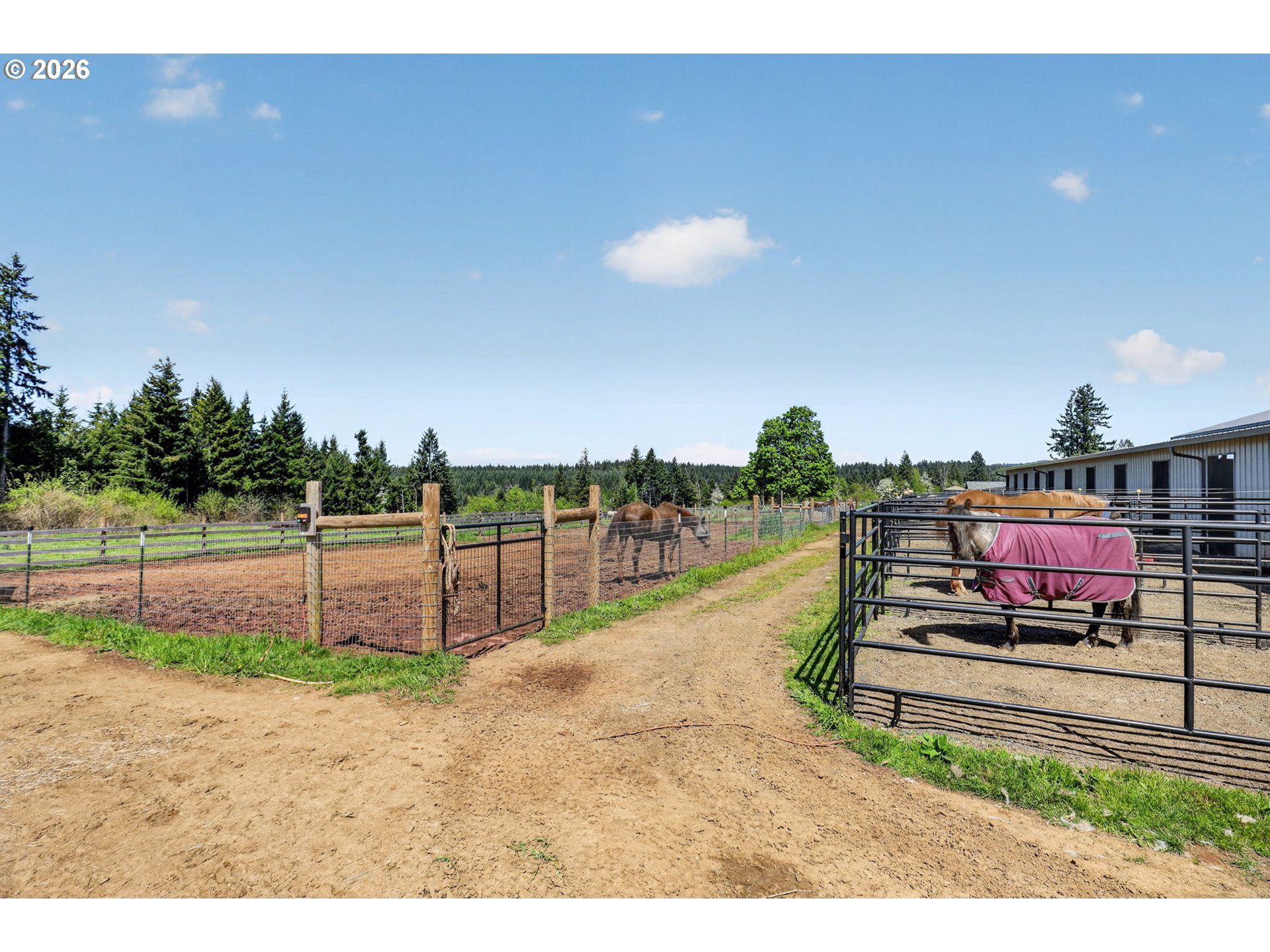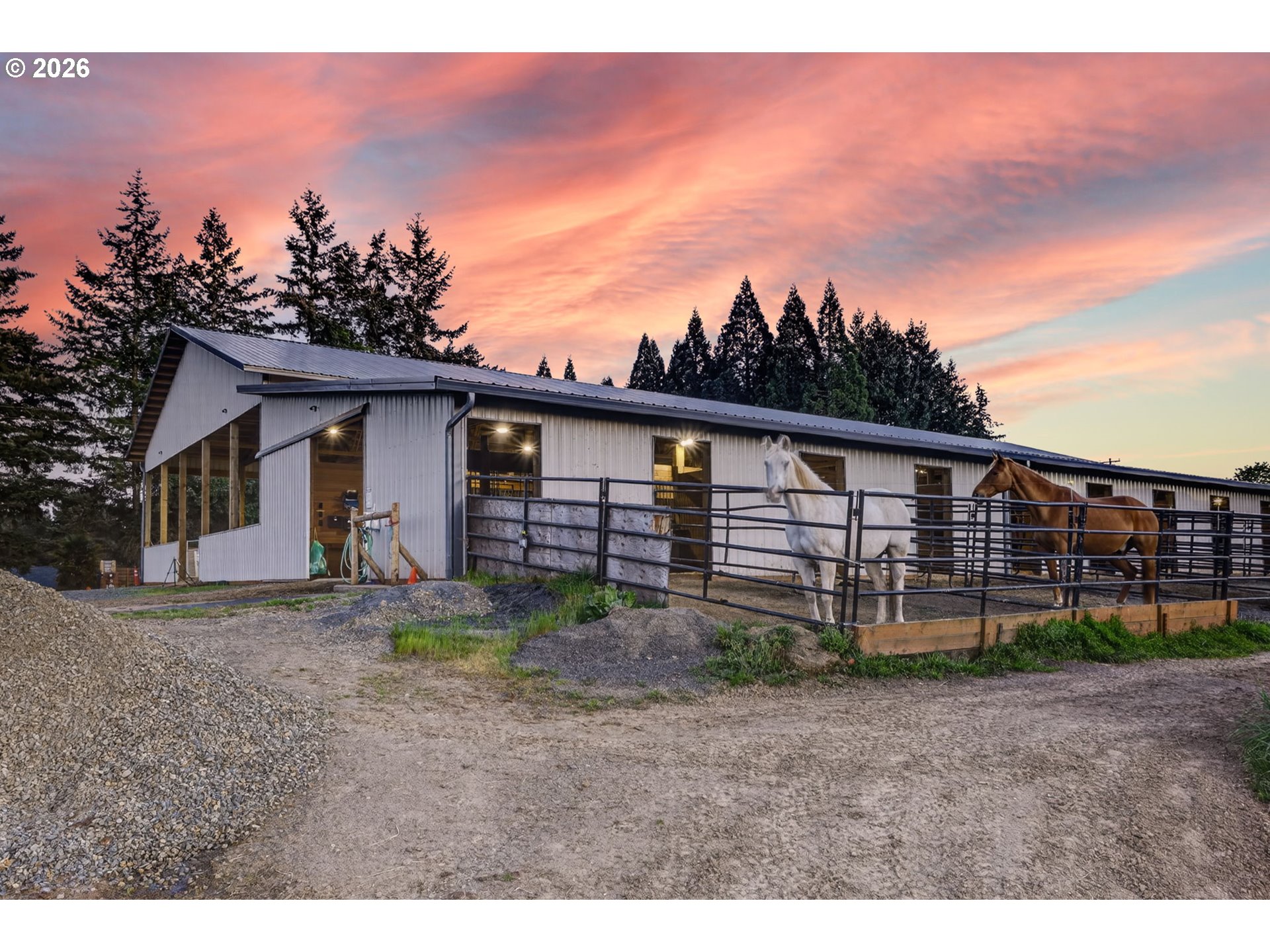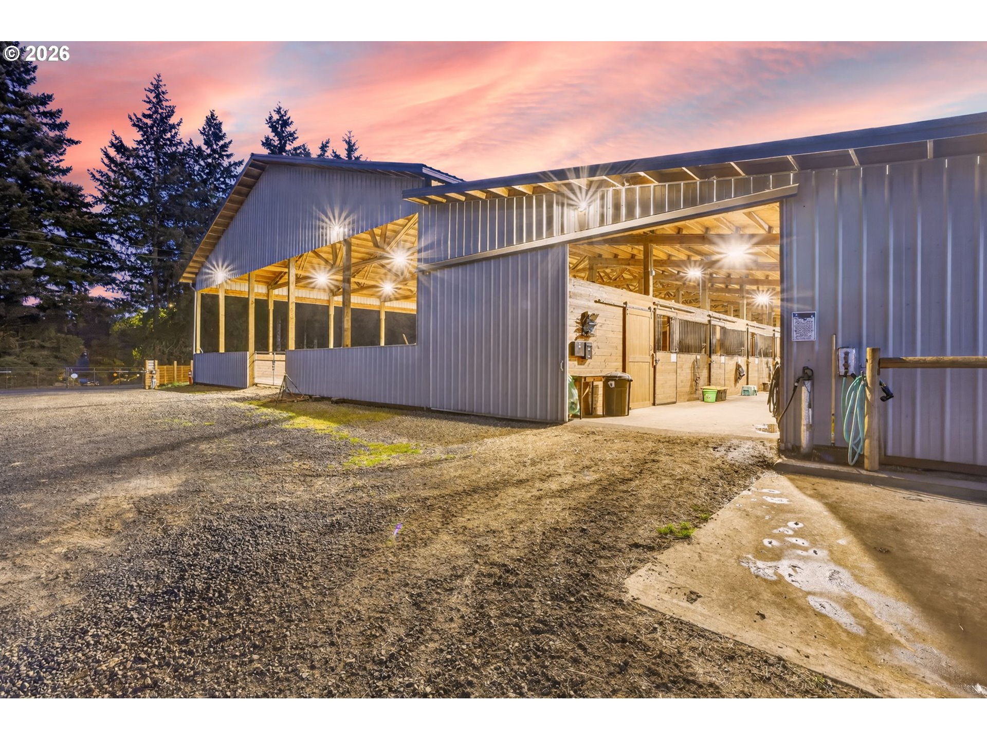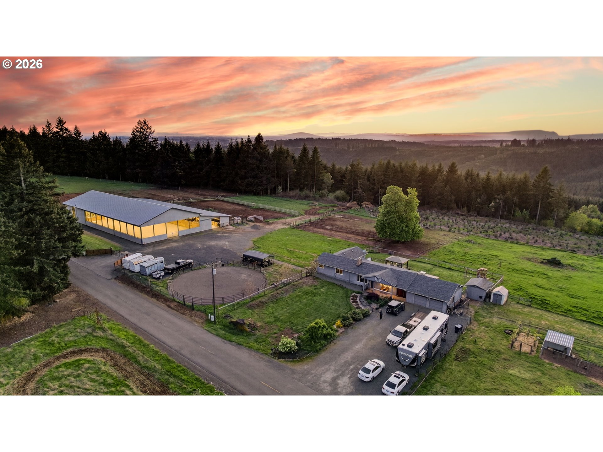 Amazing equestrian property is a perfect 10! Set on 10 private, picturesque acres, including 2 acres of trails on the back portion of the property, offering a peaceful setting with breathtaking sunset views. One level Ranch offering 3 beds, 1.5 baths-both have been updated and refreshed. Laminate flooring through the entire living space and bedrooms. The living room is inviting, with a certified wood stove and natural rock fireplace. Open floor plan for the kitchen and dinning room, slider to back covered trek deck w/gazebo for outside living, BBQ'ing and entertaining with views of the livestock, horses and sunsets. The indoor arena (120x60) built in 2023 has great footing, LED lights, and storage for up to 28 tons of hay. 24-12x12 stalls, 11 are box stalls, while 13 have 12x24 mud free runs, two tack rooms on either side of the concrete aisle way with 4 stations of crossties w/fold up saddle racks for easy saddling. In the pasture there are 14 cross-fenced turnouts with water (frost-free hose-bibs) 65 ft. round pen and an outdoor arena 80x156, with two additional grazing pastures. Patience Pole and a Hot water wash rack for convenience. Walk out the back pasture and find your self trail riding or hiking in miles of trails bordering this property and 3 miles from BLM land at the cross roads of Unger/Olsen. An electric gate to the facility to ensure your security and ease for coming and going with lots of parking for horse trailers allowing convenience for your boarders. Income producing equestrian facility that is turn key and ready for the next owners. 1900's barn (30x70) offering more room and cover for other livestock, additionally a 3-bay(48x54) metal shop with a 16x36 loafing shed for your RV/Boat/trailer storage needs. Don't forget the chicken coup and mature fruit trees, 900 fir's were planted in 2021. Roof/Gutters were new in 2016, Ext paint 2016, Heat pump is 5 years old, furnace is 10 yrs old. Entire home was re-plumbed w/Wirsbo 2023.