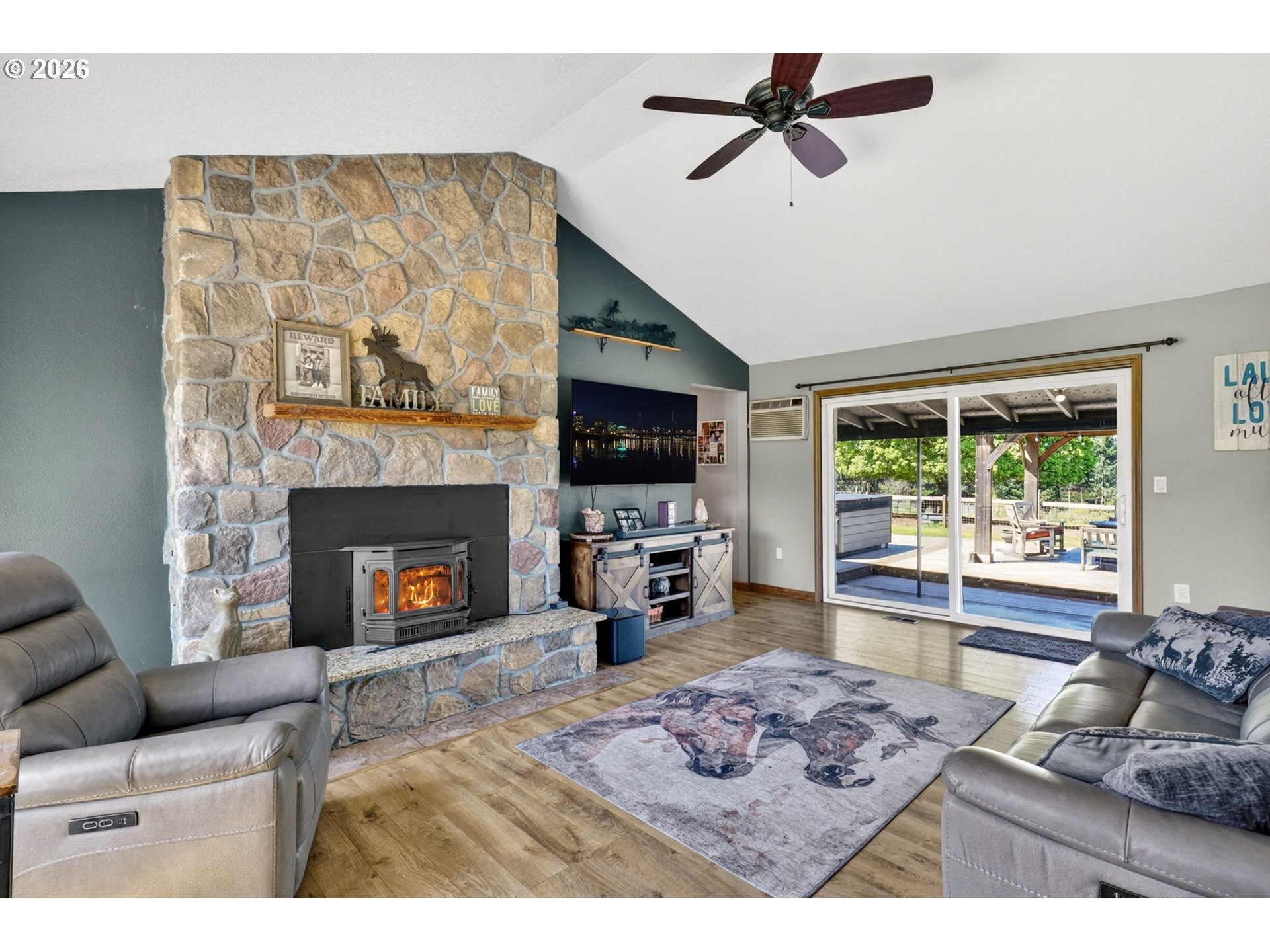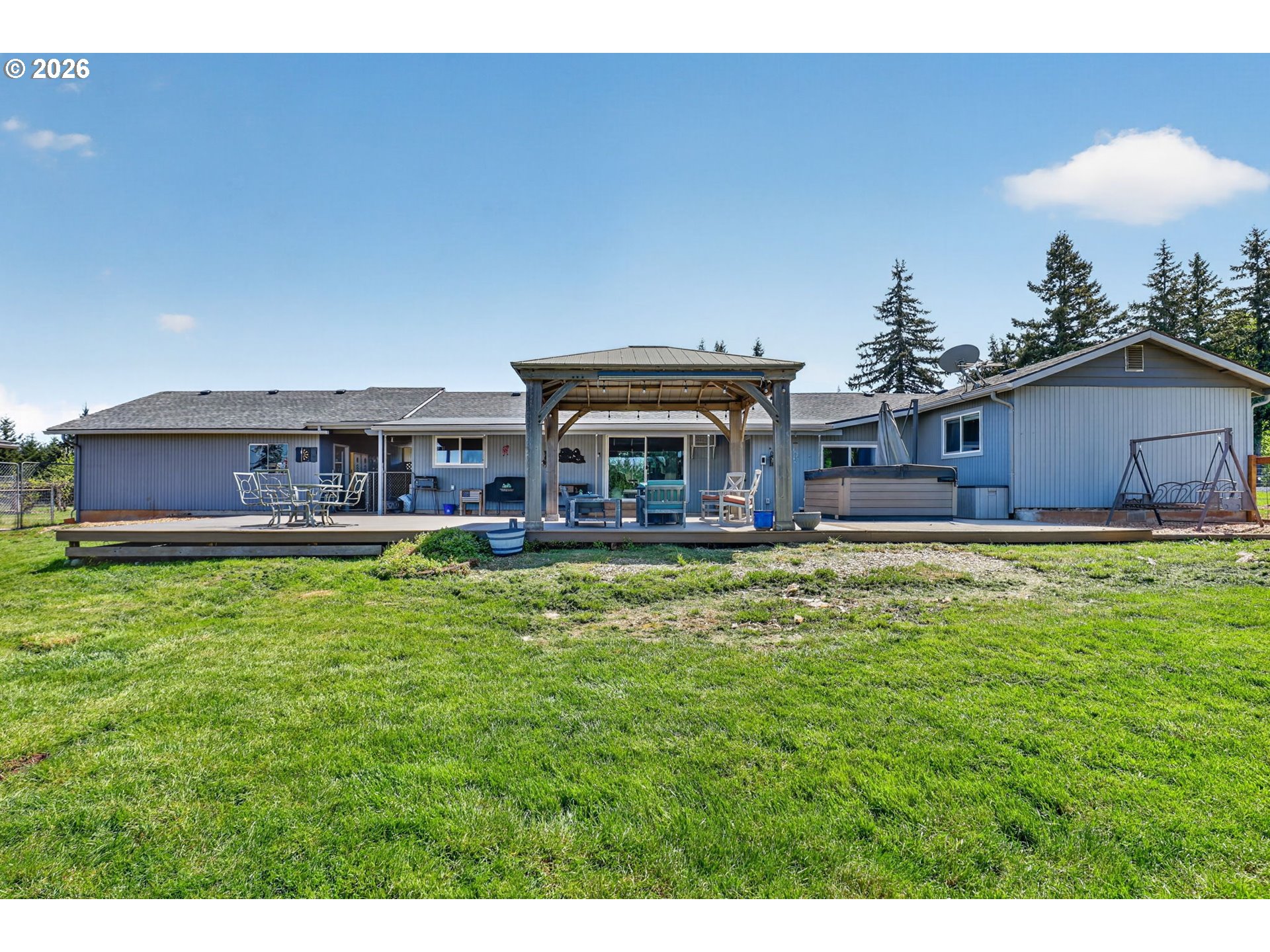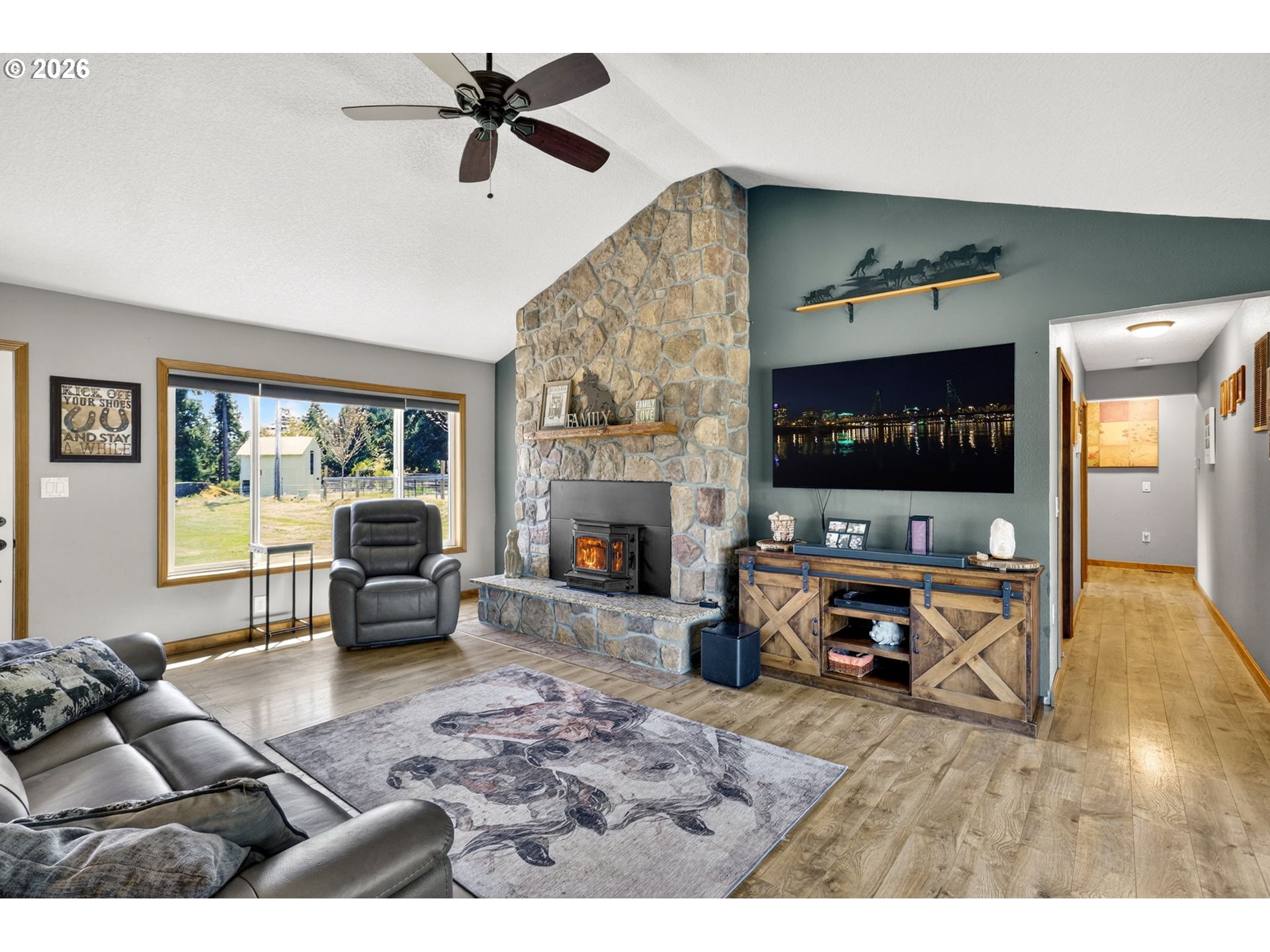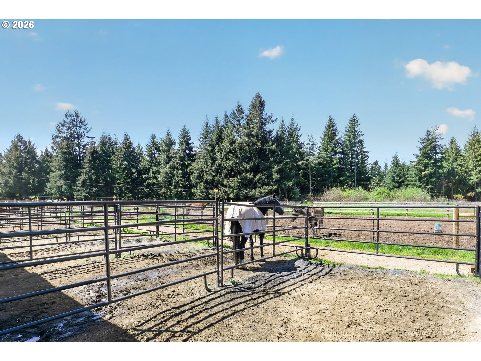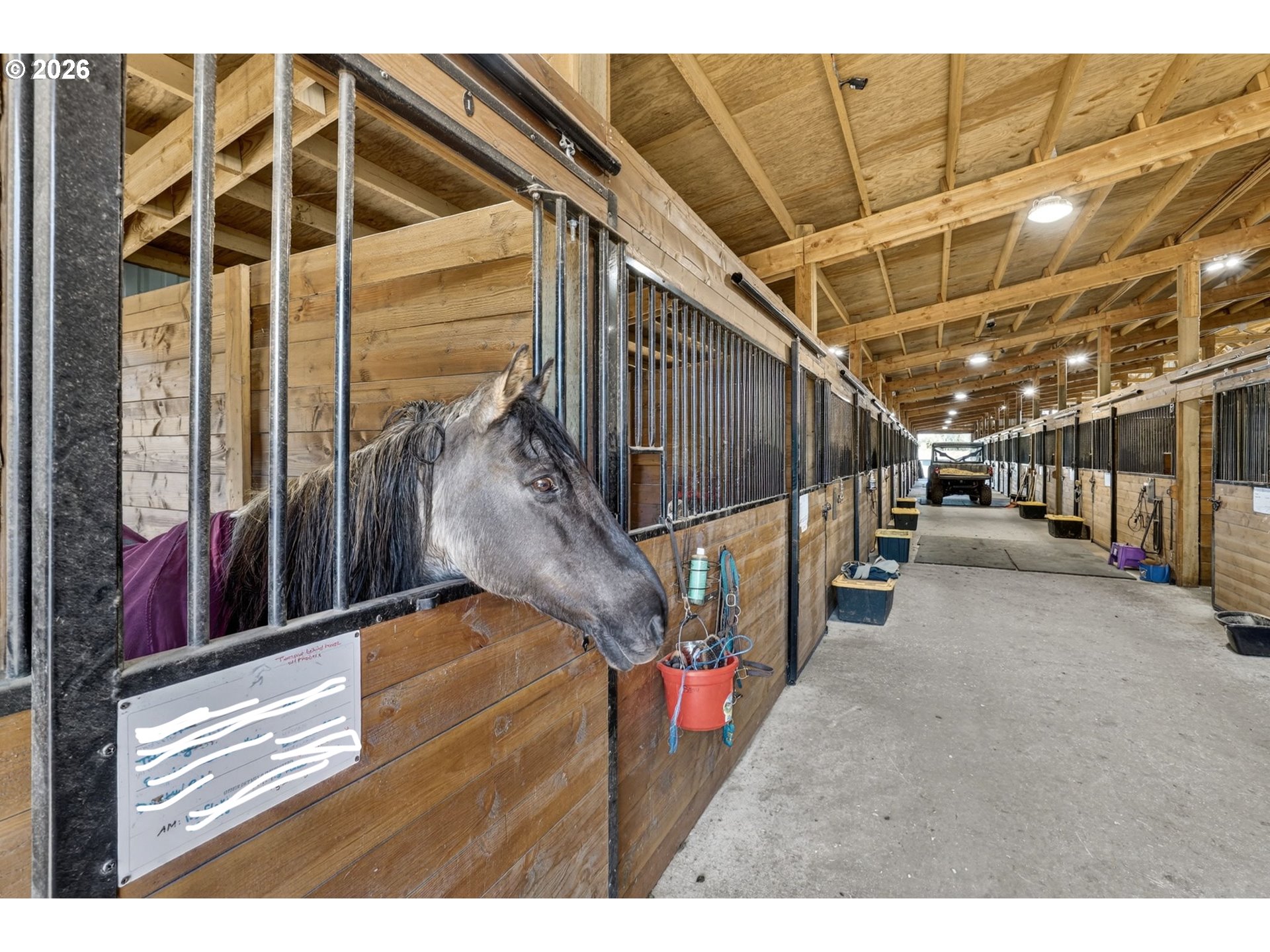 Amazing equestrian property is a perfect 10! Set on 10 private, picturesque acres, including 2 acres of trails on the back portion of the property, offering a peaceful setting with breathtaking sunset views. One level Ranch offering 3 beds, 1.5 baths-both have been updated and refreshed. Laminate flooring through the entire living space and bedrooms. The living room is inviting, with a certified wood stove and natural rock fireplace. Open floor plan for the kitchen and dinning room, slider to back covered trek deck w/gazebo for outside living, BBQ'ing and entertaining with views of the livestock, horses and sunsets. The indoor arena (120x60) built in 2023 has great footing, LED lights, and storage for up to 28 tons of hay. 24-12x12 stalls, 11 are box stalls, while 13 have 12x24 mud free runs, two tack rooms on either side of the concrete aisle way with 4 stations of crossties w/fold up saddle racks for easy saddling. In the pasture there are 14 cross-fenced turnouts with water (frost-free hose-bibs) 65 ft. round pen and an outdoor arena 80x156, with two additional grazing pastures. Patience Pole and a Hot water wash rack for convenience. Walk out the back pasture and find your self trail riding or hiking in miles of trails bordering this property and 3 miles from BLM land at the cross roads of Unger/Olsen. An electric gate to the facility to ensure your security and ease for coming and going with lots of parking for horse trailers allowing convenience for your boarders. Income producing equestrian facility that is turn key and ready for the next owners. 1900's barn (30x70) offering more room and cover for other livestock, additionally a 3-bay(48x54) metal shop with a 16x36 loafing shed for your RV/Boat/trailer storage needs. Don't forget the chicken coup and mature fruit trees, 900 fir's were planted in 2021. Roof/Gutters were new in 2016, Ext paint 2016, Heat pump is 5 years old, furnace is 10 yrs old. Entire home was re-plumbed w/Wirsbo 2023.