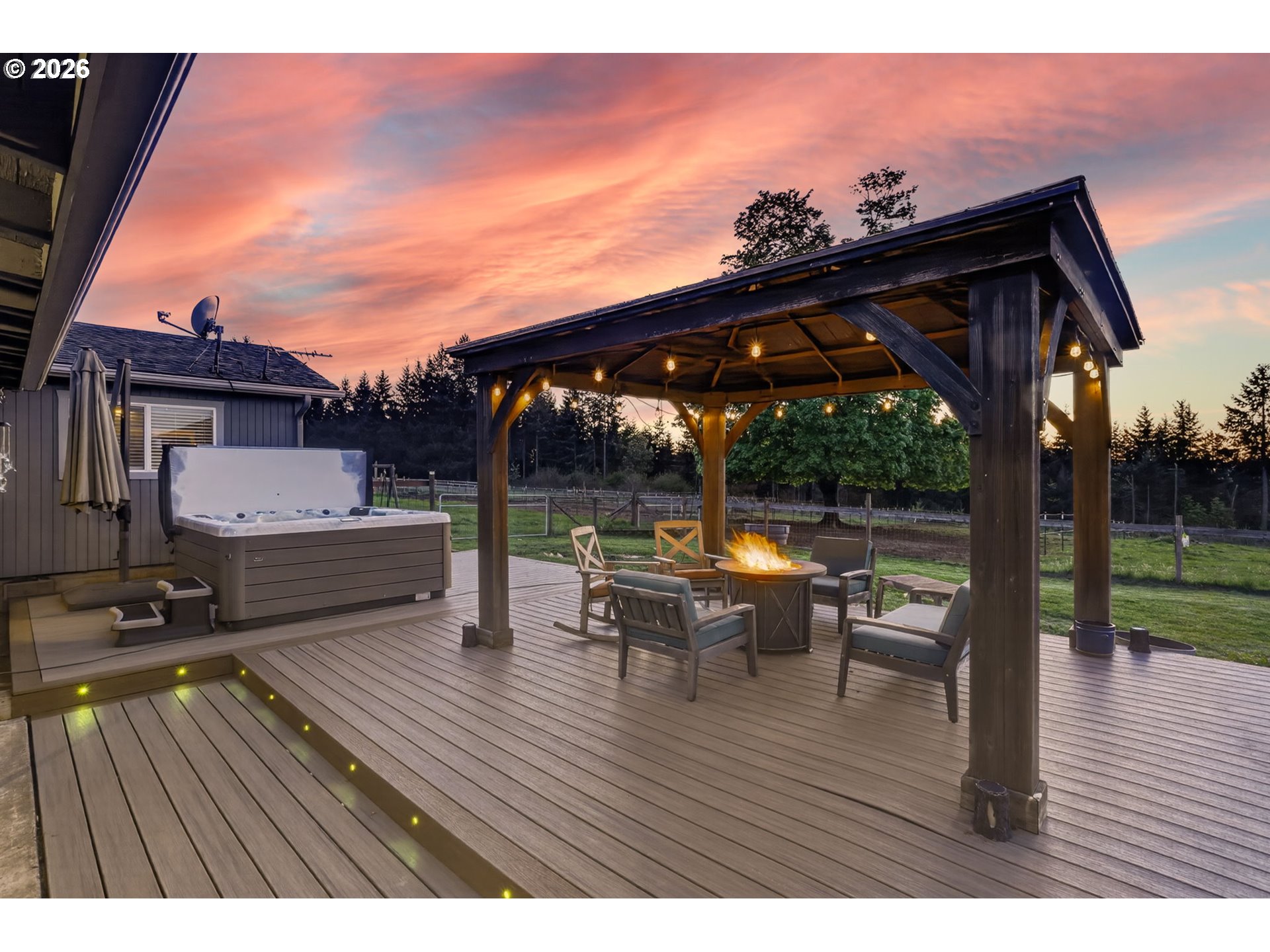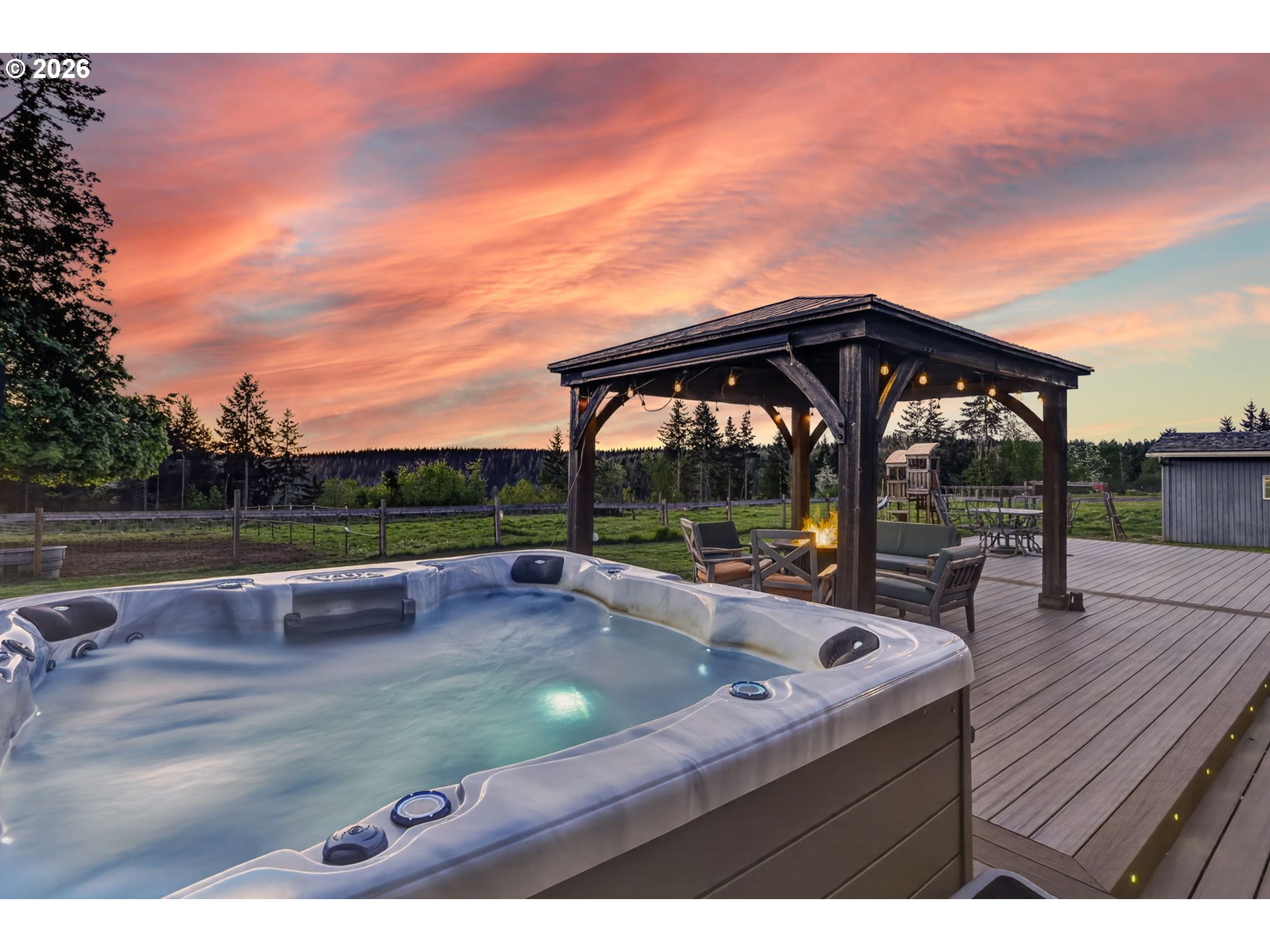 Arena, Barn, BuiltinHotTub, CoveredArena, CoveredPatio, Deck, Fenced, Garden, Gazebo, Outbuilding, PoultryCoop