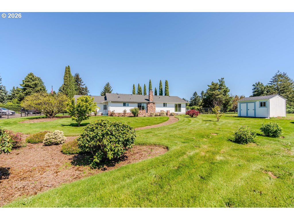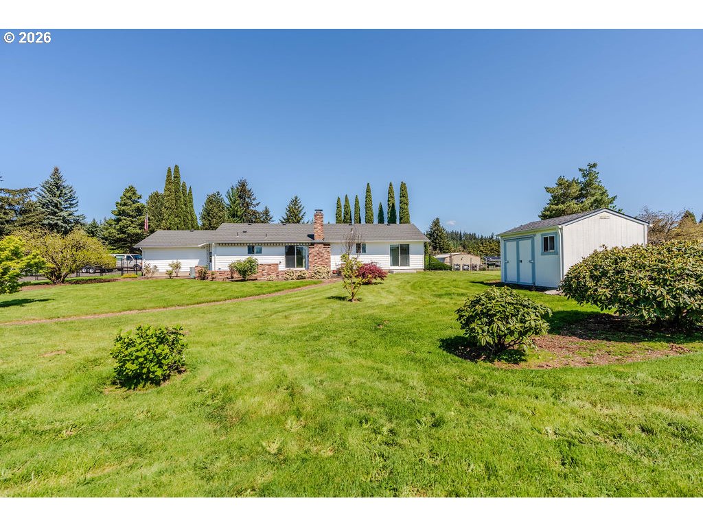 Single level home located on beautiful flat landscaped acre lot on a Cul-De-Sac. Very nice and well kept neighborhood. Plenty of room to build additional structures, shop, ADU etc. (Buyer is responsible for all Due Diligence). 3 bedroom 2 bath 2 car garage. Masonry fireplace. Nice cozy floor plan. Fenced and landscaped yard with 12'x10' Tuff Shed for yard and garden tool storage.