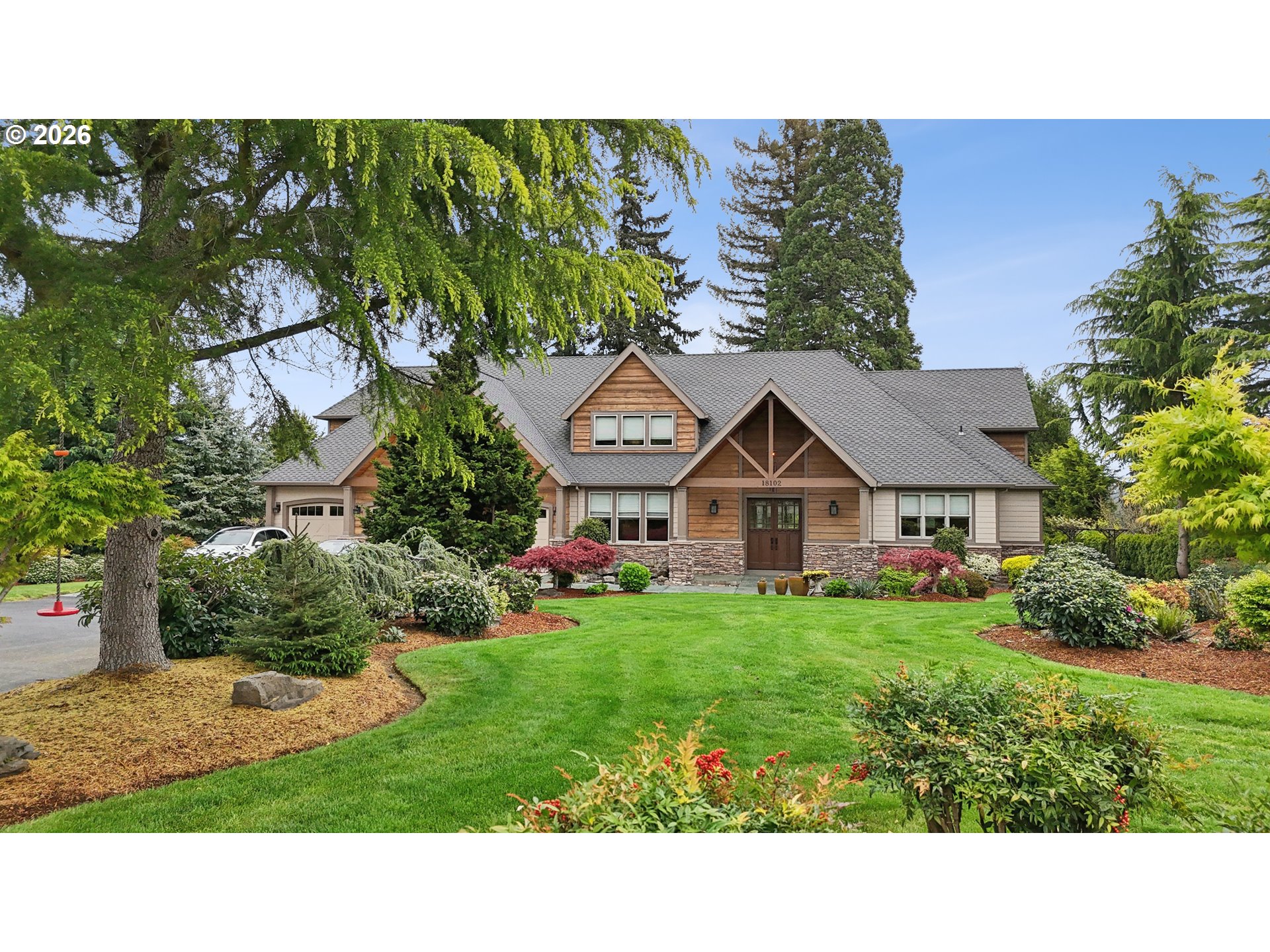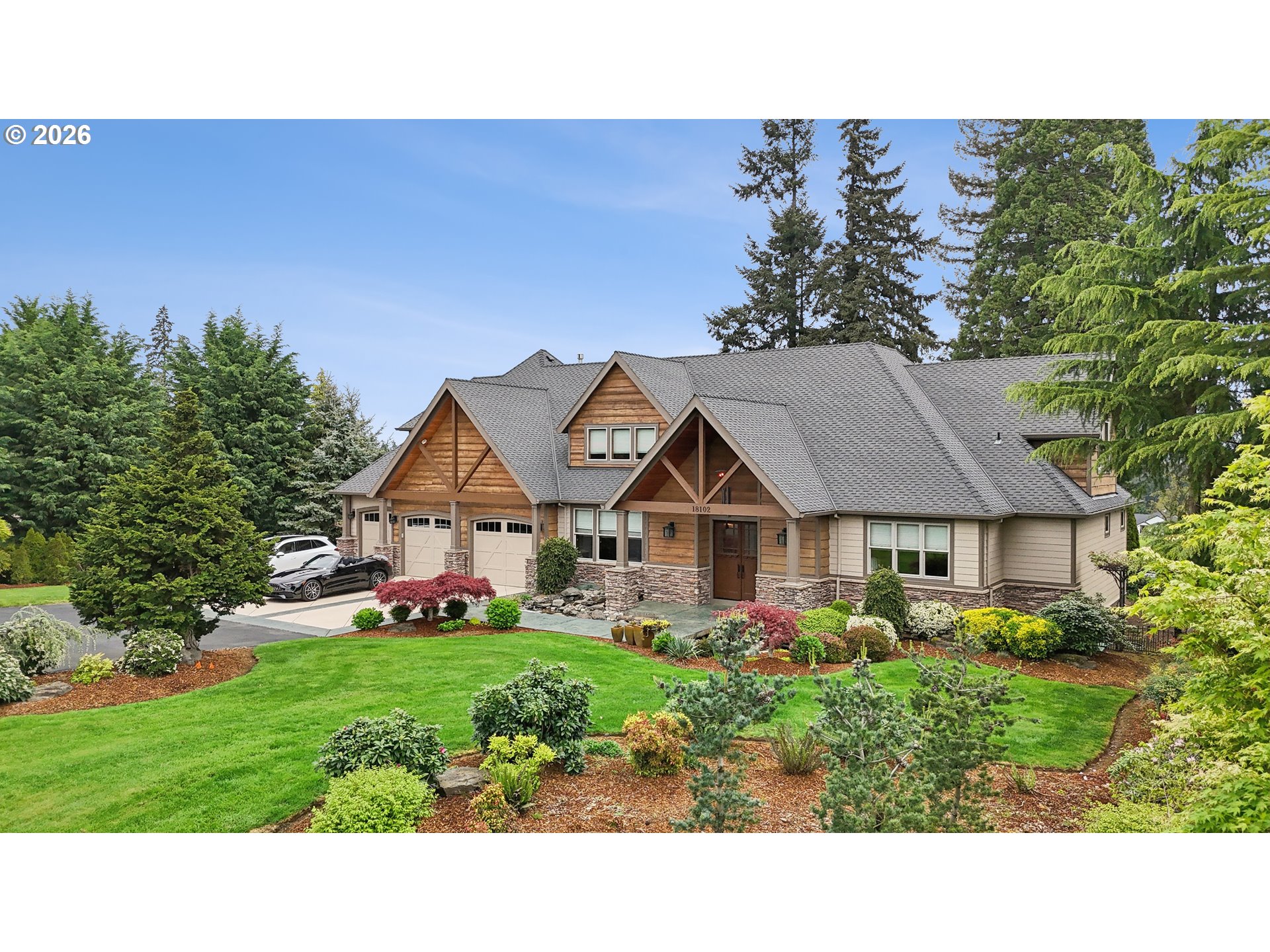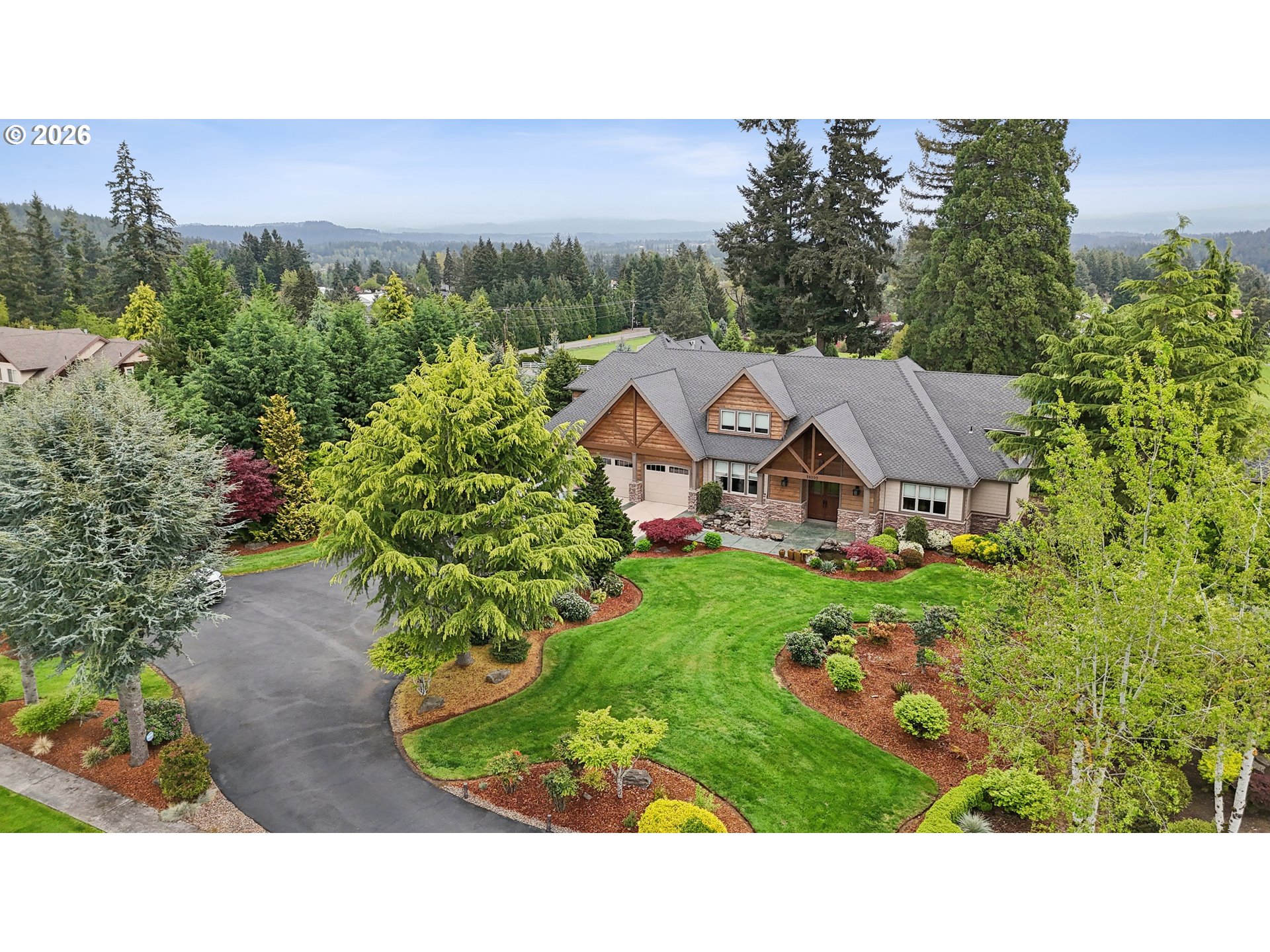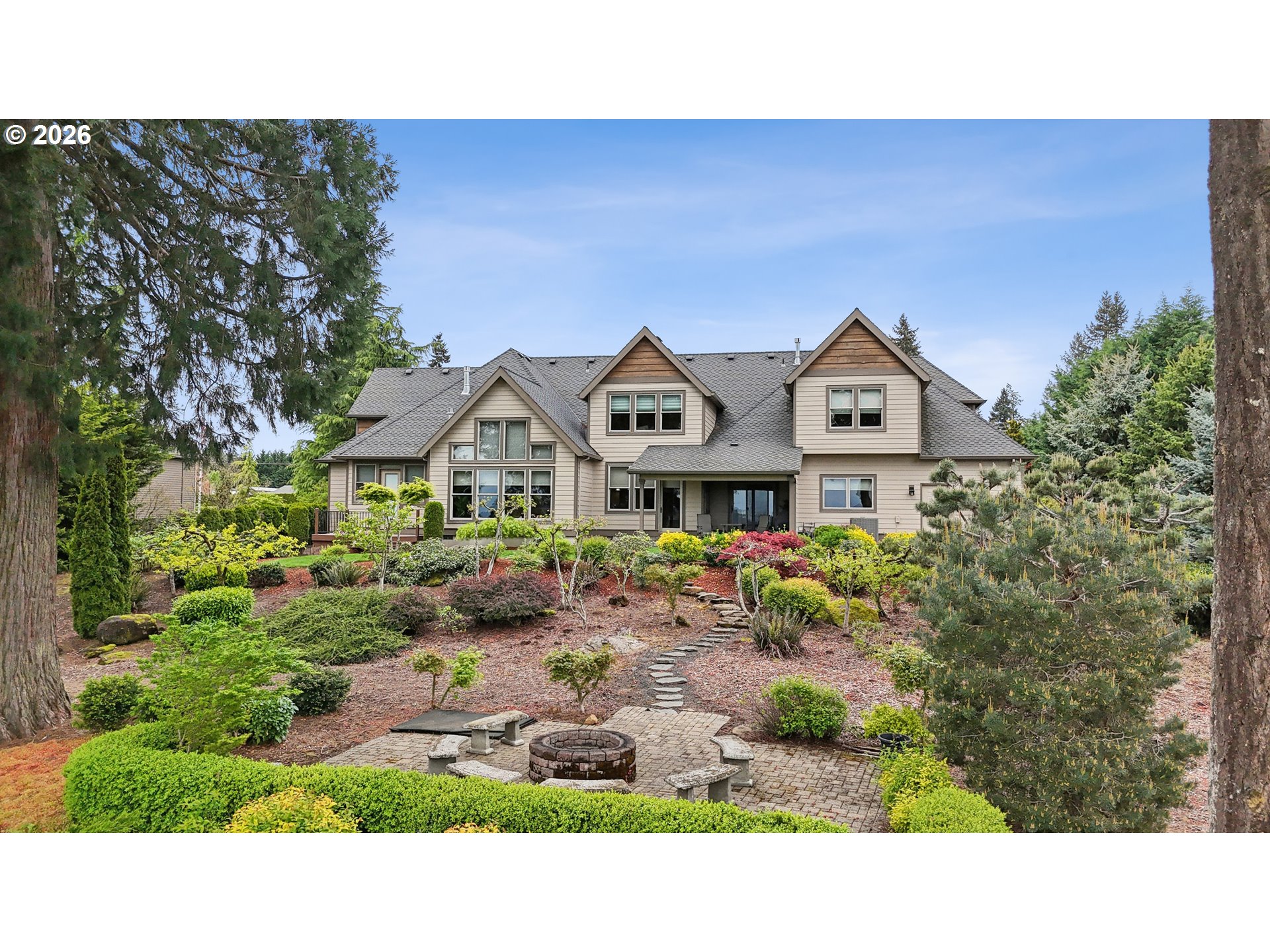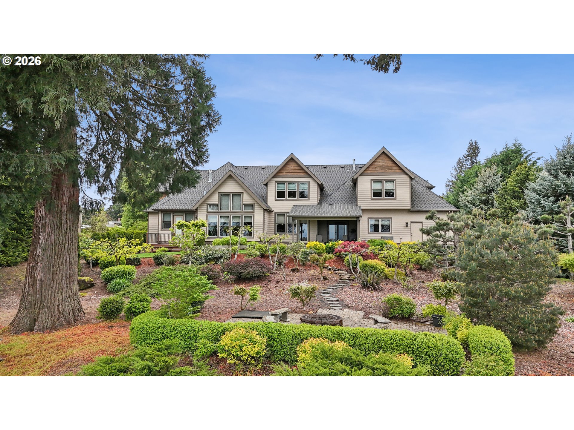 Set along the prestigious Oregon City Street of Dreams, this is a rare opportunity to own a truly exceptional estate! Nestled on over 2 private acres and behind a gated entry, this 4,791 sq ft, 4 bedrooom, 3.5 bathoom home blends rustic beauty with refined elegance in every detail. Enter into soaring ceilings and a statement rock fireplace that anchors the main living space with incredible floor to ceiling windows. The rich hardwoods, enchanting wood accents, slate, and granite create a warm and elevated feel throughout. Designed for both everyday living and unforgettable entertaining, this home features a formal dining room, a butler’s pantry, and plenty of options for the wine connoisseur. The kitchen is gorgeous, with high-end stainless steel appliances, a double oven, gas range and a curved island. You'll find the beautiful primary suite on the main level and it's a retreat of its own. It showcases a private patio, a spa-inspired ensuite, a large walk-in shower and a striking waterfall feature that flows into a jetted tub- ready to bring you peace and relaxation. All the upstairs bedrooms are generously sized and offer walk-in closets. But this home doesn't stop there! It also features a large bonus room and a dedicated home theater. Then step outside to an entertainers dream, with a gorgeous stamped concrete patio and an outdoor kitchen space ready for unbelievable PNW summer nights. You'll be surrounded by stunning and meticulously maintained lush grounds with tranquil water features, a fire pit, and breathtaking views of Mount Hood and the Willamette valley. The sunsets are spectacular! Your dream home is here, tucked into the peaceful countryside. Yet, you'll be just minutes from dining and shopping in downtown Oregon City. This home offers the perfect balance of privacy, luxury, rustic charm and convenience. With new upgrades, a spacious 4 car garage, and evident pride of ownership throughout, this is more than a home. It’s a legacy property.