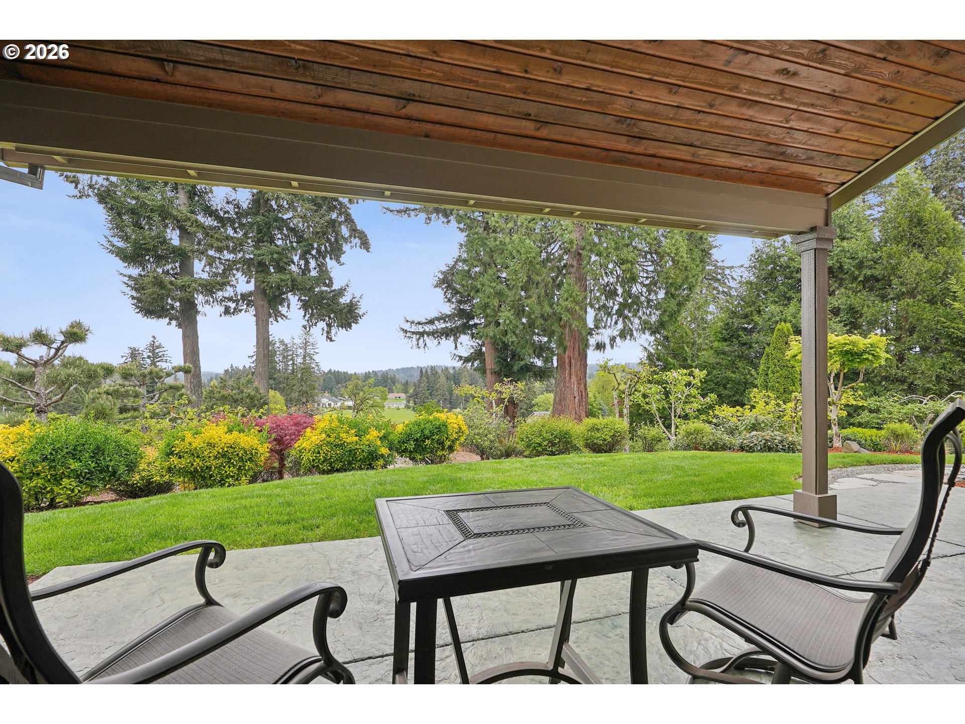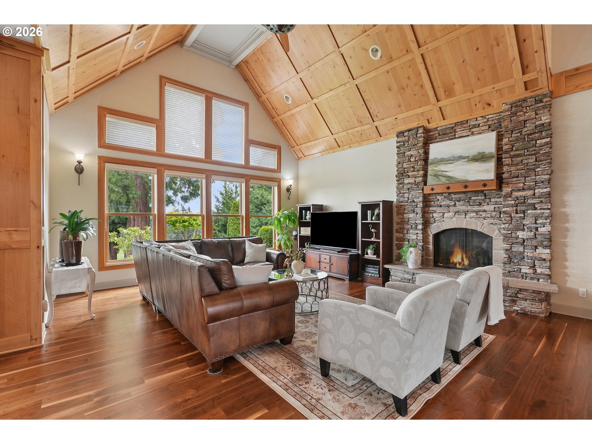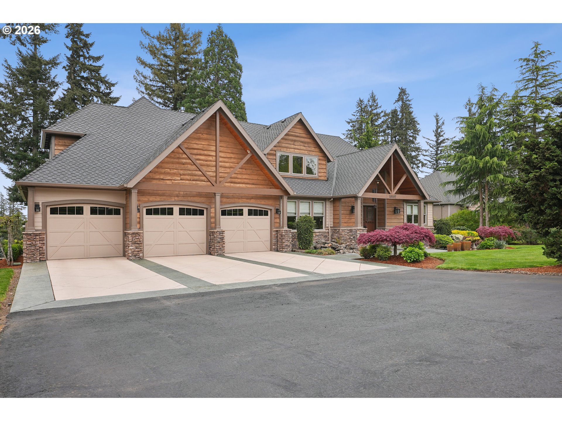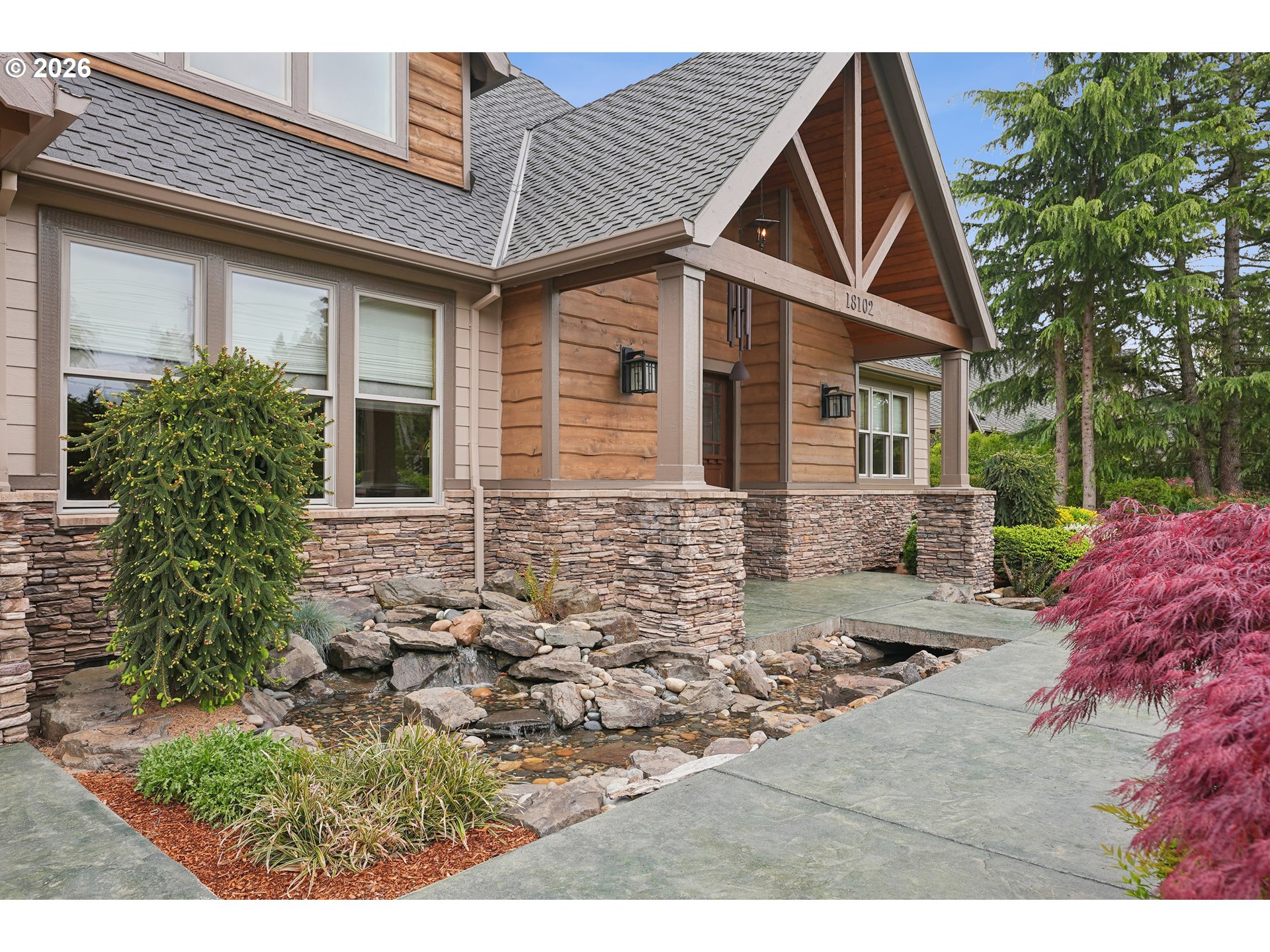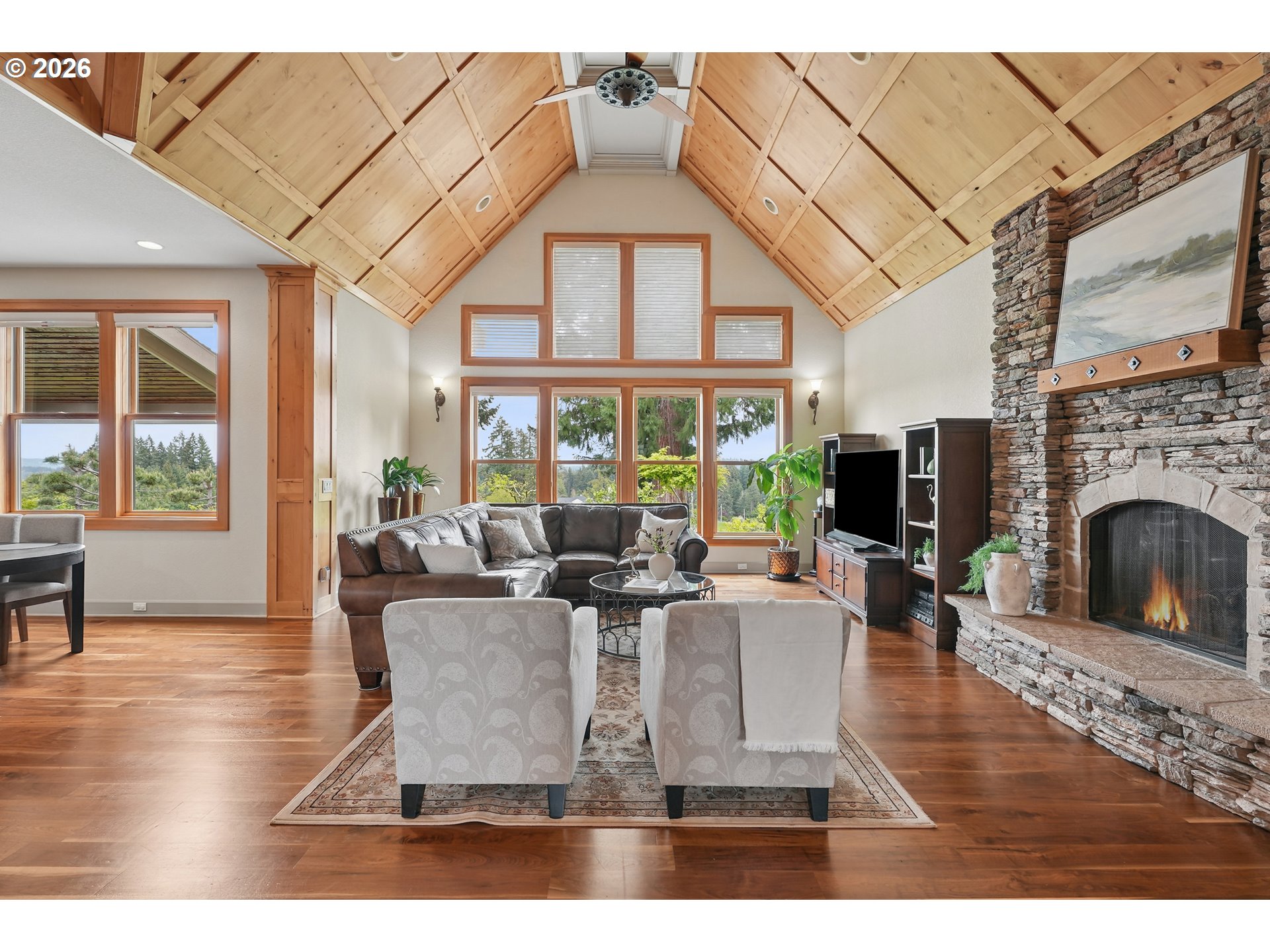 Set along the prestigious Oregon City Street of Dreams, this is a rare opportunity to own a truly exceptional estate! Nestled on over 2 private acres and behind a gated entry, this 4,791 sq ft, 4 bedrooom, 3.5 bathoom home blends rustic beauty with refined elegance in every detail. Enter into soaring ceilings and a statement rock fireplace that anchors the main living space with incredible floor to ceiling windows. The rich hardwoods, enchanting wood accents, slate, and granite create a warm and elevated feel throughout. Designed for both everyday living and unforgettable entertaining, this home features a formal dining room, a butler’s pantry, and plenty of options for the wine connoisseur. The kitchen is gorgeous, with high-end stainless steel appliances, a double oven, gas range and a curved island. You'll find the beautiful primary suite on the main level and it's a retreat of its own. It showcases a private patio, a spa-inspired ensuite, a large walk-in shower and a striking waterfall feature that flows into a jetted tub- ready to bring you peace and relaxation. All the upstairs bedrooms are generously sized and offer walk-in closets. But this home doesn't stop there! It also features a large bonus room and a dedicated home theater. Then step outside to an entertainers dream, with a gorgeous stamped concrete patio and an outdoor kitchen space ready for unbelievable PNW summer nights. You'll be surrounded by stunning and meticulously maintained lush grounds with tranquil water features, a fire pit, and breathtaking views of Mount Hood and the Willamette valley. The sunsets are spectacular! Your dream home is here, tucked into the peaceful countryside. Yet, you'll be just minutes from dining and shopping in downtown Oregon City. This home offers the perfect balance of privacy, luxury, rustic charm and convenience. With new upgrades, a spacious 4 car garage, and evident pride of ownership throughout, this is more than a home. It’s a legacy property.