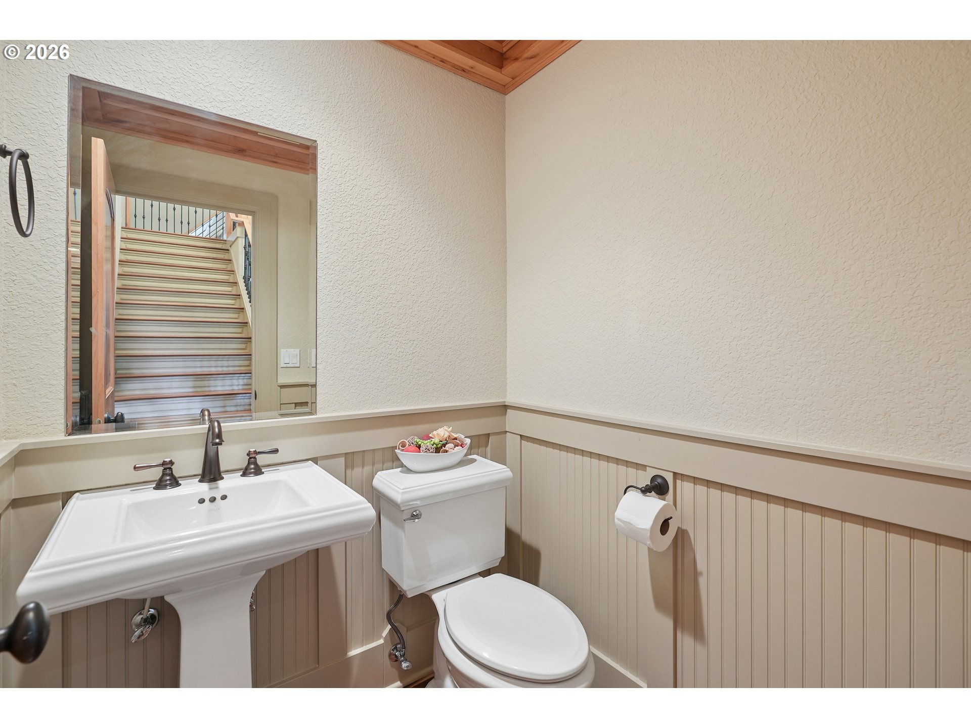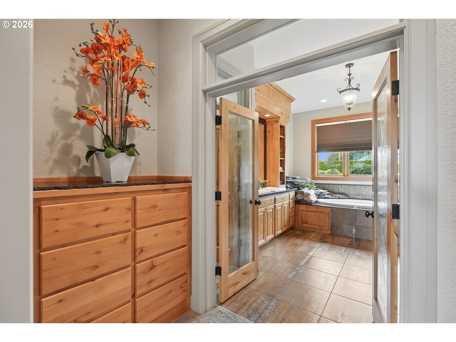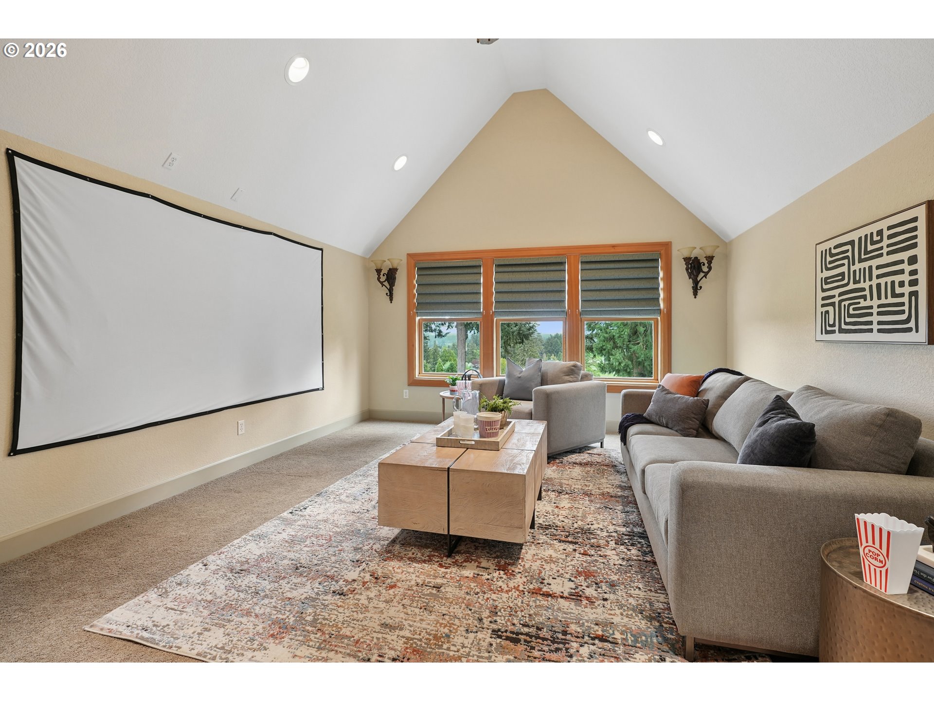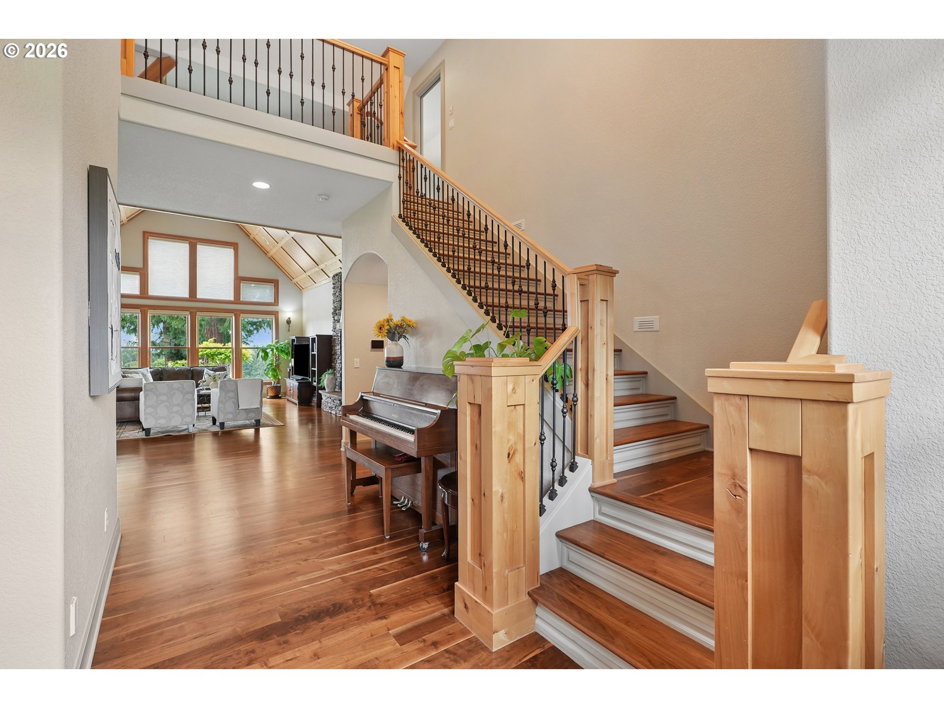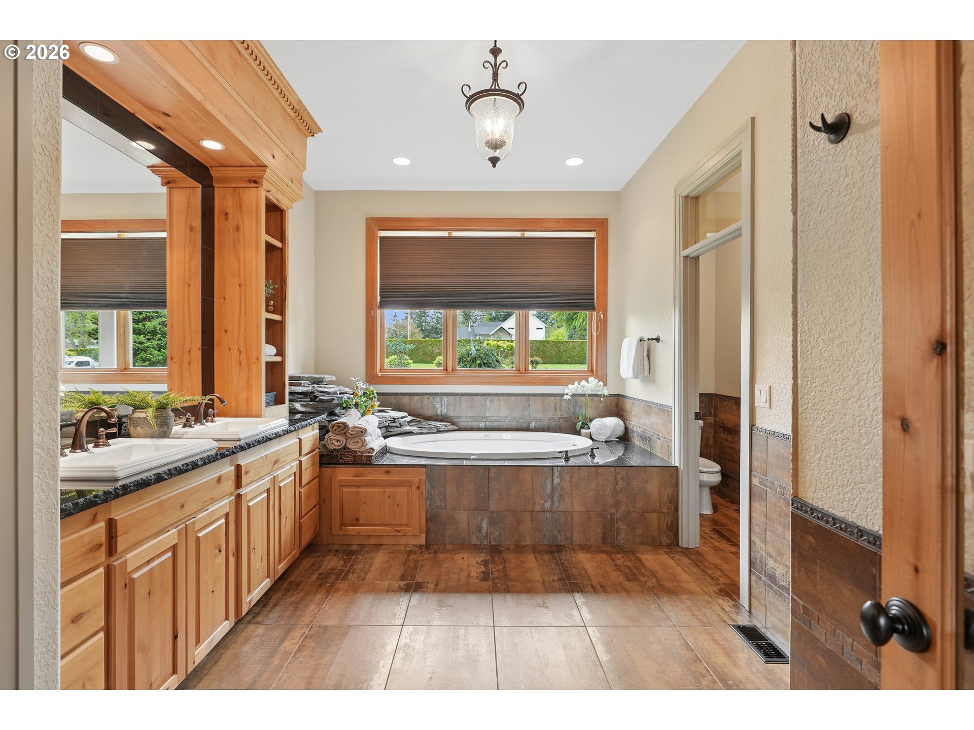 Set along the prestigious Oregon City Street of Dreams, this is a rare opportunity to own a truly exceptional estate! Nestled on over 2 private acres and behind a gated entry, this 4,791 sq ft, 4 bedrooom, 3.5 bathoom home blends rustic beauty with refined elegance in every detail. Enter into soaring ceilings and a statement rock fireplace that anchors the main living space with incredible floor to ceiling windows. The rich hardwoods, enchanting wood accents, slate, and granite create a warm and elevated feel throughout. Designed for both everyday living and unforgettable entertaining, this home features a formal dining room, a butler’s pantry, and plenty of options for the wine connoisseur. The kitchen is gorgeous, with high-end stainless steel appliances, a double oven, gas range and a curved island. You'll find the beautiful primary suite on the main level and it's a retreat of its own. It showcases a private patio, a spa-inspired ensuite, a large walk-in shower and a striking waterfall feature that flows into a jetted tub- ready to bring you peace and relaxation. All the upstairs bedrooms are generously sized and offer walk-in closets. But this home doesn't stop there! It also features a large bonus room and a dedicated home theater. Then step outside to an entertainers dream, with a gorgeous stamped concrete patio and an outdoor kitchen space ready for unbelievable PNW summer nights. You'll be surrounded by stunning and meticulously maintained lush grounds with tranquil water features, a fire pit, and breathtaking views of Mount Hood and the Willamette valley. The sunsets are spectacular! Your dream home is here, tucked into the peaceful countryside. Yet, you'll be just minutes from dining and shopping in downtown Oregon City. This home offers the perfect balance of privacy, luxury, rustic charm and convenience. With new upgrades, a spacious 4 car garage, and evident pride of ownership throughout, this is more than a home. It’s a legacy property.