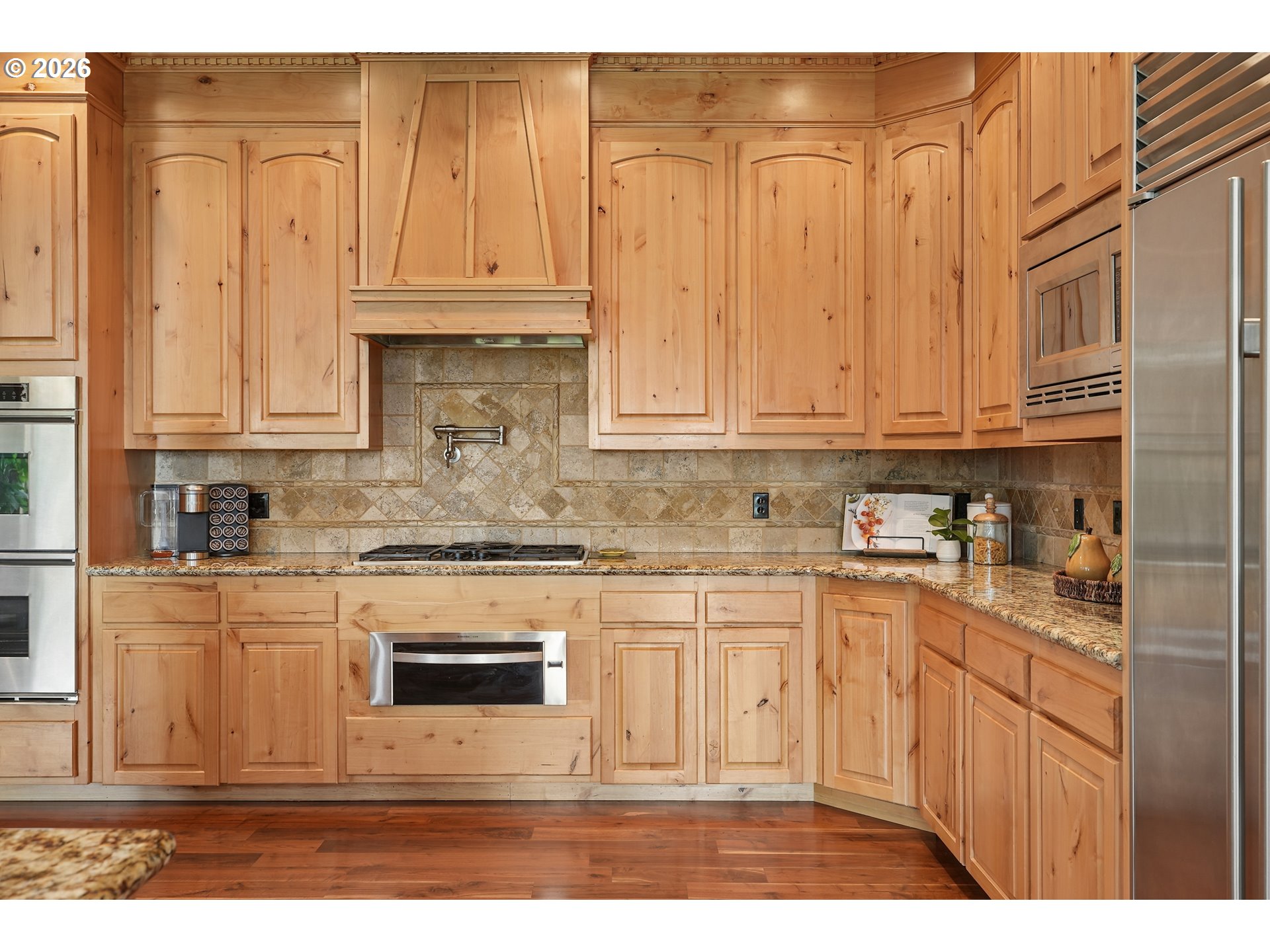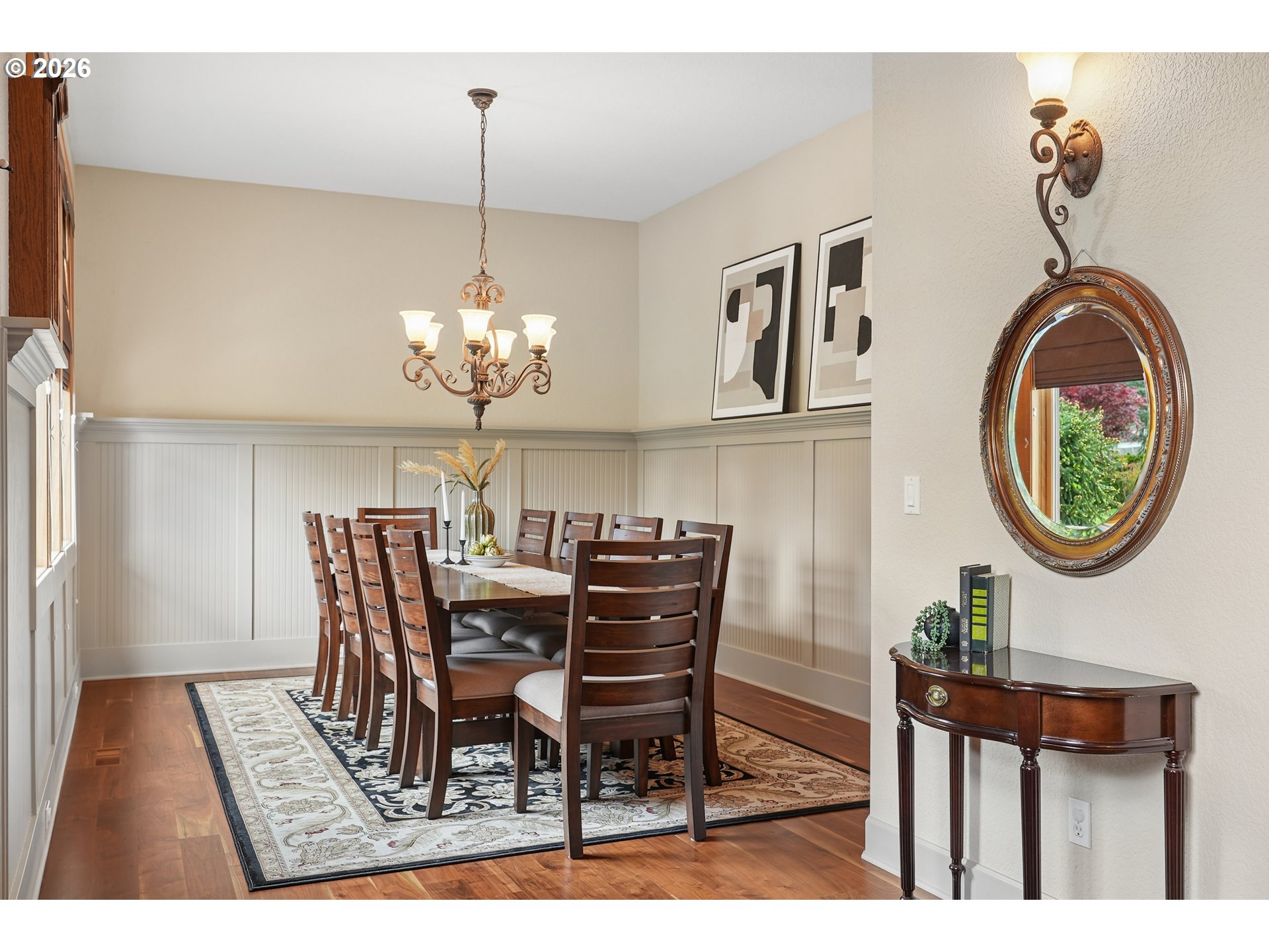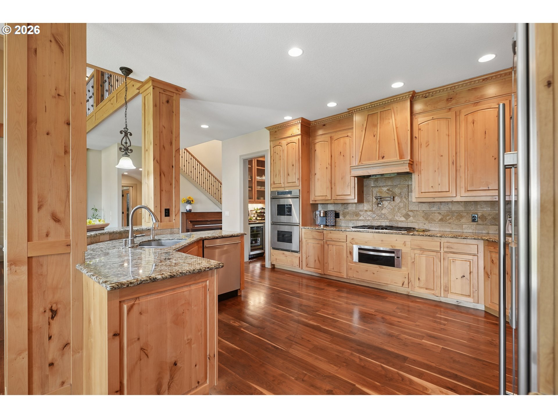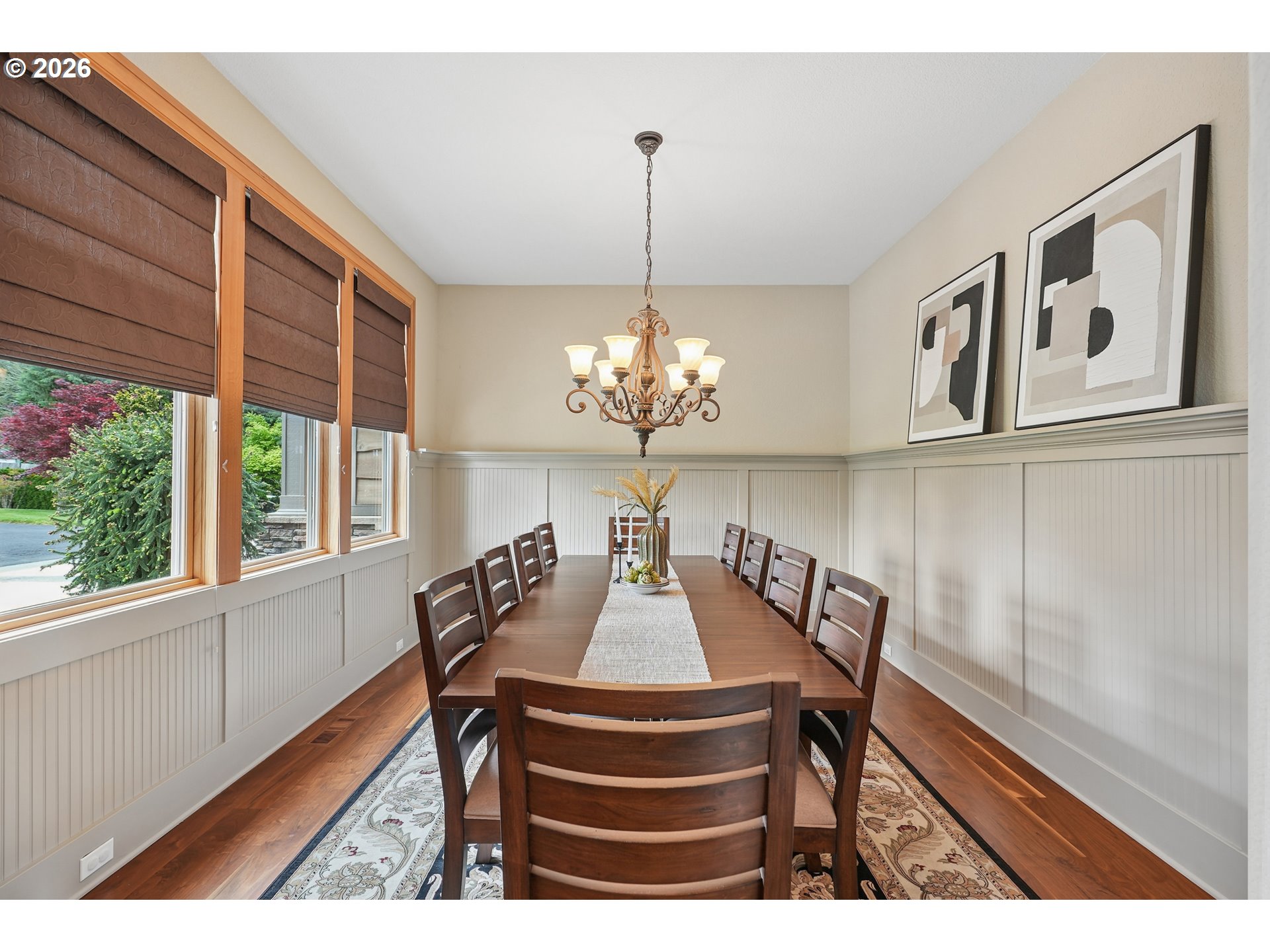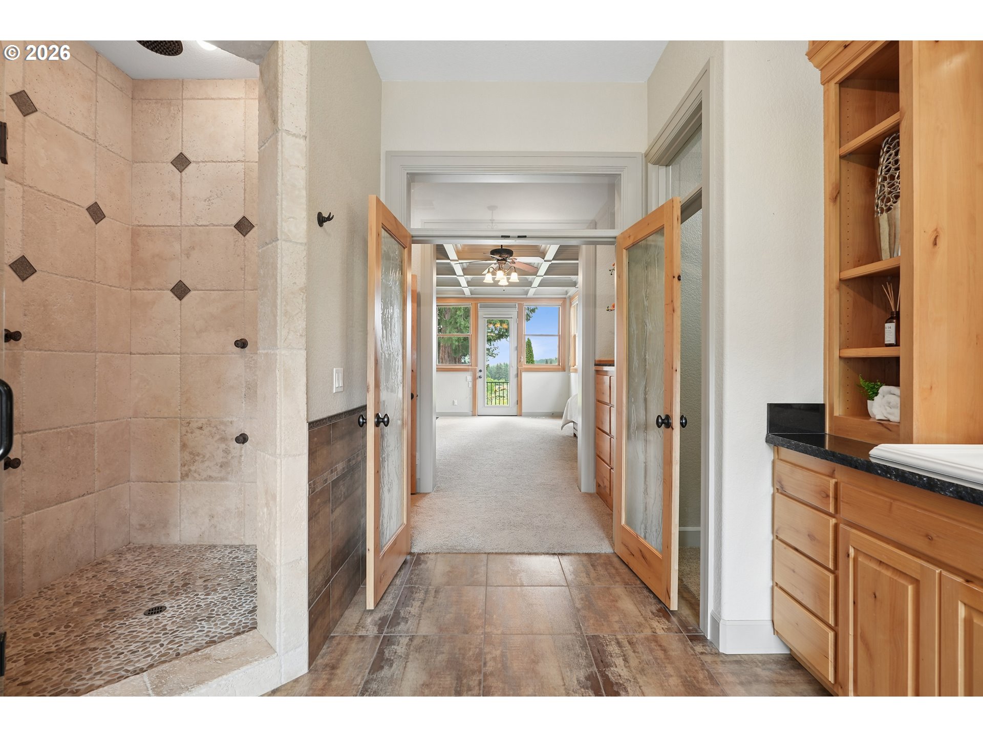 Set along the prestigious Oregon City Street of Dreams, this is a rare opportunity to own a truly exceptional estate! Nestled on over 2 private acres and behind a gated entry, this 4,791 sq ft, 4 bedrooom, 3.5 bathoom home blends rustic beauty with refined elegance in every detail. Enter into soaring ceilings and a statement rock fireplace that anchors the main living space with incredible floor to ceiling windows. The rich hardwoods, enchanting wood accents, slate, and granite create a warm and elevated feel throughout. Designed for both everyday living and unforgettable entertaining, this home features a formal dining room, a butler’s pantry, and plenty of options for the wine connoisseur. The kitchen is gorgeous, with high-end stainless steel appliances, a double oven, gas range and a curved island. You'll find the beautiful primary suite on the main level and it's a retreat of its own. It showcases a private patio, a spa-inspired ensuite, a large walk-in shower and a striking waterfall feature that flows into a jetted tub- ready to bring you peace and relaxation. All the upstairs bedrooms are generously sized and offer walk-in closets. But this home doesn't stop there! It also features a large bonus room and a dedicated home theater. Then step outside to an entertainers dream, with a gorgeous stamped concrete patio and an outdoor kitchen space ready for unbelievable PNW summer nights. You'll be surrounded by stunning and meticulously maintained lush grounds with tranquil water features, a fire pit, and breathtaking views of Mount Hood and the Willamette valley. The sunsets are spectacular! Your dream home is here, tucked into the peaceful countryside. Yet, you'll be just minutes from dining and shopping in downtown Oregon City. This home offers the perfect balance of privacy, luxury, rustic charm and convenience. With new upgrades, a spacious 4 car garage, and evident pride of ownership throughout, this is more than a home. It’s a legacy property.