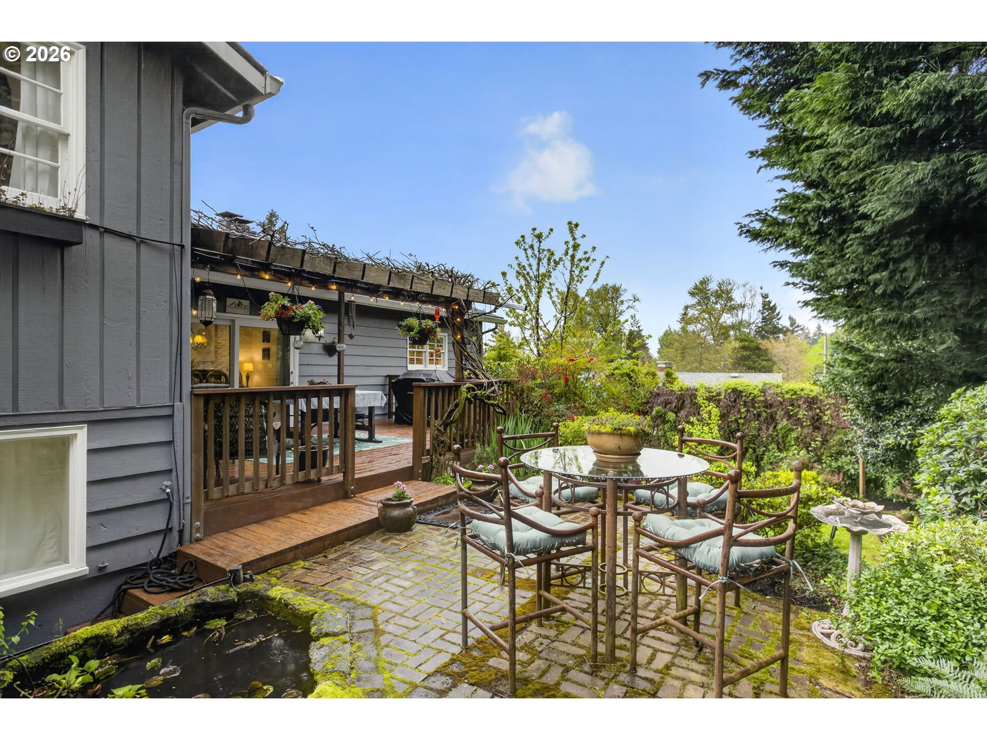 CoveredDeck, Fenced, Garden, Porch, RaisedBeds, Sprinkler, WaterFeature, Yard