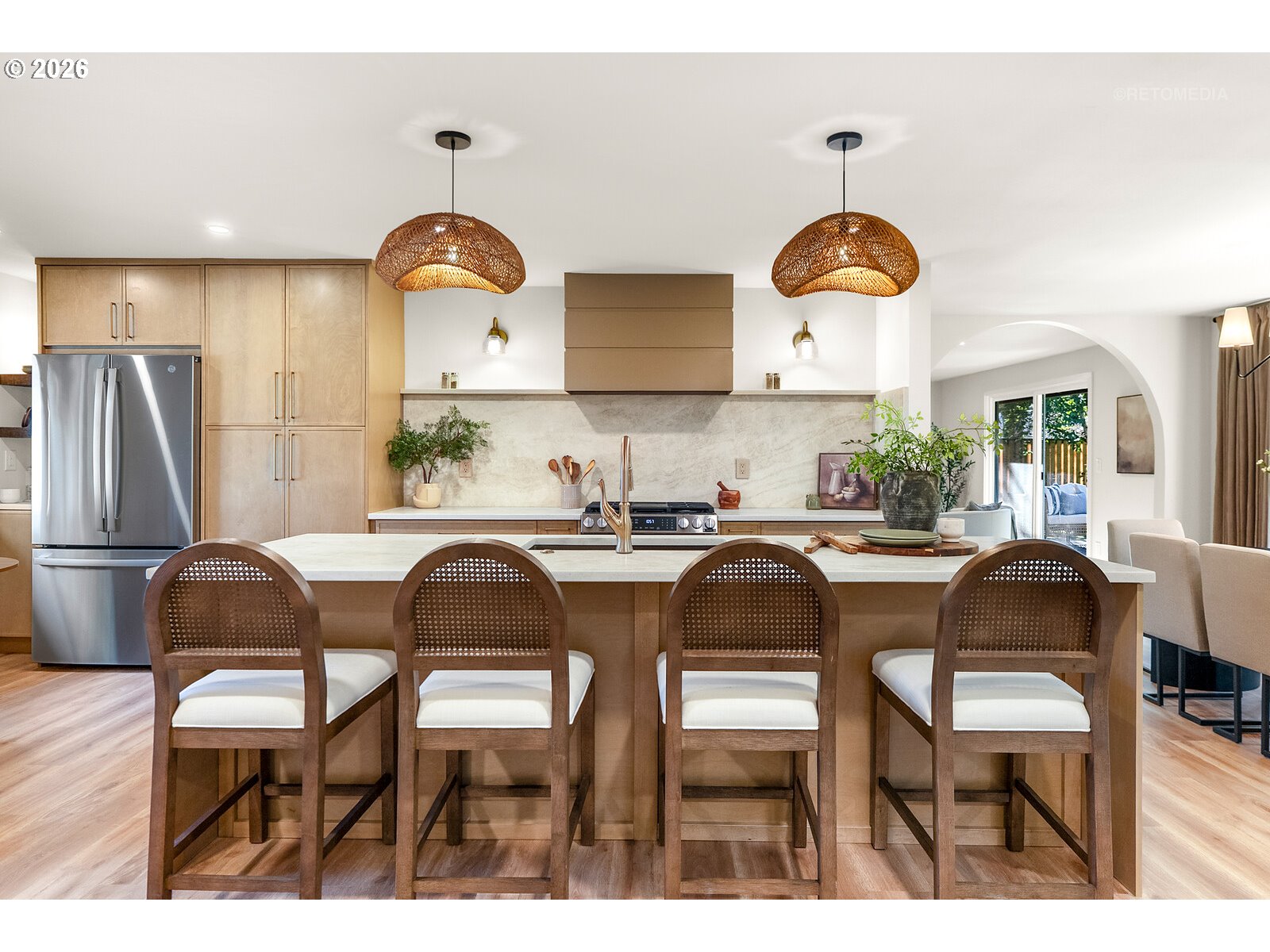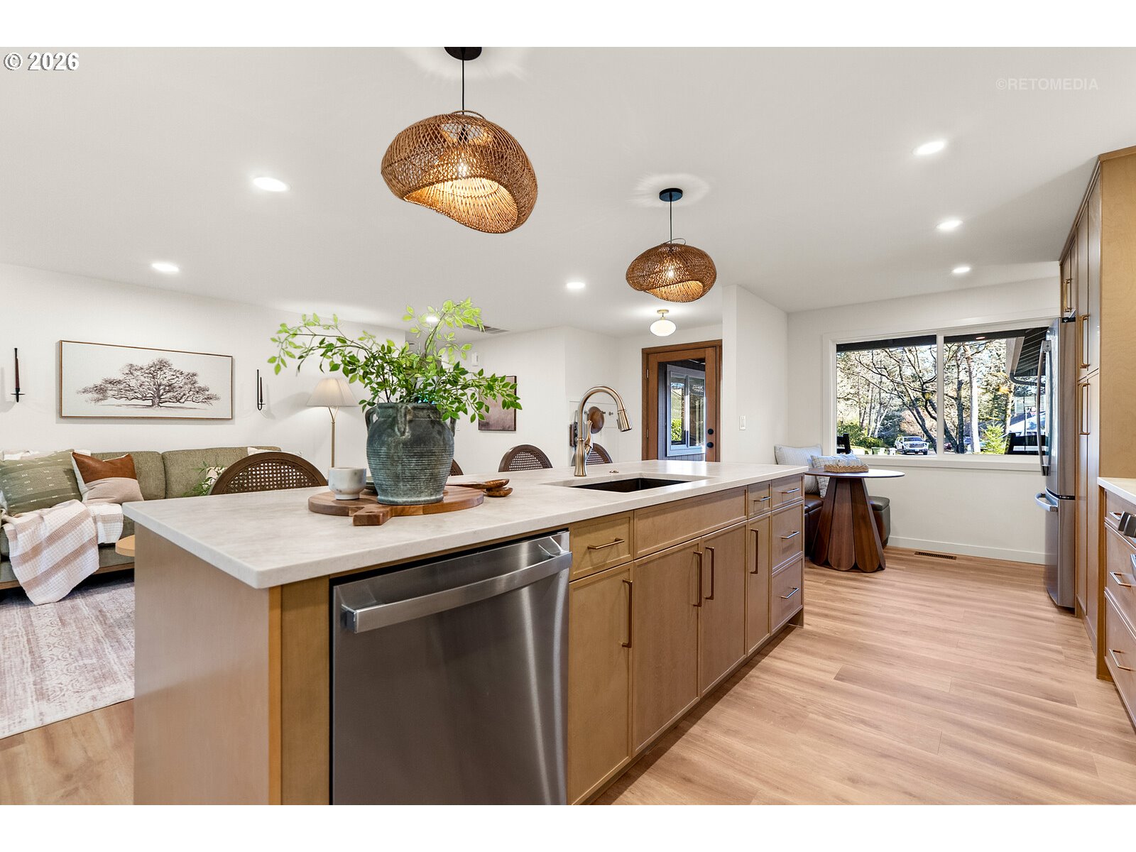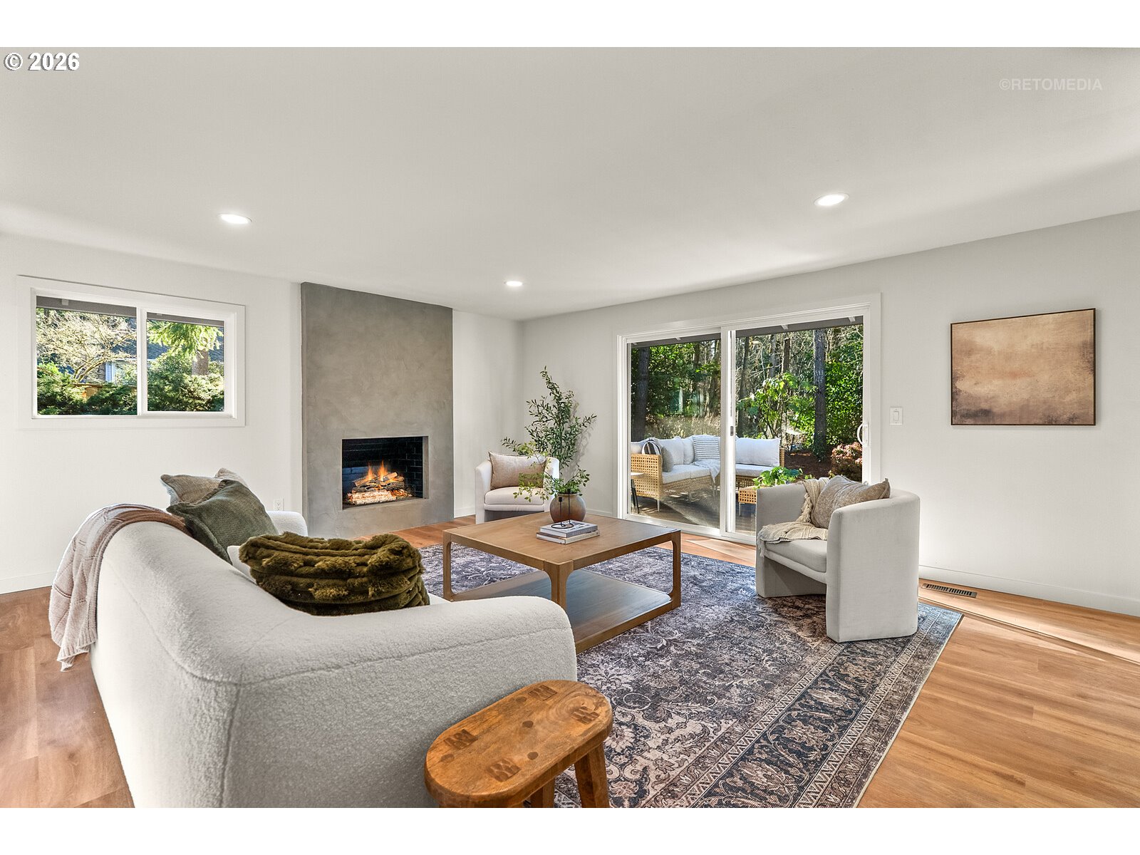 Located in the sought-after Bryant Woods neighborhood of Lake Oswego, this fully remodeled three-bedroom home offers a clean, modern organic design with thoughtful updates throughout. The redesigned floorplan creates great flow between spaces while still offering separation where it counts. The kitchen sits at the heart of the home, showcasing a stately 9-foot island, quartz countertops, gas range, and a sunny eating nook, plus a standout hidden pantry complete with its own countertops, cabinets and beverage fridge! Just off the kitchen, the living room offers a comfortable gathering space filled with natural light. From the dining area, an arched opening leads into the family room, adding subtle architectural interest. This space is anchored by a gorgeous plaster fireplace and offers a cozy second living area with slider to the back. Throughout the home, you’ll find fresh interior and exterior paint, all new doors and windows, and updated surfaces that keep the look cohesive and move-in ready.All bathrooms have been fully remodeled with new vanities, fixtures, and tile. The primary suite has spacious walk-in shower with spa-inspired tile choices. Outdoor upgrades are extensive and designed for low-maintenance enjoyment. Improvements include a brand-new concrete driveway and pavers, composite decking at the entry, expansive composite decking in the back, turf for easy care, fresh sod in front yard and a new garage door. Greenery views from every window add privacy and a strong connection to the surrounding landscape. New A/C. Bryant Woods is known for it's sense of community, walking paths, and community pool, with a neighborhood path that leads directly to the junior high. The home is located in the Lake Oswego School District, offering access to highly regarded schools. With major updates already completed, a practical layout, and a strong neighborhood setting, this home combines modern updates with everyday comfort in one of Lake Oswego’s most desirable areas.