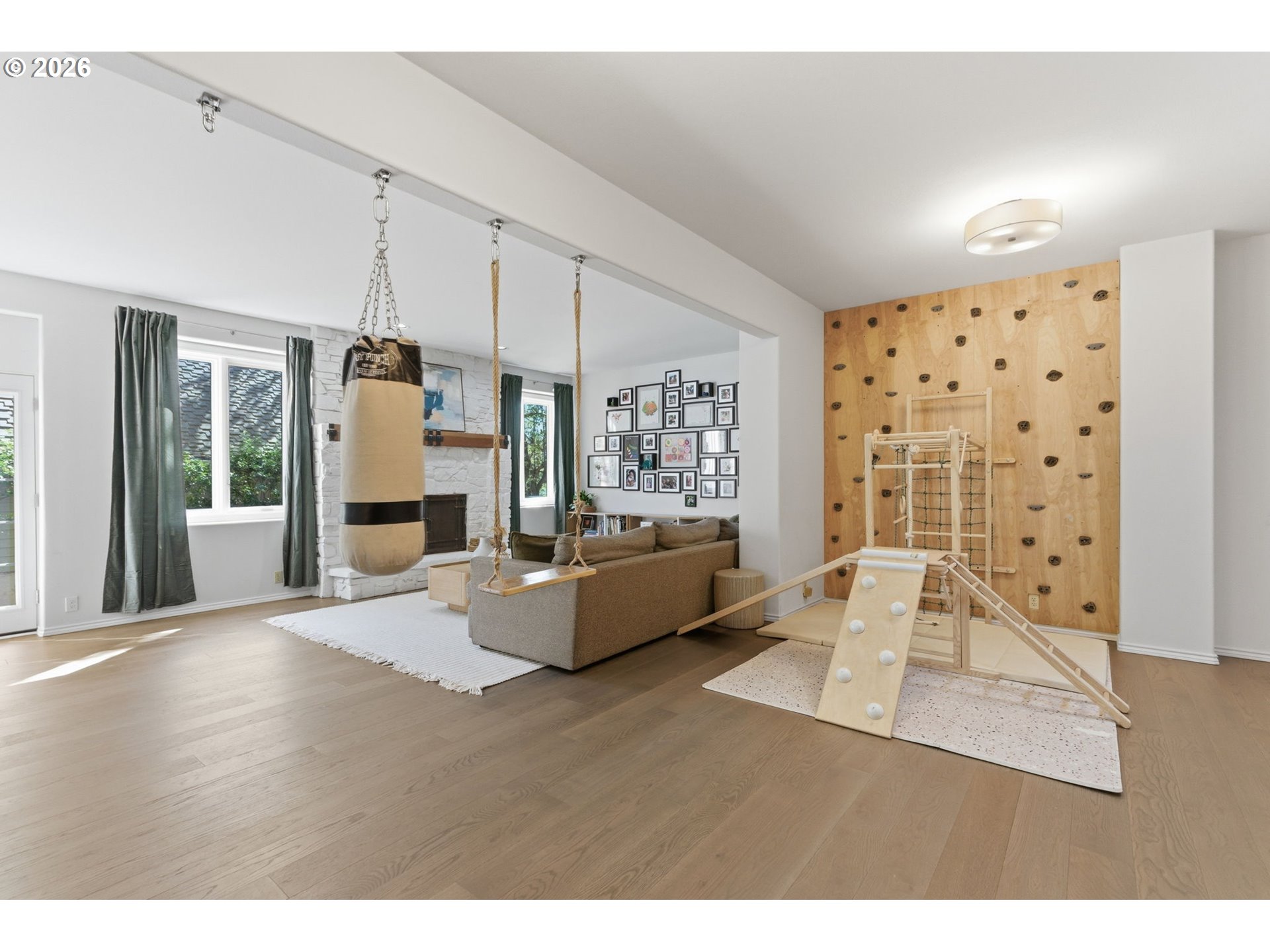 A Los Angeles-based interior designer trusted by high end residential clients for whom a home is never just a home reimagined this Lake Oswego property in 2021. Set on a private cul-de-sac with forest at the rear, the 5,153 sq ft brick home trades rear neighbors for tree canopy views and birdsong — two freeways keep all of Portland within easy reach.Three fireplaces, soaring ceilings, and Newport Brass fixtures set the tone throughout. The kitchen was built for people who love to cook: Sub-Zero refrigerator, KitchenAid gas cooktop with 20,000 BTU professional burner, double convection wall ovens, Miele dishwasher, Miele bean-to-cup coffee machine, and two walk-in pantries. The primary suite features heated tile floors, a Thermasol steam shower, deep soaking tub, and unobstructed views into the forest canopy. Two additional bedrooms and a guest room complete the upper level.An upstairs bonus suite is configured as dual private offices with an adjoining anteroom — purpose-built for remote work. The lower level offers a playroom with climbing wall, craft room, and under-stairs hideaway; a private exterior entrance, full bath, and existing plumbing hookups make conversion to an in-law suite or rental unit straightforward.Outside, terraced river-stone garden walls frame productive beds of asparagus, annual vegetables, and perennial berries: raspberries, thornless blackberries, honeyberries, gooseberries, and strawberries. A hardy perennial flower collection has been curated to bloom from spring through late fall. A sunny patio and covered deck make it genuinely four-season living.New HVAC, refinished hardwoods, and a three-car garage with boat bay complete a home where the practical details received the same care as the design ones.Oregon's second-ranked school is three minutes away. The LORAC aquatic facility, lake, and soccer fields are minutes out; downtown Portland is roughly twenty minutes.Homes designed with this much intention rarely return to market.