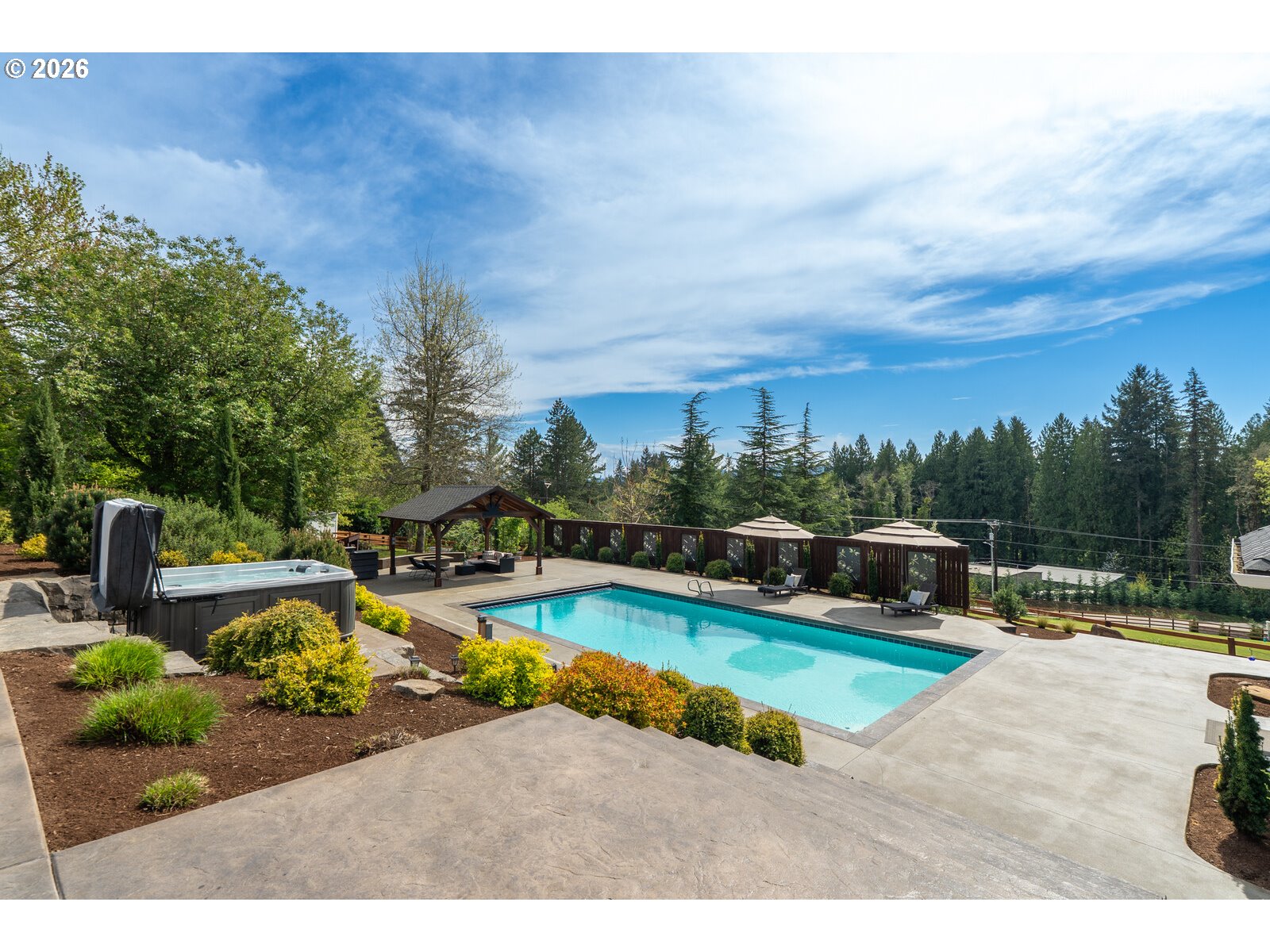 Set at the end of a long, gated, and fully paved private drive in the coveted Stafford belt, this nearly 5-acre compound offers something the Lake Oswego market rarely delivers: genuine privacy at this scale, without any sacrifice of proximity.The primary residence has been beautifully remodeled, balancing refined, modern finishes with the warmth of a world-class estate. Custom millwork, Italian tile, high-end fixtures, and a luxurious Thermador kitchen anchor the heart of the home, which opens to a resort-caliber outdoor sanctuary. The fully rebuilt pool, expansive paverscape, gazebo with fire pit, and freestanding hot tub frame the outdoor lifestyle.A standalone guest house, adjacent to the pool, operates on its own gas and electric lines and serves guests or multi-generational living with ease. A professional 4-stall horse barn with tack room, round pen, and manicured pastures completes one of the most compelling horse properties to come to market in Lake Oswego.Approximately one mile to Lakeridge High School and just minutes to Lake Oswego dining, shopping, and lake access. The city when you want it, and a quiet, gated retreat when you don't. More than a home. A sanctuary and a legacy. Request a copy of the expansive updates list.