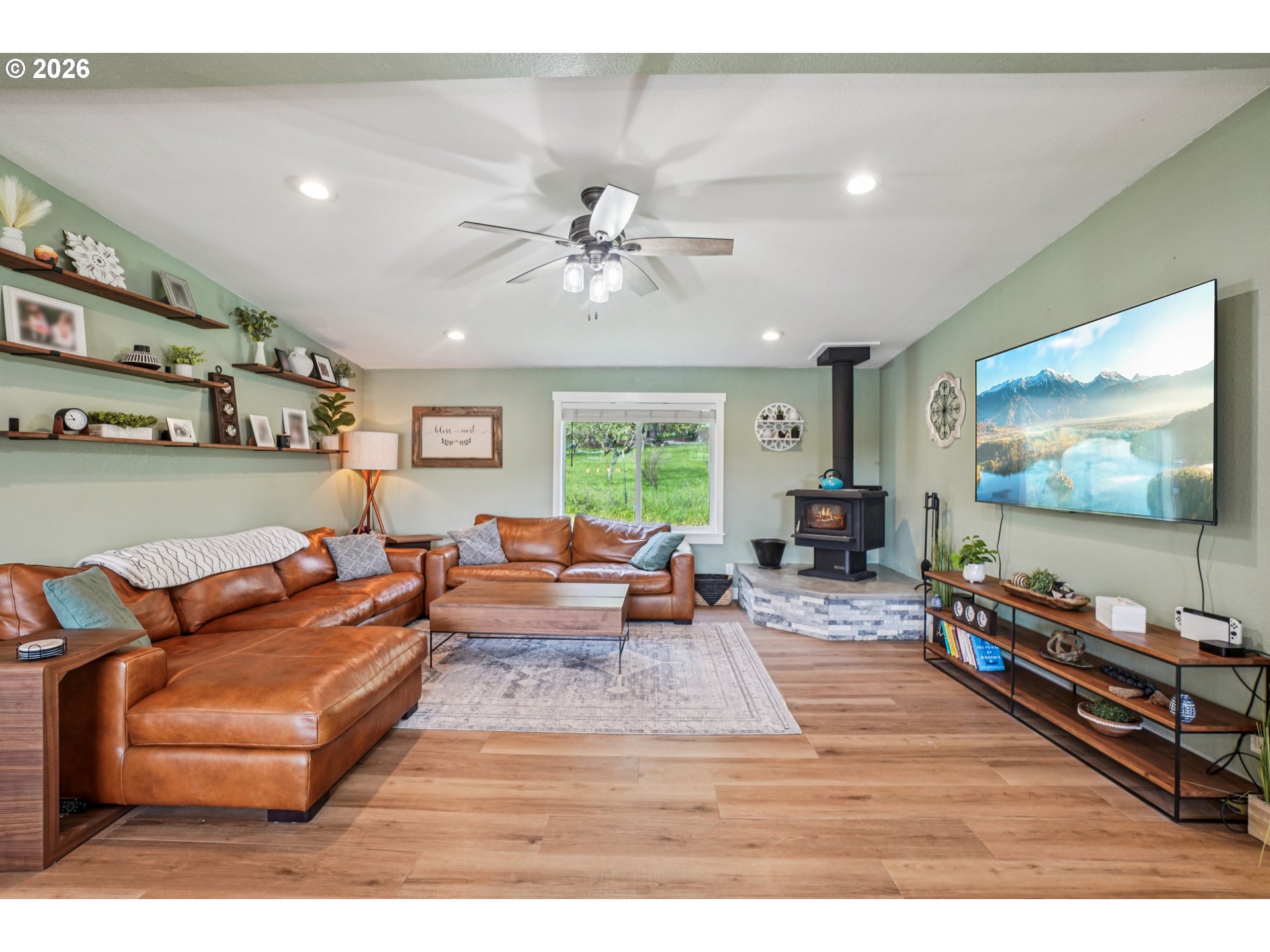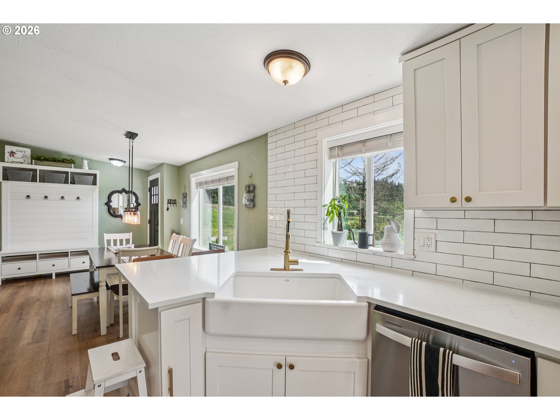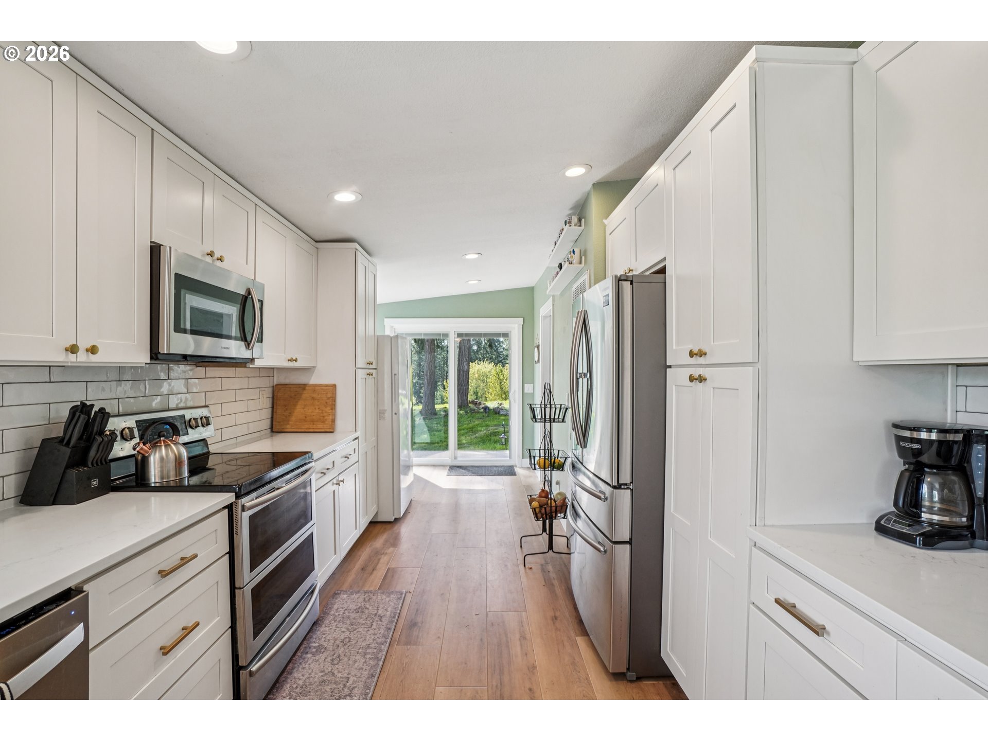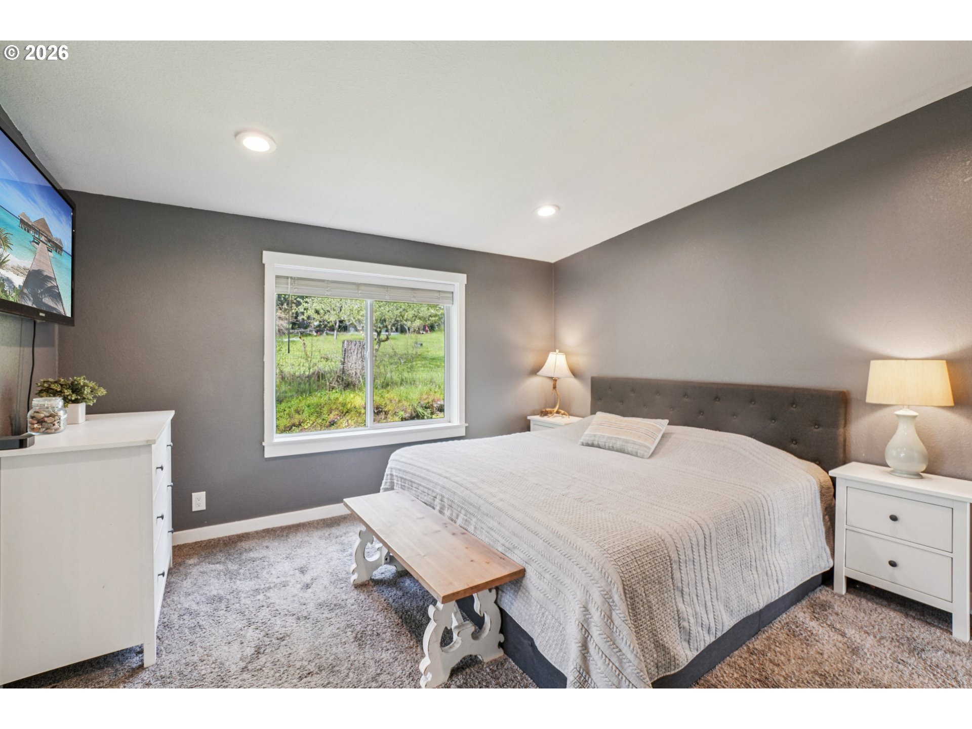 Extremely rare 5 acre horse property with views, updates, and all the outbuildings you'll need! Serene and private feel yet minutes away from Oregon City. Home has been completed remodeled with new flooring, siding, windows, electrical, paint, water heater and more. Updated kitchen with new cabinets, quartz counters, trim, fixtures, and stainless steel appliances. Fantastic primary suite with walk-in shower, double vanities, and soaking tub. Vaulted ceilings in the living room with cozy woodstove. Newer roof and new huge concrete patio wrapping around half the home. A horse owner's dream with an indoor 72X72 arena with 4 stalls, wash rack, and tack room. An additional 10 stall barn, chicken coop, plus another large detached shop. Tons of parking with parking area near main home and large additional parking down by the arena, plenty of space for RV and boat parking. This property has been thoughtfully updated and upgraded, absolutely a must see!