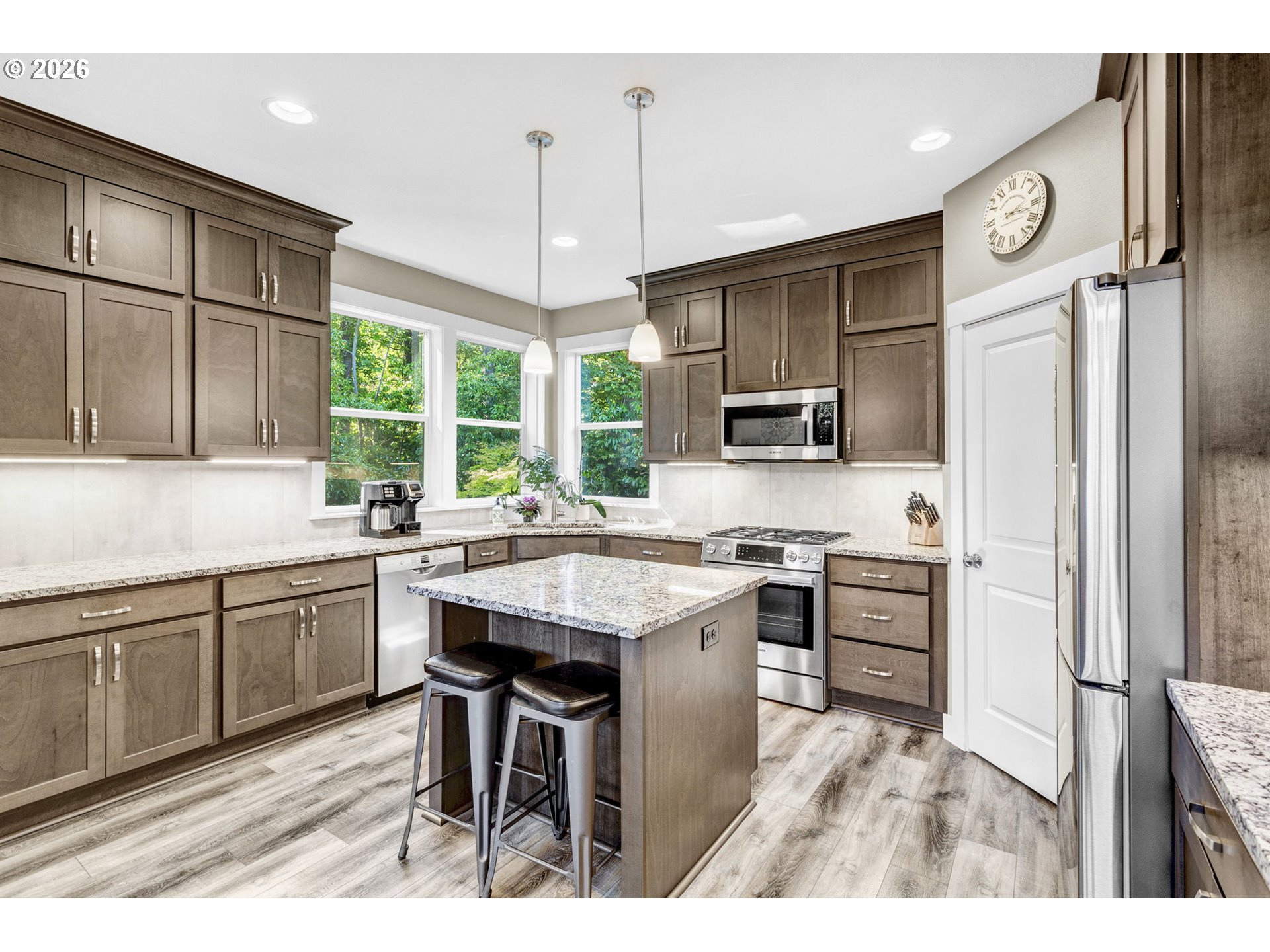 Private lot with a must see forest view for relaxing evenings or a cup of coffee in the morning.Lots of bird watching to be had. Built in 2020 custom built home w/ many upgrades and high end finishes. Vinyl flooring for comfort and durability. Kitchen features walk in pantry, stainless steal appliances, granite island w/storage, soft close drawers and under counter lighting. Primary bedroom with walk in closet ,tub, walk in shower and double sinks. Plenty of storage and office with built in's. Covered patio w/hardscaping and fenced for pets. Home as tankless water heater, extra power and Christmas light plugs. RV parking or boat storage including clean out. Location to Willamette River good area for long walks and lots of bike riding. Trails and more paths to keep you busy.