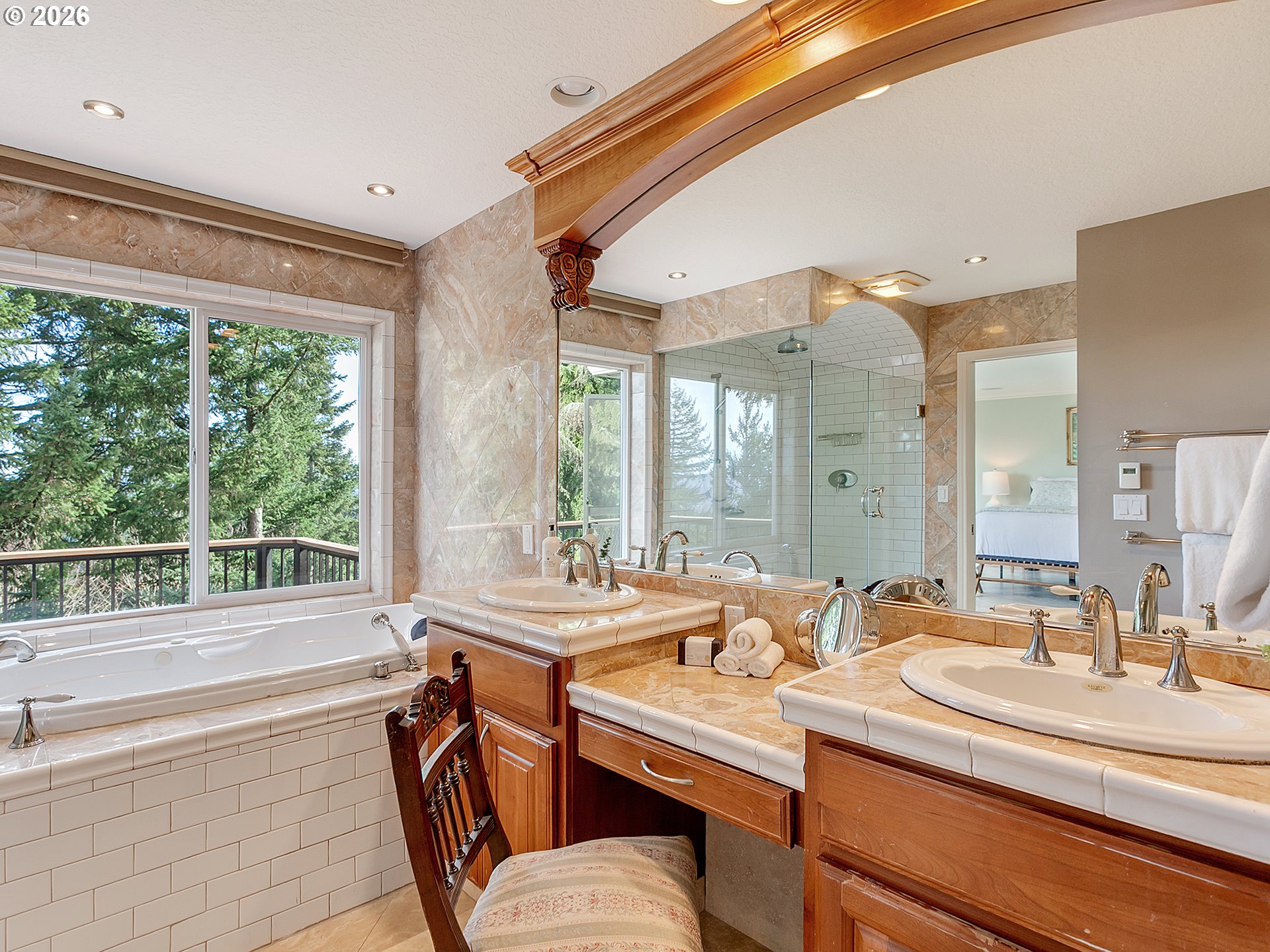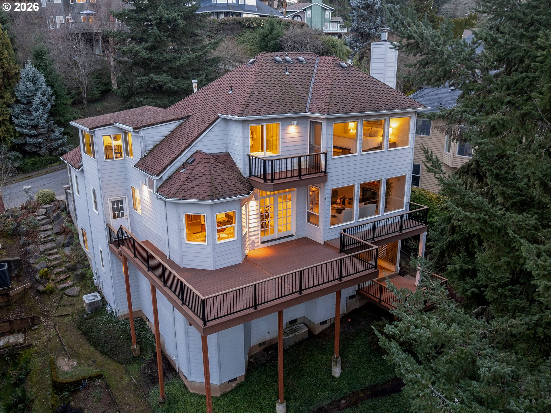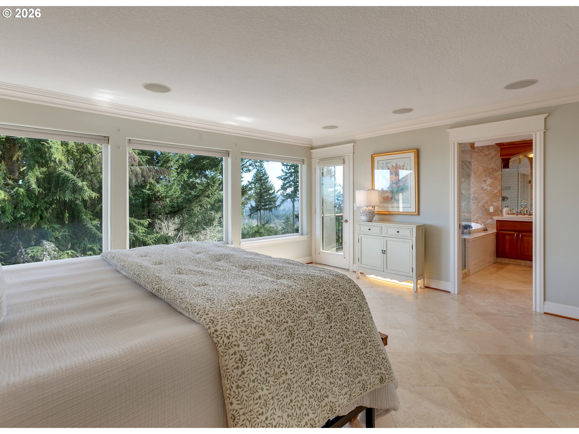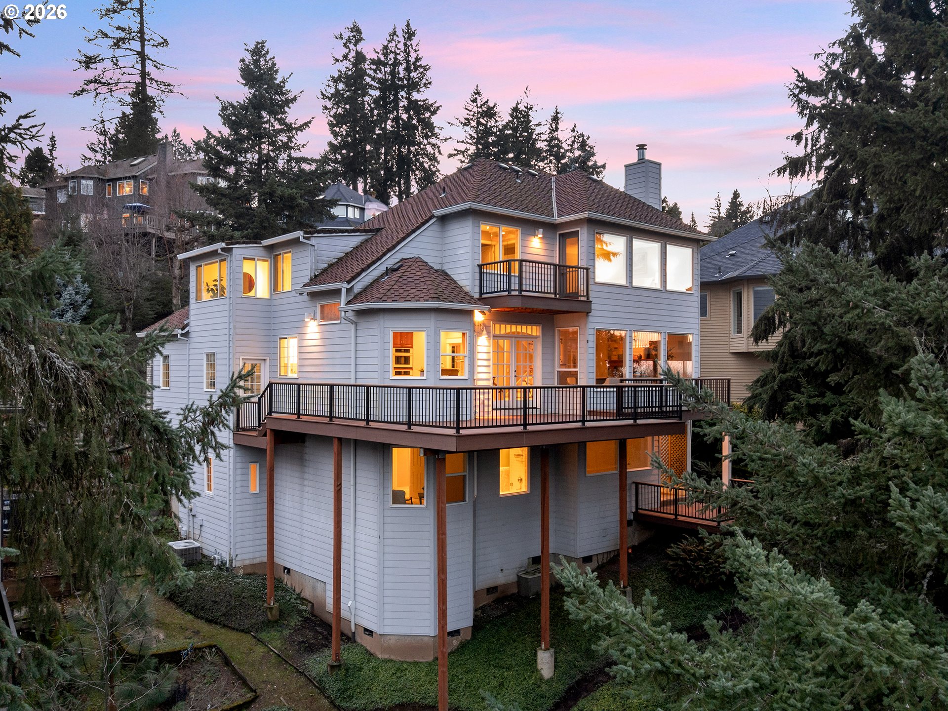 OPEN SUNDAY 3/8 FROM 12-2 PM! Perched in a peaceful, elevated setting with sweeping 180-degree mountain, valley, and city views, this beautifully maintained home blends timeless architecture with exceptional livability. A dramatic two-story entry welcomes you into expansive living spaces framed by oversized windows that flood the home with natural light while capturing the surrounding trees and skyline. The spacious great room showcases a striking stone fireplace and flows seamlessly into the dining area and kitchen, while French doors open to an impressive oversized deck, creating the perfect environment for entertaining or quiet mornings taking in the view.The kitchen features rich wood cabinetry, quality finishes, a walk-in pantry, and a bay window with a view. Retreat to the luxurious primary suite occupying the entire upper level, complete with panoramic windows, a spa-inspired bath, private deck, and generous space for the ultimate closet design, with washer and dryer hookups already in place.Flexible bonus and office spaces provide room to live, work, and host with ease, while abundant storage inside and out keeps everything effortlessly organized. Perfectly landscaped trails wind down the property for exploring and enjoying the natural Oregon beauty. With its private feel, thoughtful layout, and rare view presence, this home captures the very best of Northwest living.
