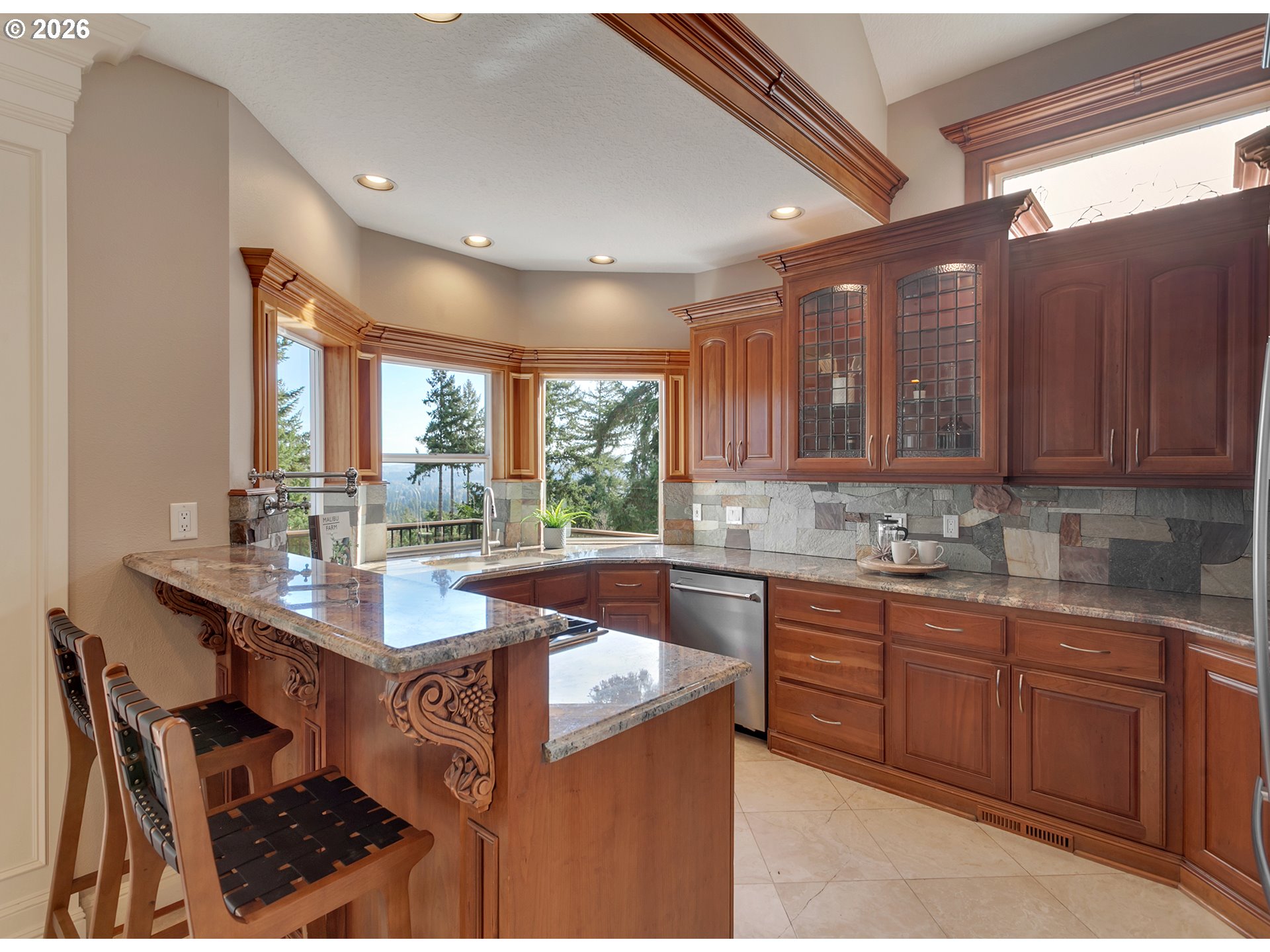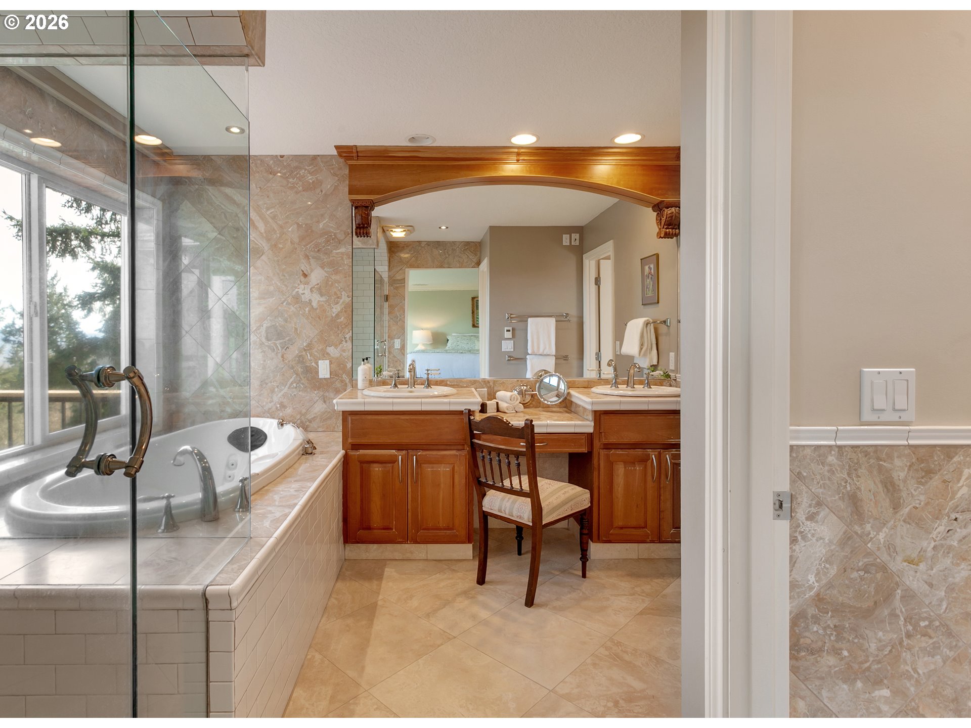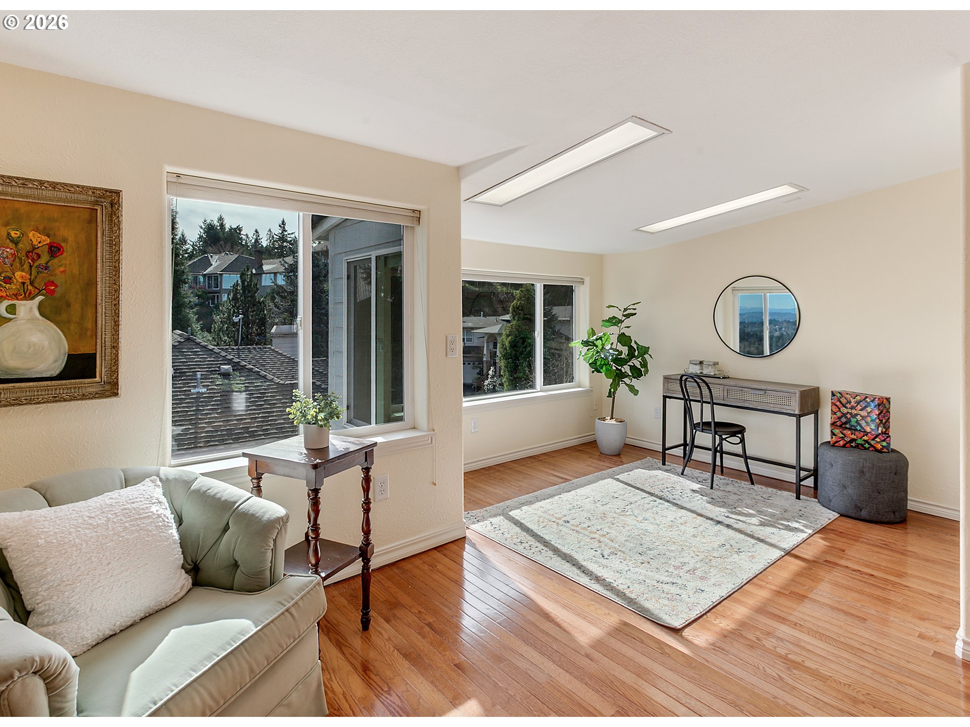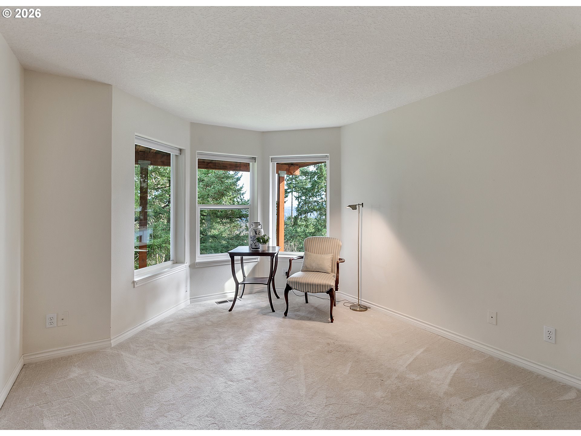 OPEN SUNDAY 3/8 FROM 12-2 PM! Perched in a peaceful, elevated setting with sweeping 180-degree mountain, valley, and city views, this beautifully maintained home blends timeless architecture with exceptional livability. A dramatic two-story entry welcomes you into expansive living spaces framed by oversized windows that flood the home with natural light while capturing the surrounding trees and skyline. The spacious great room showcases a striking stone fireplace and flows seamlessly into the dining area and kitchen, while French doors open to an impressive oversized deck, creating the perfect environment for entertaining or quiet mornings taking in the view.The kitchen features rich wood cabinetry, quality finishes, a walk-in pantry, and a bay window with a view. Retreat to the luxurious primary suite occupying the entire upper level, complete with panoramic windows, a spa-inspired bath, private deck, and generous space for the ultimate closet design, with washer and dryer hookups already in place.Flexible bonus and office spaces provide room to live, work, and host with ease, while abundant storage inside and out keeps everything effortlessly organized. Perfectly landscaped trails wind down the property for exploring and enjoying the natural Oregon beauty. With its private feel, thoughtful layout, and rare view presence, this home captures the very best of Northwest living.
