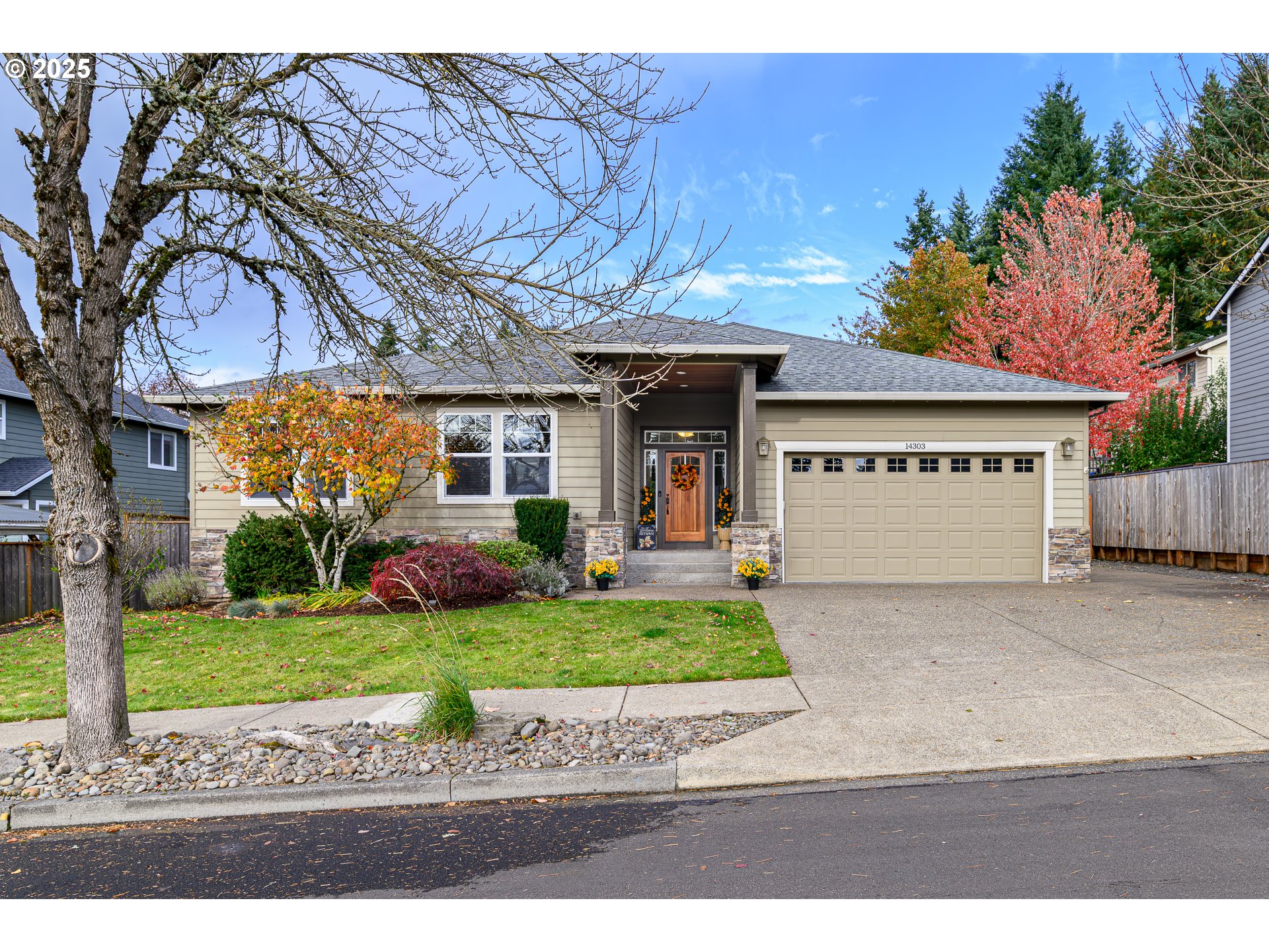 Tucked at the end of the neighborhood, this beautifully maintained single-level home blends modern upgrades with a peaceful, thoughtfully landscaped setting. The 3-bedroom, 2-bath floor plan offers engineered hickory hardwoods in the main living areas, plush carpet in the bedrooms, and a bright kitchen with stone countertops. Both bathrooms feature tile surrounds and stone counters for a polished, updated look. Recent improvements include ductless mini-splits added in 2019, a stunning 40’x14’ stamped concrete patio installed in 2023, and fresh exterior paint, gutters, and overhead lighting (living room + bedrooms) completed in 2024. Outside, the professionally landscaped .20-acre lot is designed for both beauty and functionality—complete with an 8’x12’ storage shed and raised gardening/play areas. Located just moments from city shopping and only 10 minutes from I-205, this move-in-ready retreat offers comfort, style, and convenience all in one.