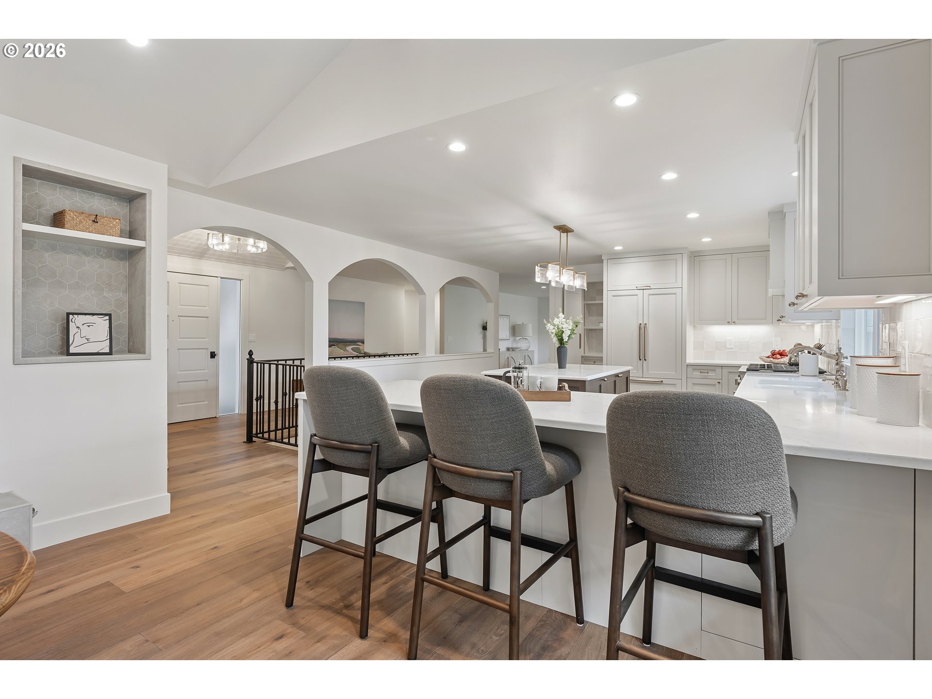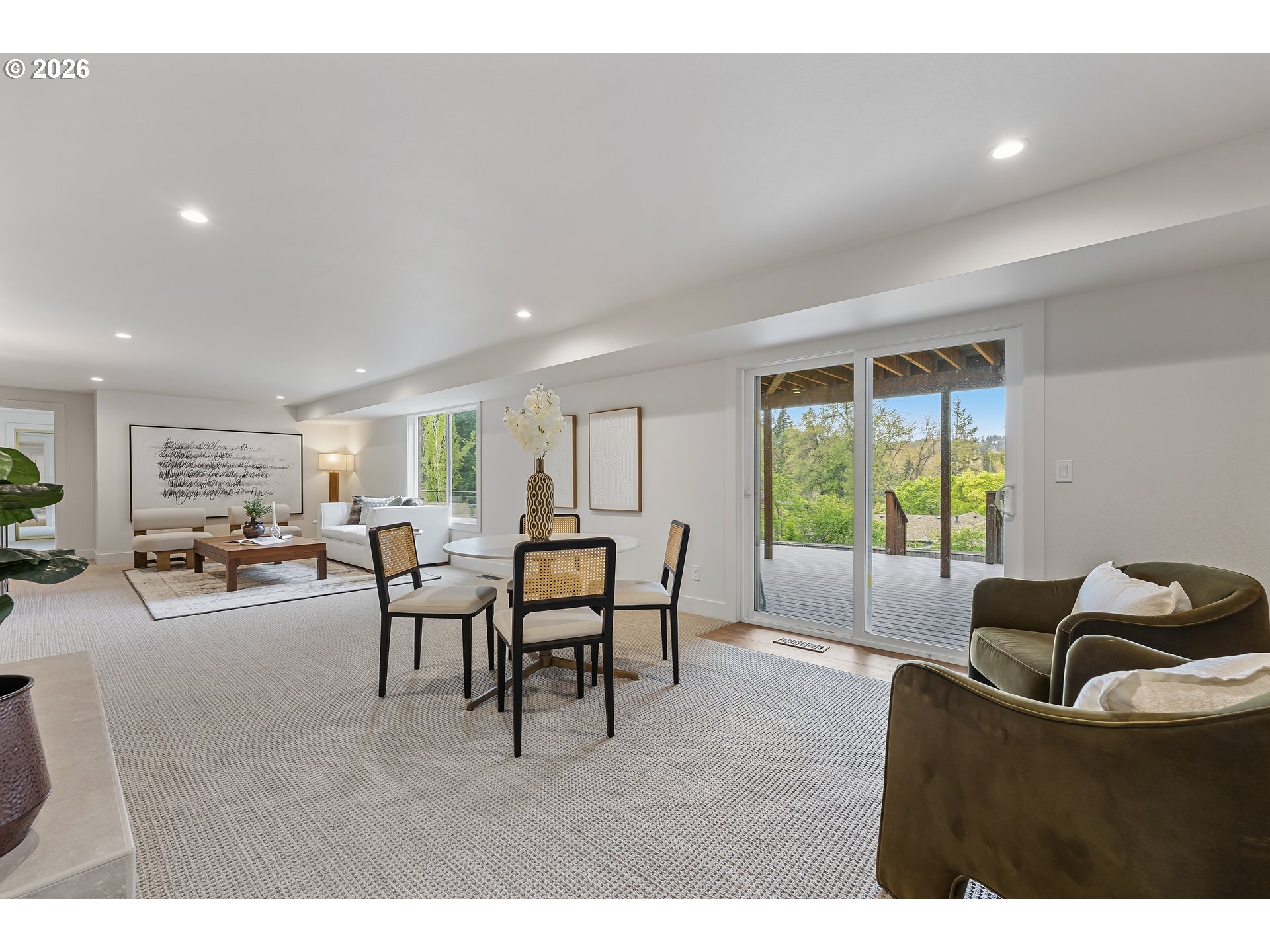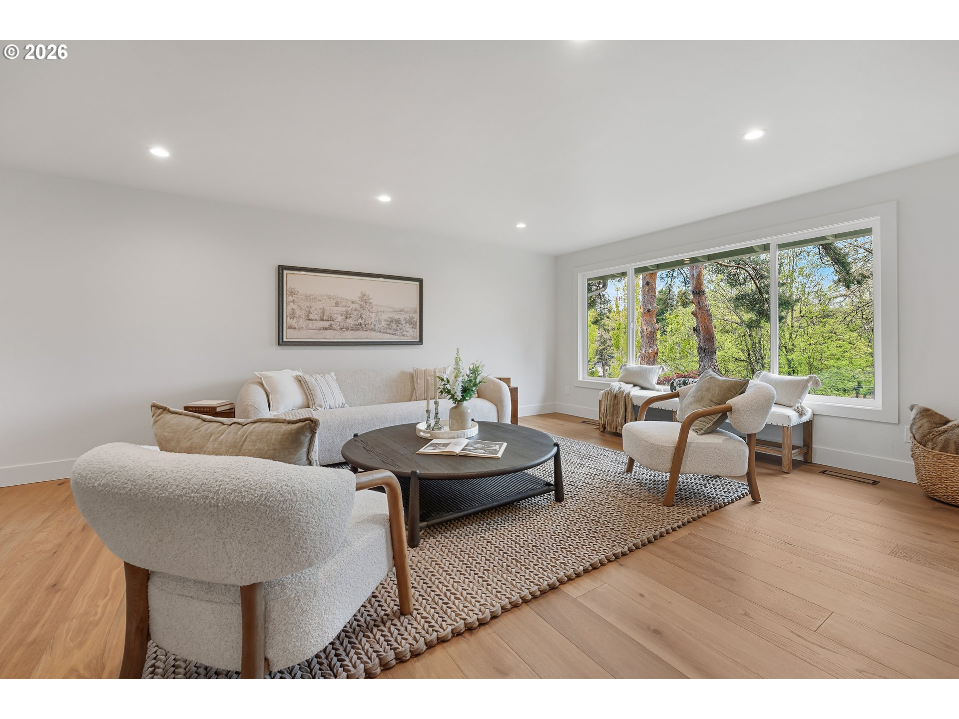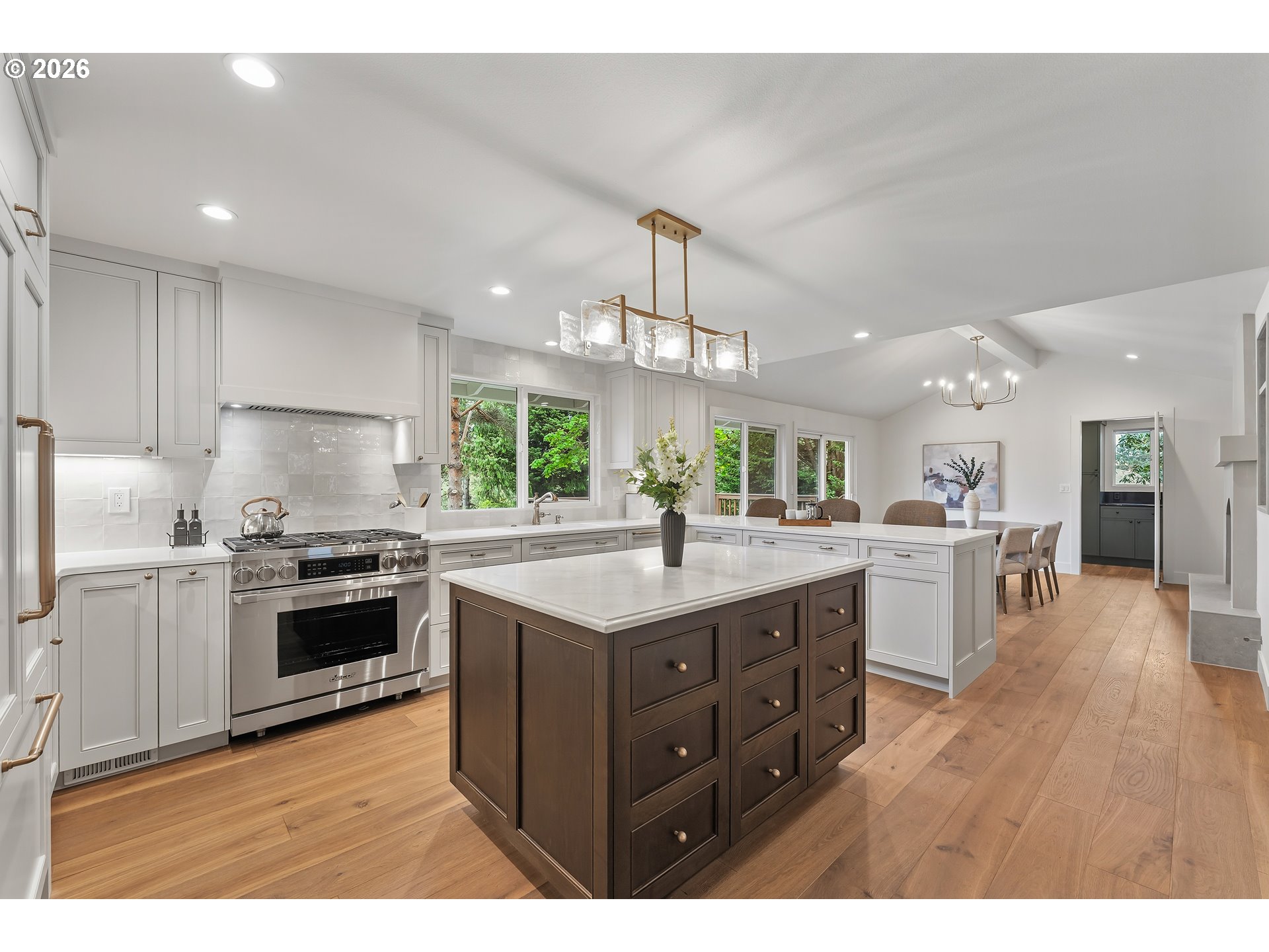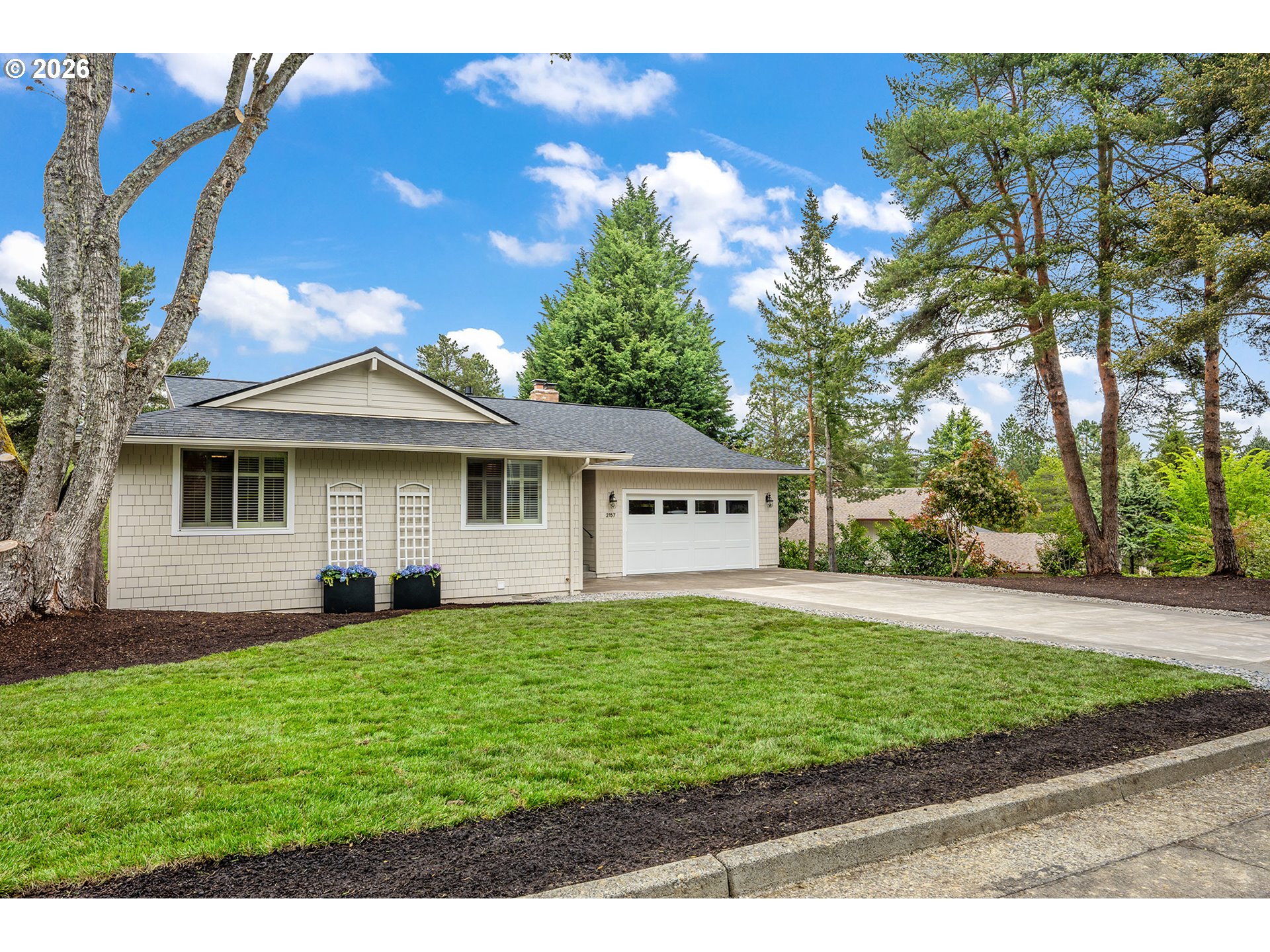 This stunning daylight basement ranch-style home offers over 4,000 square feet of beautifully designed living space—far more expansive than its charming exterior suggests. Light-filled interiors and an effortless sense of openness greet you from the moment you step inside. Nestled on a quiet cul-de-sac in one of Lake Oswego’s most desirable neighborhoods, this extensively remodeled residence has been thoughtfully updated inside and out by a professional designer and skilled contractor. Major system upgrades provide true peace of mind: a new high-efficiency furnace and air conditioner, updated electrical panel, full plumbing re-pipe, new exterior siding, fresh interior and exterior paint, and all-new millwork. At the heart of the home, the show-stopping chef’s kitchen features custom cabinetry, top-tier appliances, and a generous butler’s pantry. It flows seamlessly into a versatile dining and great room with treetop vistas and a cozy gas fireplace—ideal for both everyday living and entertaining. The adjacent living room offers a tranquil retreat, framed by a large picture window overlooking the scenery. The main-level owner’s suite is a private sanctuary, complete with its own laundry room and a luxurious spa-inspired en-suite bath with heated floors and elegant finishes. Throughout the home you’ll enjoy new engineered hardwood flooring, plush carpet, and beautifully appointed bathrooms with designer vanities from RH. Downstairs, a spacious family room with a second gas fireplace is perfect for movie nights and gatherings. The lower level also includes two generously sized bedrooms, a bright shared bathroom with dual sinks, a second laundry room, abundant storage, and a flexible bonus space ideal for a home gym, office, or guest area. Outside, a large private yard is ready for entertaining or relaxation. Enjoy access to the Uplands lake easement and swim park, plus easy walks to Springbrook trails and top-rated Lake Oswego schools. Golf, dining, and shopping!