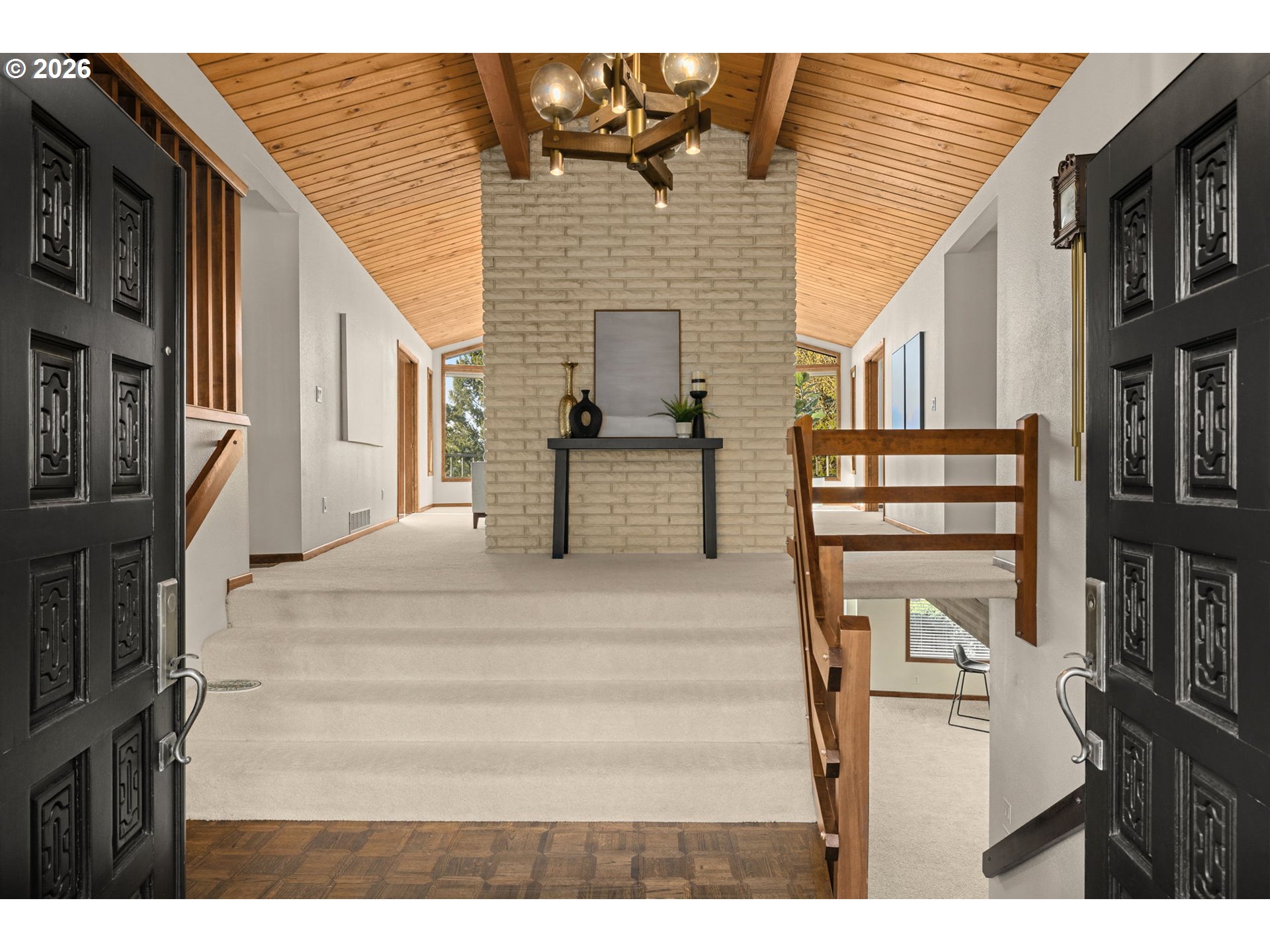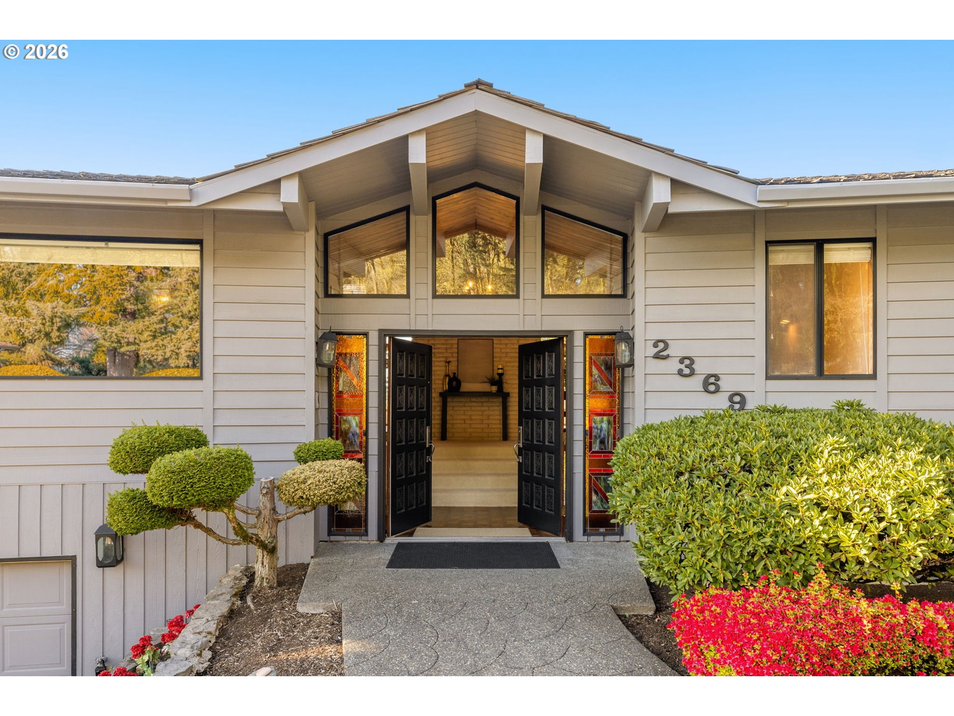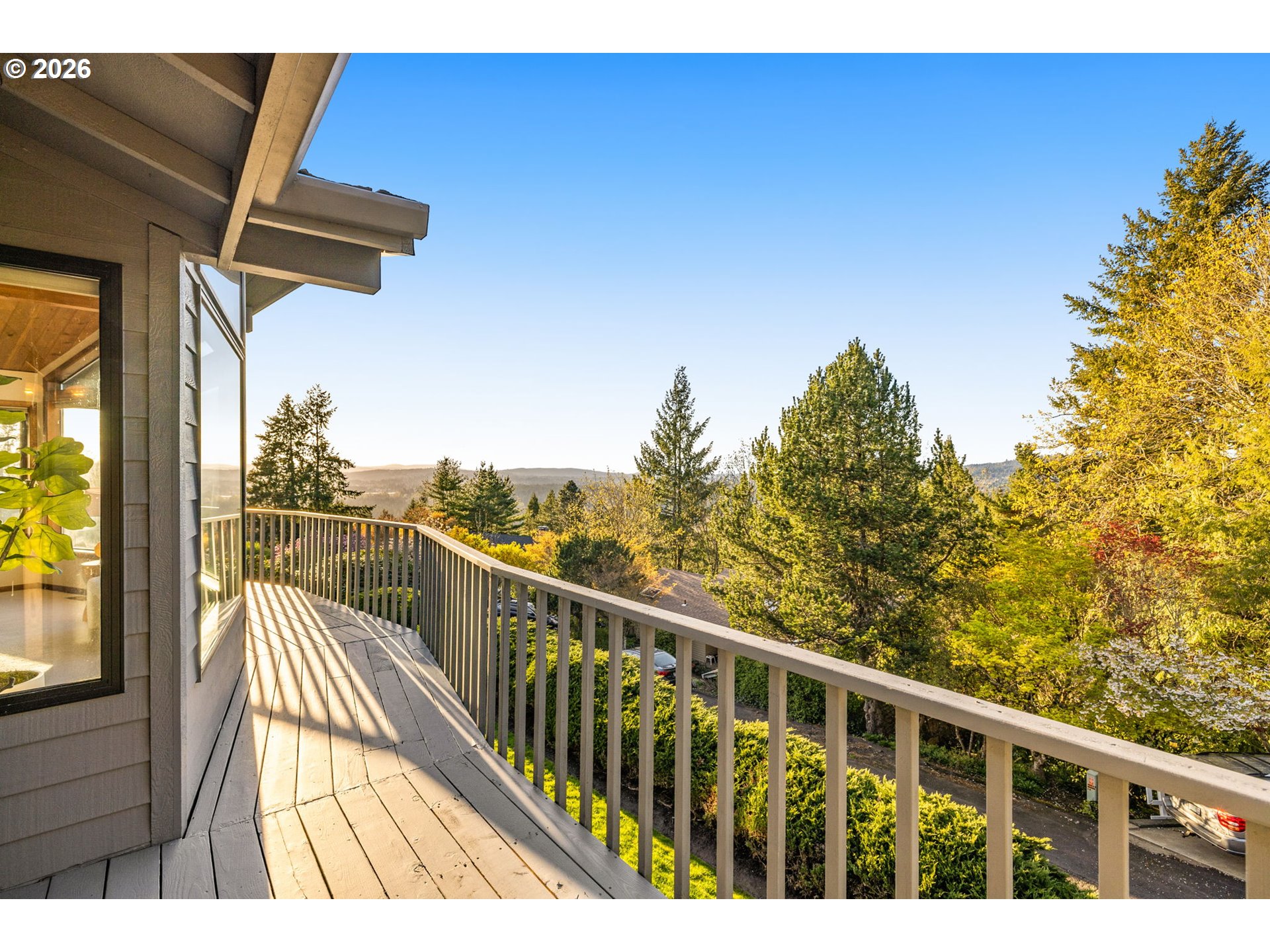 Custom-built Northwest contemporary offered for the first time since it was constructed, located high in Lake Oswego’s Palisades neighborhood on a quiet dead-end street just steps from the trails of Cook’s Butte Park. Expansive windows capture sweeping valley views with glimpses of the Cascade Mountains and fill the home with natural light. Circular driveway leads to French doors with stained-glass panels. Inside you’ll find vaulted tongue-and-groove ceilings, a dramatic floor-to-ceiling fireplace, and large open living spaces. Main level offers primarily single-level living with living room, family room, dedicated office, formal dining room, kitchen with eating nook, 3 bedrooms including the primary suite, and laundry. A full-length deck extends across the back of the home with a covered seating area, creating a great space for entertaining while enjoying the valley views. Lower level includes a large bonus room with fireplace, 2 additional bedrooms, and a full bathroom, providing flexible space for guests, recreation, or multi-generational living. Additional features include dual furnaces, dual hot water systems, and an oversized 2-car garage with workshop space. Low-maintenance yard. Convenient access to Lakeridge High School and the Lake Oswego Recreation & Aquatic Center. Rare opportunity to own a home with expansive space, views, and a prime Palisades location.