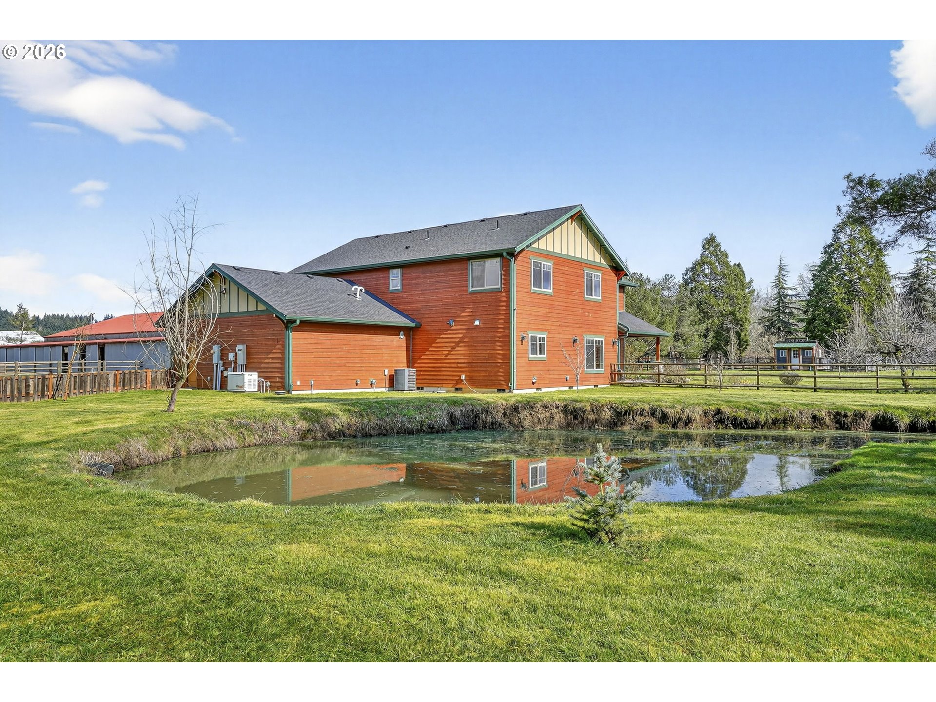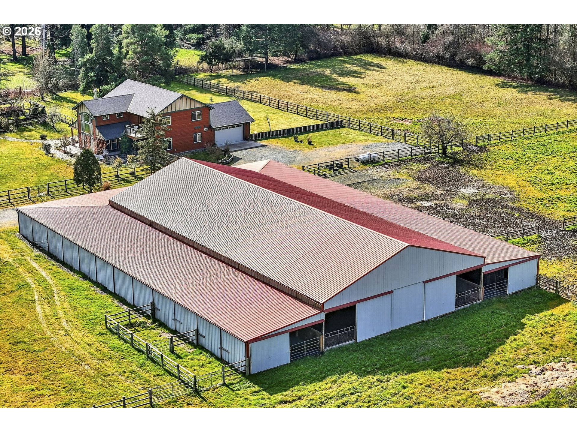 Exceptional 2017-built home on 6 fully fenced acres—ideal for country living and serious equine pursuits.This 2,889sqft residence offers 3beds,3baths and an open,light-filled floorplan anchored by vaulted ceilings and a wall of windows with scenic views of pastures,pond,greenhouse and chicken coop from nearly every vantage. The main-level primary suite features dual brass sinks,jetted tub,walk-in closet and French doors to the fenced yard.The cook’s kitchen opens to dining and living areas and is appointed with stainless appliances, gas cooktop, brass undermount farm sink,large prep island and two walk-in pantries. The living area centers on a substantial stone fireplace and flows easily to outdoor spaces for entertaining and everyday enjoyment.Upstairs includes two bedrooms,office space,a full bath, abundant storage and a bonus family room with balcony overlooking the property—perfect for lounging,games or a reading nook.Quality finishes include hardwood floors,abundant natural light, central vacuum,attached garage and a backup generator. Equine infrastructure is outstanding:a 60×120 indoor arena with attached viewing lounge and restroom and laundry;stables configured to accommodate up to 21 stalls (many currently doubled for comfort);tack room, wash rack/cross-ties;three-stall run-in pasture; and dedicated hay/shavings storage.Cottage guest quarters 1,278sqft provide ideal space for extended family,a trainer/clinician,artist studio or a home office.Additional farm features include greenhouse,raised beds,lean-to implement storage,charming chicken coop and a picturesque pond.Eagle Creek is known for its scenic rural character,and easy access to outdoor recreation—nearby hiking and riding trails,river access, and close proximity to Mt.Hood with convenient access—approximately 30 minutes to Oregon City.Move-in ready and perfectly positioned for boarding,training or breeding operations.Exceptional value for serious horse people seeking in place facilities.