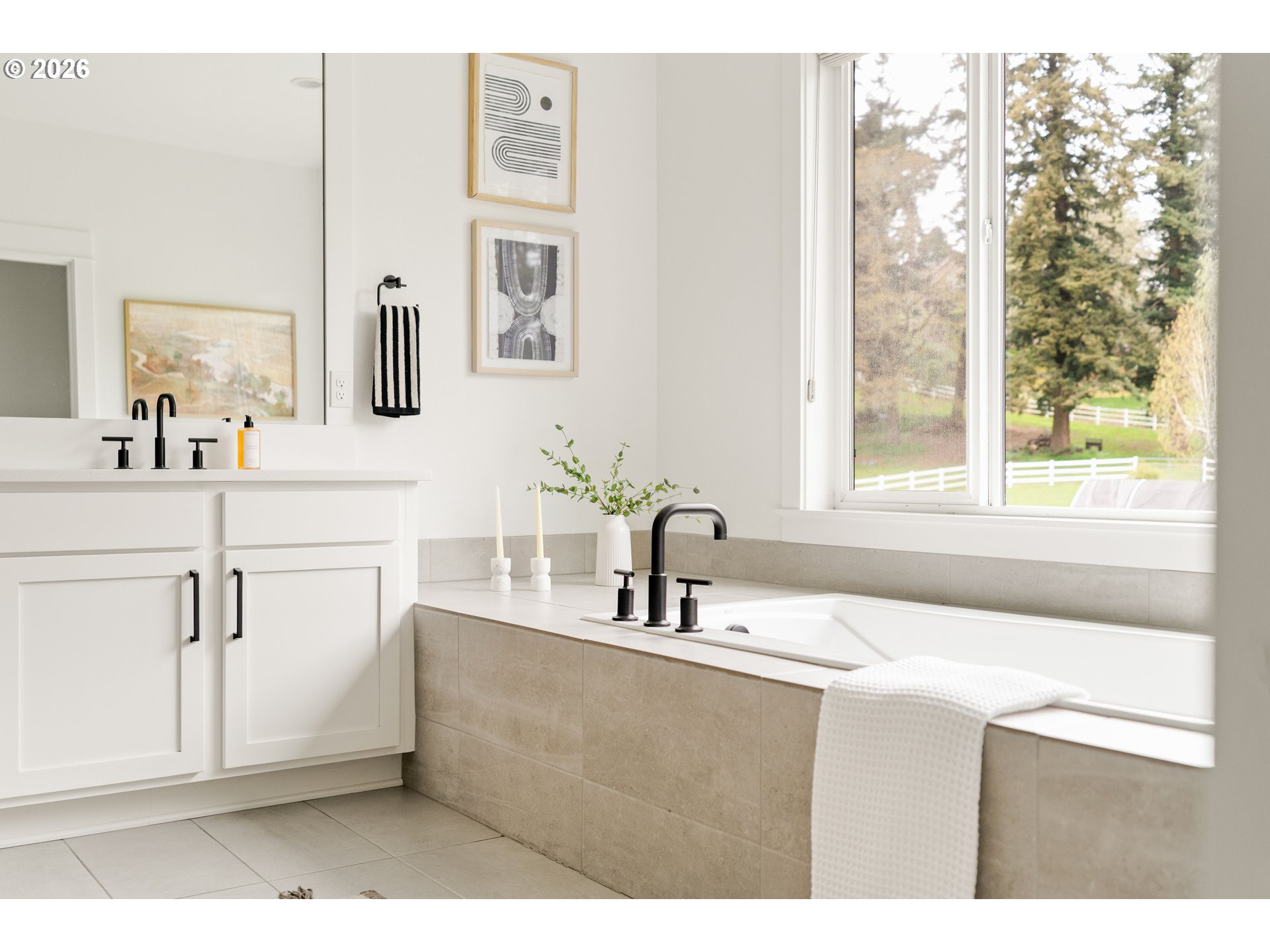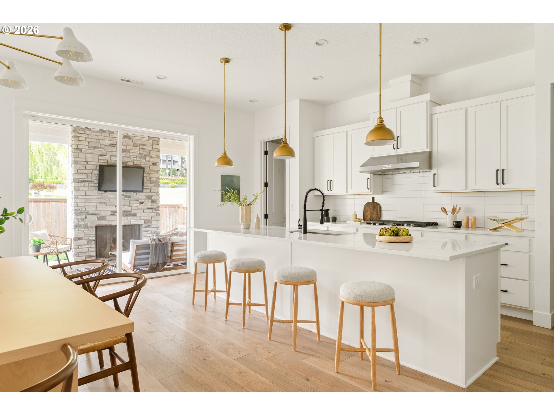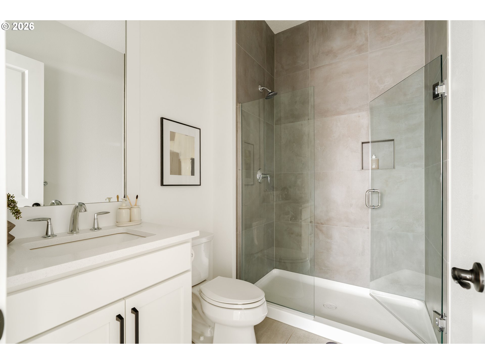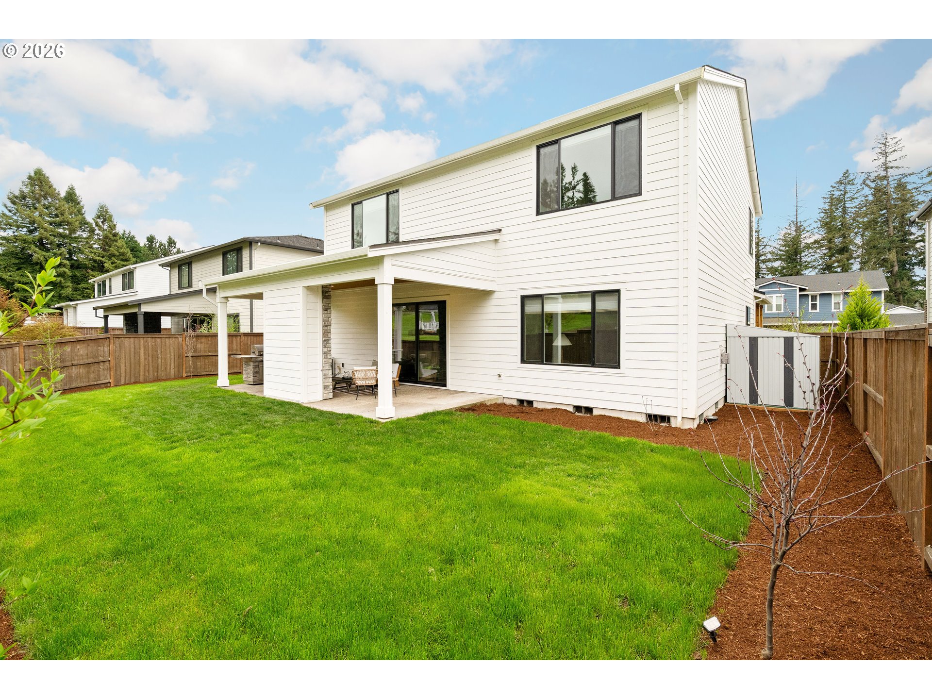 This 2022 Toll Brothers modern farmhouse is better than new, showcasing an impeccable blend of style, sophistication, and high-end finishes. Step inside from the covered front porch to discover an open main floor that seamlessly connects the living room, dining area, and chef’s kitchen. The oversized island with quartz countertops, walk-in pantry, and elegant cabinetry come together to create an optimal space for entertaining guests and preparing family meals. Rounding out the first level is a bedroom and full bath with walk-in shower, ideally suited for guests or multi-generational living. Upstairs, you'll find three generously sized bedrooms and two full baths, including a luxurious primary suite that’s designed to impress. The spa-like en-suite features a jetted tub, massive walk-in shower, double sinks, and two walk-in closets. The spacious loft area offers ample storage with recently added floor-to-ceiling built-ins and media cabinet, creating a flexible space for whatever suits your lifestyle. Beyond the sliding glass door, the covered patio of your dreams awaits — complete with a stone gas fireplace, outdoor TV, and extensive grilling station. The fully fenced yard includes two sheds, and provides both privacy and space to run + play. The garage supplies substantial room for cars and storage alike, while the third-bay has been expertly outfitted with rubber flooring mats to create an expansive home gym. Located in the highly sought-after community of West Linn, just minutes from top-rated schools, parks, restaurants and shopping, this home offers the perfect blend of suburban tranquility and urban convenience.
