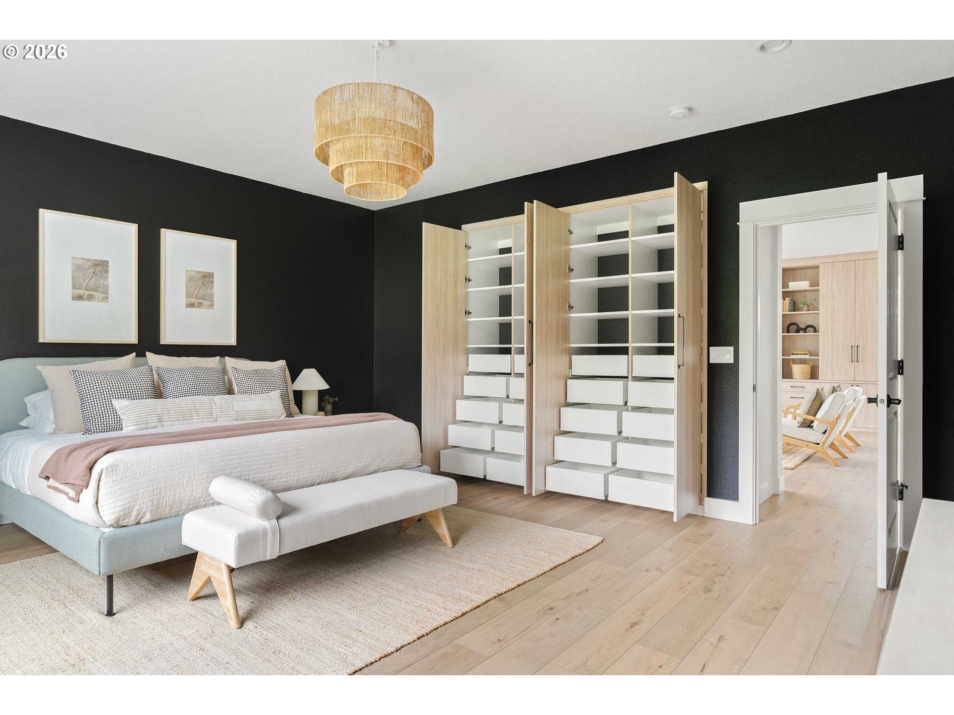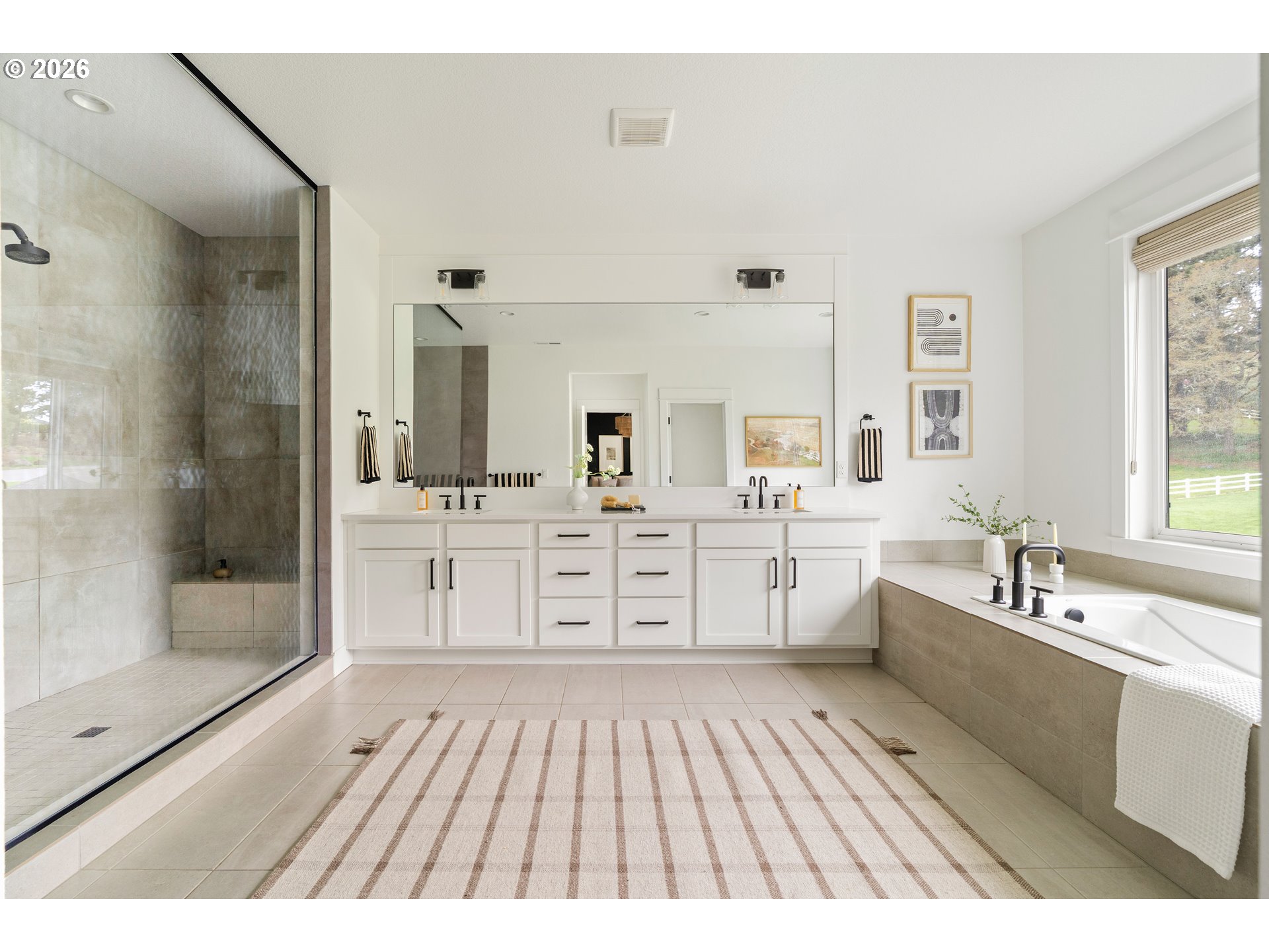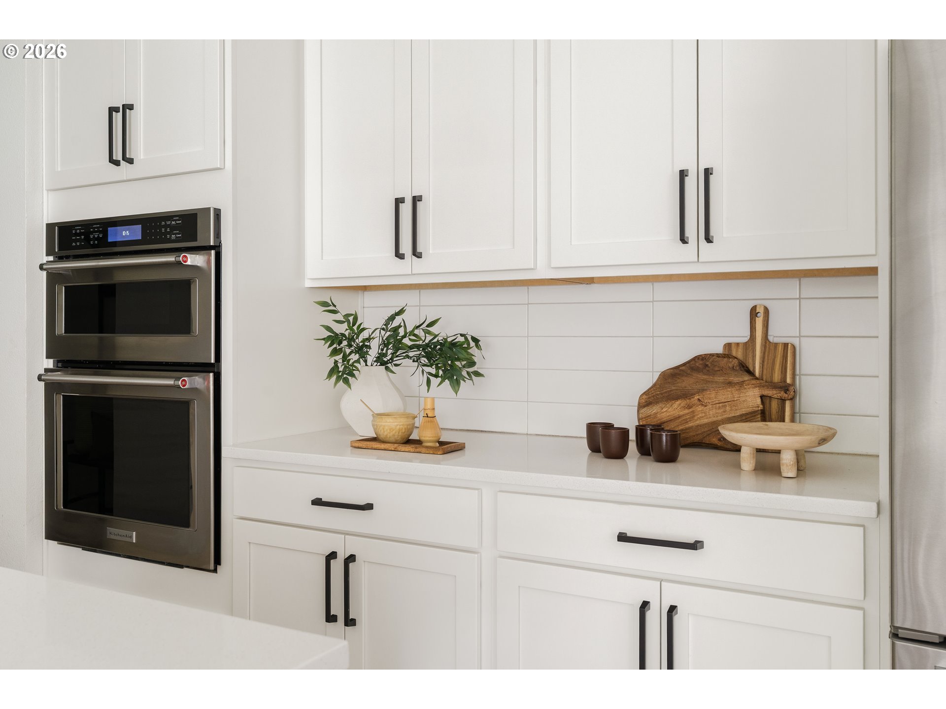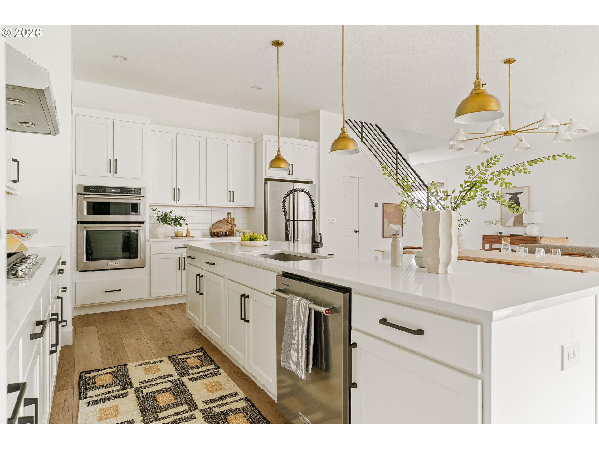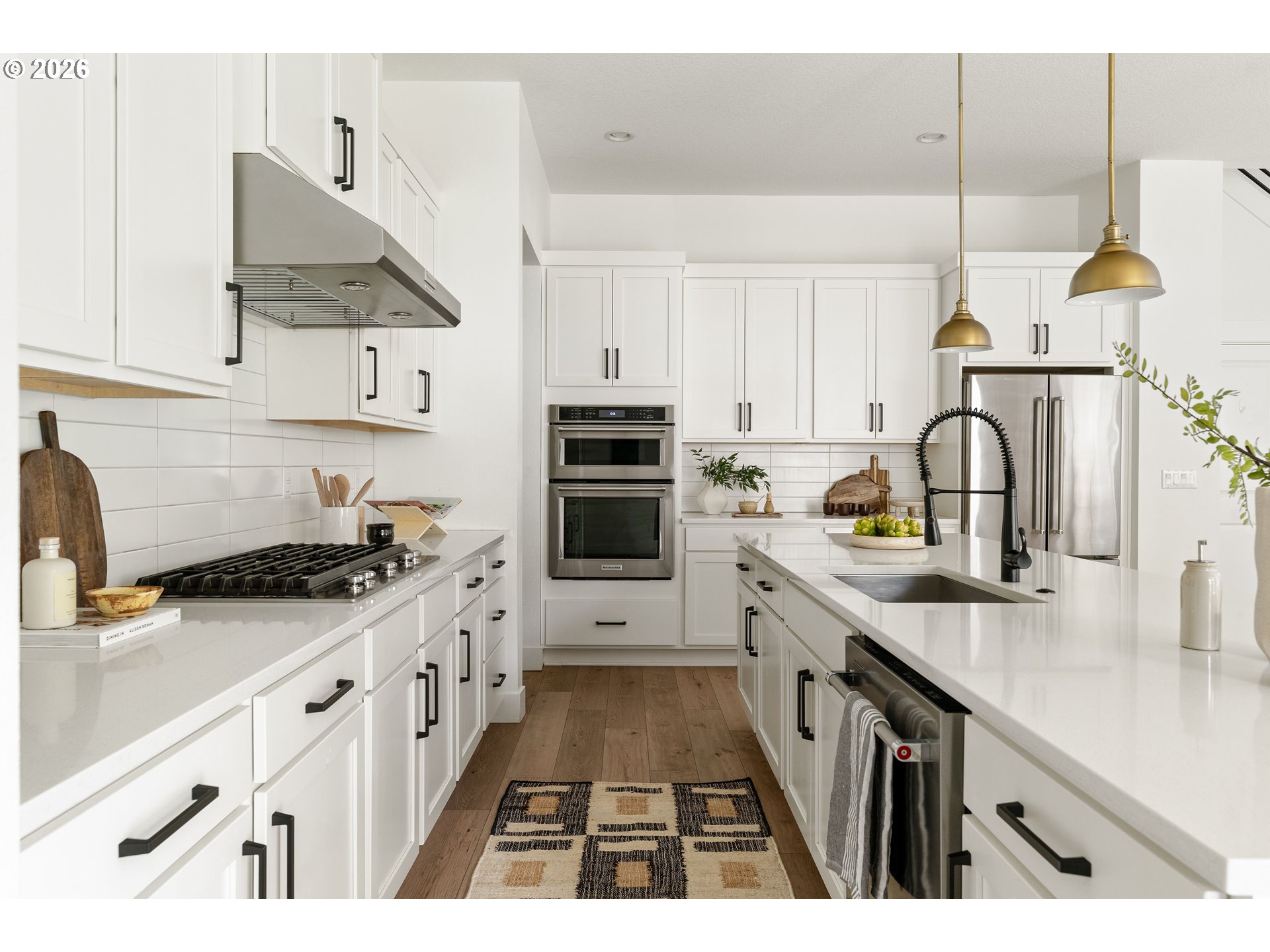 This 2022 Toll Brothers modern farmhouse is better than new, showcasing an impeccable blend of style, sophistication, and high-end finishes. Step inside from the covered front porch to discover an open main floor that seamlessly connects the living room, dining area, and chef’s kitchen. The oversized island with quartz countertops, walk-in pantry, and elegant cabinetry come together to create an optimal space for entertaining guests and preparing family meals. Rounding out the first level is a bedroom and full bath with walk-in shower, ideally suited for guests or multi-generational living. Upstairs, you'll find three generously sized bedrooms and two full baths, including a luxurious primary suite that’s designed to impress. The spa-like en-suite features a jetted tub, massive walk-in shower, double sinks, and two walk-in closets. The spacious loft area offers ample storage with recently added floor-to-ceiling built-ins and media cabinet, creating a flexible space for whatever suits your lifestyle. Beyond the sliding glass door, the covered patio of your dreams awaits — complete with a stone gas fireplace, outdoor TV, and extensive grilling station. The fully fenced yard includes two sheds, and provides both privacy and space to run + play. The garage supplies substantial room for cars and storage alike, while the third-bay has been expertly outfitted with rubber flooring mats to create an expansive home gym. Located in the highly sought-after community of West Linn, just minutes from top-rated schools, parks, restaurants and shopping, this home offers the perfect blend of suburban tranquility and urban convenience.