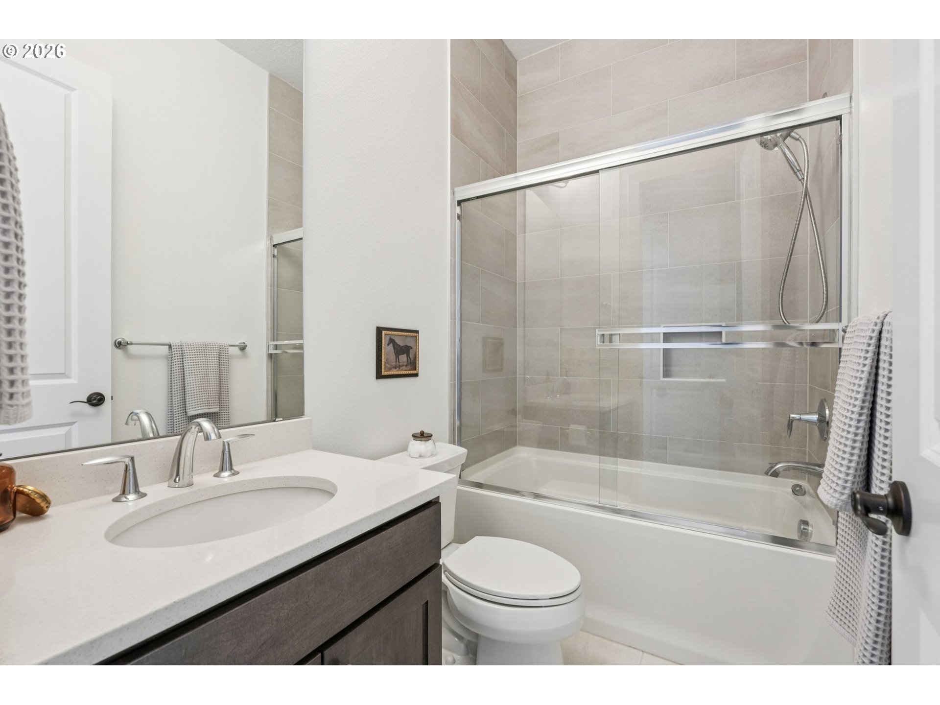 Better-than-new and beautifully designed, this 2022 Toll Brothers built home in desirable West Linn offers modern luxury, thoughtful upgrades, and a prime greenspace setting. Situated on a private lot in the sought-after Rosemont area, this 2-story contemporary home blends style, comfort, and functionality.Step inside to soaring high ceilings, abundant natural light, and rich hardwood floors that flow through the main living areas. The open-concept great room centers around a cozy fireplace, creating the perfect space for both everyday living and entertaining. The chef’s kitchen is a standout with quartz countertops, a large island, pantry, and sleek cooktop designed for both form and function.Upstairs, you’ll find spacious bedrooms including a serene primary suite with elevated finishes and a peaceful outlook. With 5 bedrooms total, this home offers flexibility for guests, office space, or hobbies.Enjoy outdoor living with a backdrop of greenspace, providing added privacy and a tranquil setting. Additional highlights include an attached garage, energy-efficient systems, and contemporary exterior finishes with board & batten, shake, and stone accents.Located in the highly regarded West Linn School District and close to parks, shopping, and dining, this home offers the perfect balance of convenience and lifestyle.Move-in ready and built in 2022! Skip the wait for new construction and start enjoying immediately!