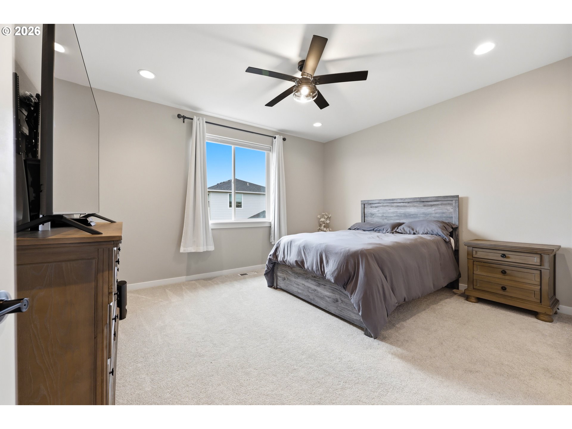 Better than new in Wilsonville’s popular Frog Pond neighborhood! This thoughtfully upgraded home features soaring ceilings, 8-foot doors, and abundant natural light throughout. The open-concept kitchen with quartz countertops flows seamlessly into the living and dining spaces, making it ideal for entertaining. Upstairs, a spacious loft provides flexible living space alongside three comfortable bedrooms, including a private primary suite with dual shower heads and a walk-in closet. Step outside to an extended patio and fenced backyard—perfect for summer barbecues, relaxing evenings, or hosting friends. Located just minutes from Wilsonville Town Center, parks, and I-5, this home offers the perfect blend of style, comfort, and convenience.