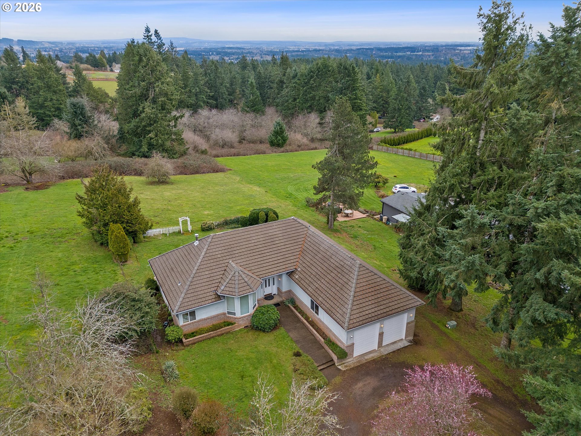 Located in the highly desirable Ladd Hill area, this single-level home offers incredible potential and wonderful views of the Cascade Mountains and valley. Ready for the new owner’s personal touches, the home features high ceilings throughout and a spacious layout designed for comfortable living. Enjoy the views from the formal living and dining rooms as well as the large primary suite, which opens to a private deck, perfect for taking in the scenery. The primary suite also includes a soaking tub and walk-in closet.The generous kitchen and nook flows into the family room, complete with a cozy woodstove for chilly evenings. Additional features include a reverse osmosis system, water softener, and a newer Trane heat pump. Outside, you’ll find an oversized garage and shop with a concrete floor and power, ideal for hobbies, storage, or projects.All of this in the highly sought after Sherwood School District, with the peaceful setting and views make it a special place to call home.