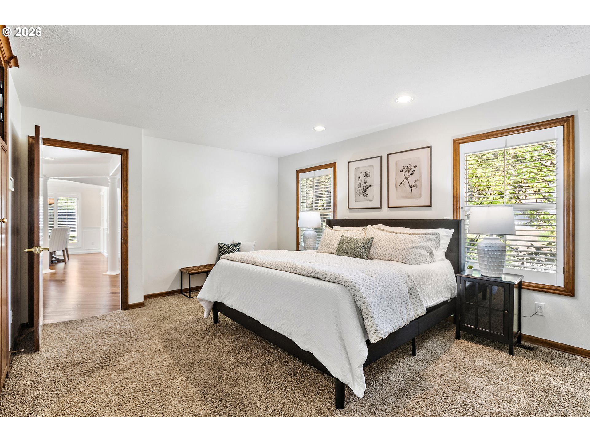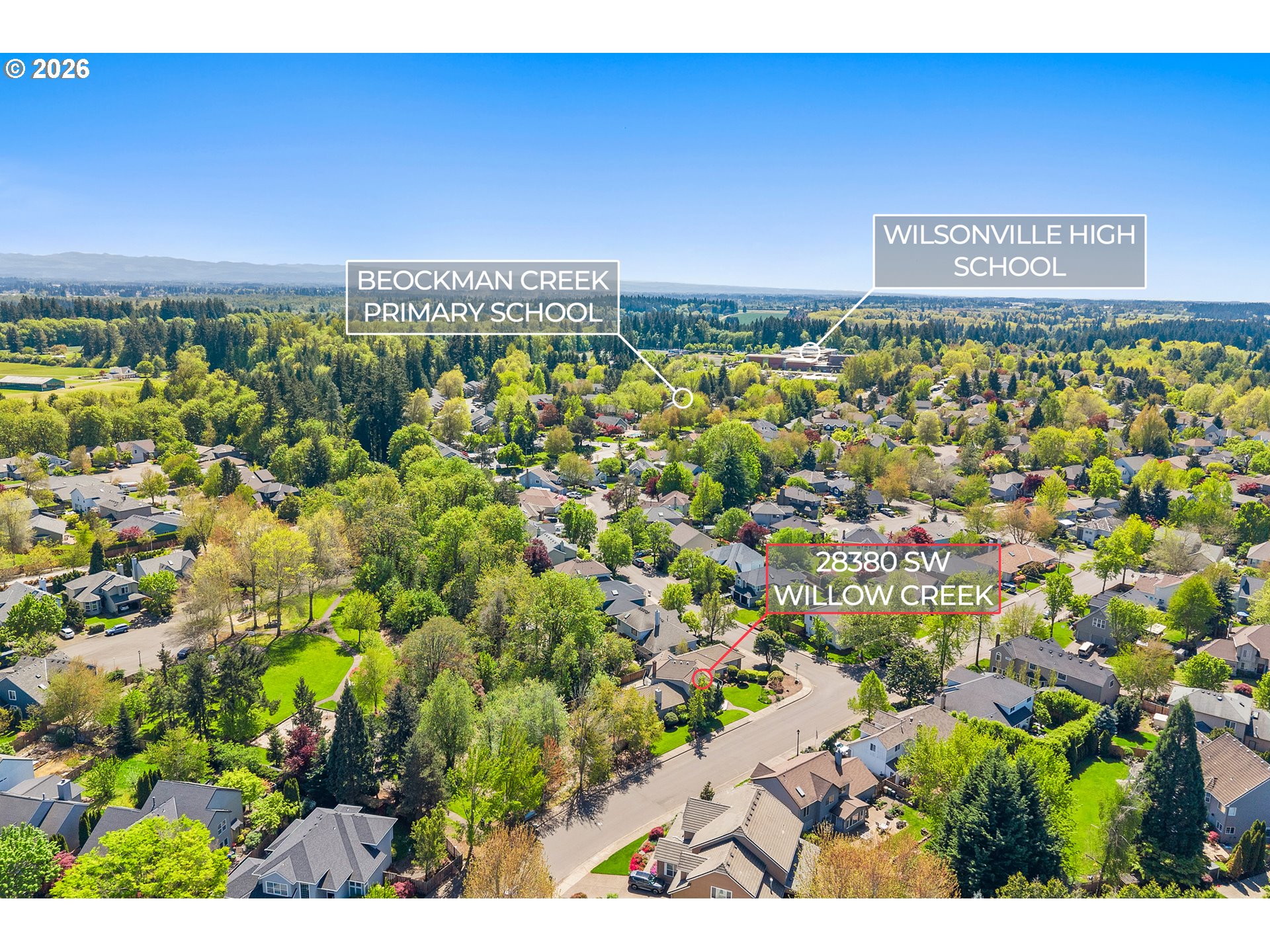 This is the one buyers wait for. Nearly 3,000 sq ft with a primary suite on the main and a hard-to-find .27-acre corner lot backing to Willow Creek—offering space, privacy, and a layout that truly works.A grand foyer opens into formal living and dining spaces, while the heart of the home is the renovated kitchen and adjoining family room, designed for everyday living and gathering. The kitchen delivers with granite countertops, double ovens, gas cooktop, and a JennAir appliance package including a built-in refrigerator for a seamless, high-end look. A dedicated wine fridge adds to the functionality.The main-level primary suite is positioned for comfort and convenience with direct backyard access, a spacious walk-in closet, and a well-appointed bath featuring double sinks, soaking tub, and walk-in shower. Upstairs provides flexibility with three additional bedrooms, each with its own private balcony.Storage and function are dialed in with a large pantry, multiple walk-in storage areas, and a utility room with sink. Fireplaces with both woodstove and gas options add warmth and versatility.Set on a rare corner lot, the outdoor space stands out with a fully fenced yard, Trex deck, patio, dog run, and storage shed—all backing to Willow Creek and Landover Park for a peaceful, private backdrop.An oversized 4-car garage offers room for vehicles, hobbies, or a home gym, plus a large driveway for additional parking. Located in the coveted Wilsonville Meadows neighborhood with low annual HOA and convenient access to I-5, I-205, schools, and shopping.