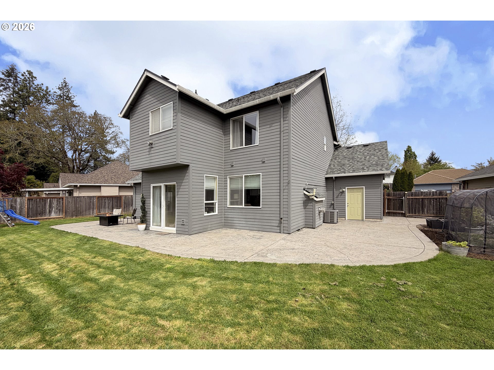 Life in Wilsonville Meadows feels calm and comfortable, with room to spread out and come together. This two-level single-family residence offers 2,281 sq ft, 4 bedrooms, and 2.5 baths, giving everyone their own space while keeping daily routines simple. On cooler nights, gather around the fireplace and let the day slow down. Forced-air heating and air conditioning keeps things comfortable year round. Set your mind at ease as furnace was replaced in 2020, air conditioning new in 2024 as well as a new water heater in 2024. Outside, the large lot with fully fenced backyard and stamped concrete patio makes it easy to enjoy the fresh air at home. Concrete sidewalks encompass the entire house giving you space for kids and grownups to play, enjoy gardening or simply enjoy a quiet weekend at home. With a three car garage and ample parking space, you'll appreciate the flexibility for daily life. Conveniently located close to schools, abundant shopping, and just minutes from I-5. This home allows you to be ready for the next chapter to take shape, supporting busy weekdays and relaxed weekends alike.