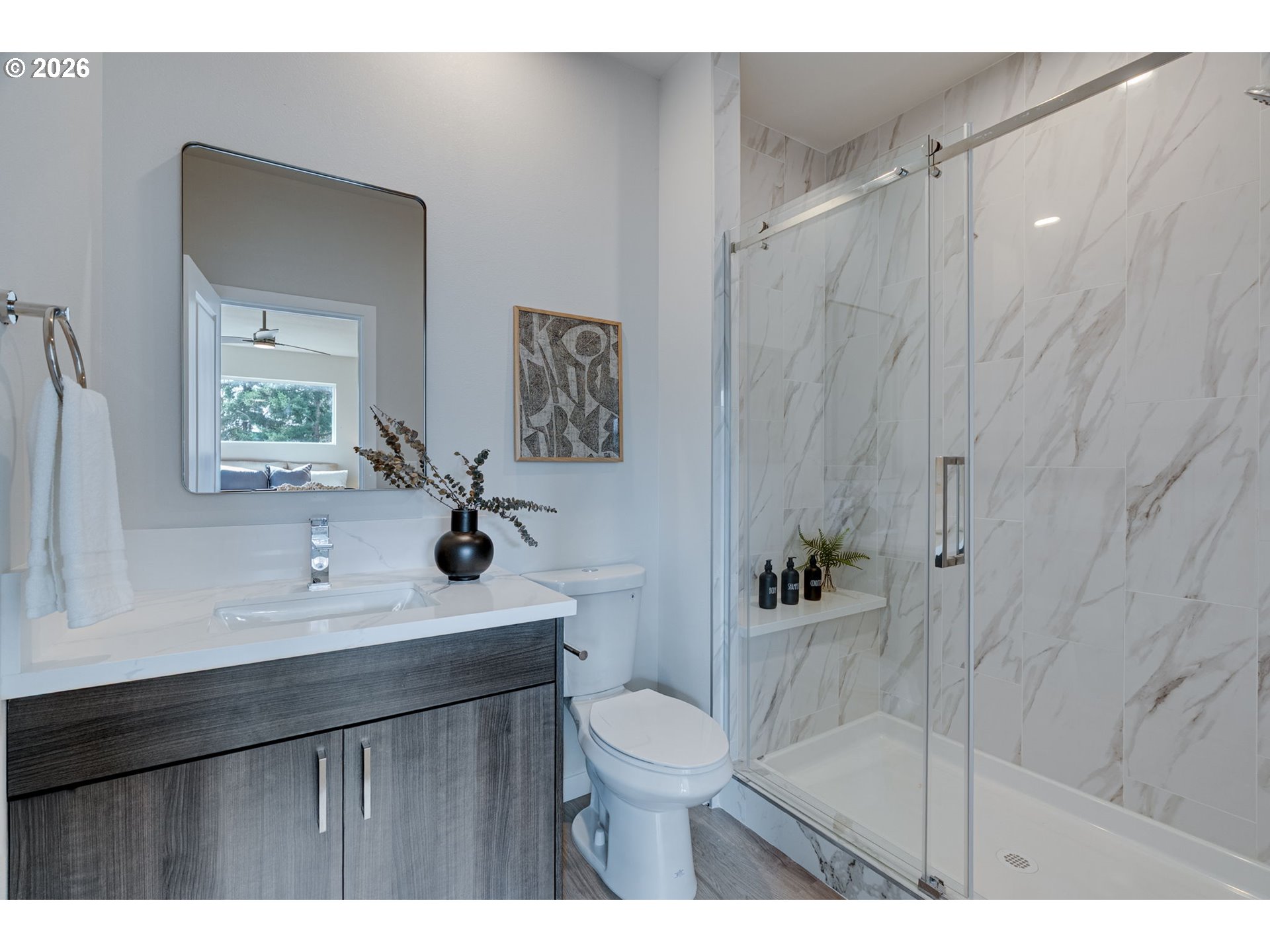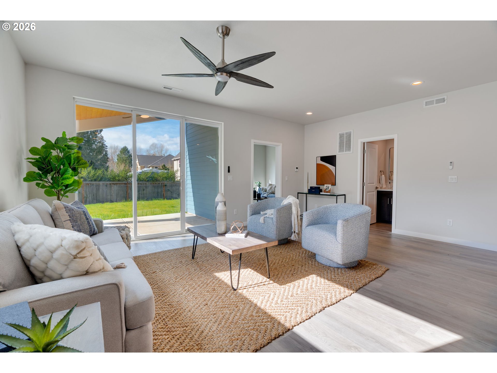 Welcome to this stunning new modern construction home designed for comfortable living and effortless style. Flooded with natural light, the open-concept layout creates a bright and airy atmosphere perfect for both everyday living and entertaining. At the heart of the home, the sleek contemporary kitchen features clean lines, quality finishes, and a spacious island that provides the perfect gathering space for cooking, dining, or hosting guests. The kitchen flows seamlessly into the main living and dining areas, creating a warm and connected living environment. Step out to the covered patio for relaxing or entertaining overlooking a nicely sized backyard ready for your vision - perfect for creating an outdoor entertaining area, garden, or relaxing retreat. A main-level bedroom and full bathroom offers flexibility as a guest room, home office, or creative space. Upstairs, a generous loft area provides additional flex space - ideal for a second living or media area, play area or study zone.Nestled on a cul-de-sac in the quiet, tree-lined neighborhood of Canyon Creek, this home offers a peaceful setting while remaining conveniently close to everyday essentials. Enjoy quick access to nearby parks, schools, shopping, and easy I-5 commuting. LLC has licensed OR broker members.