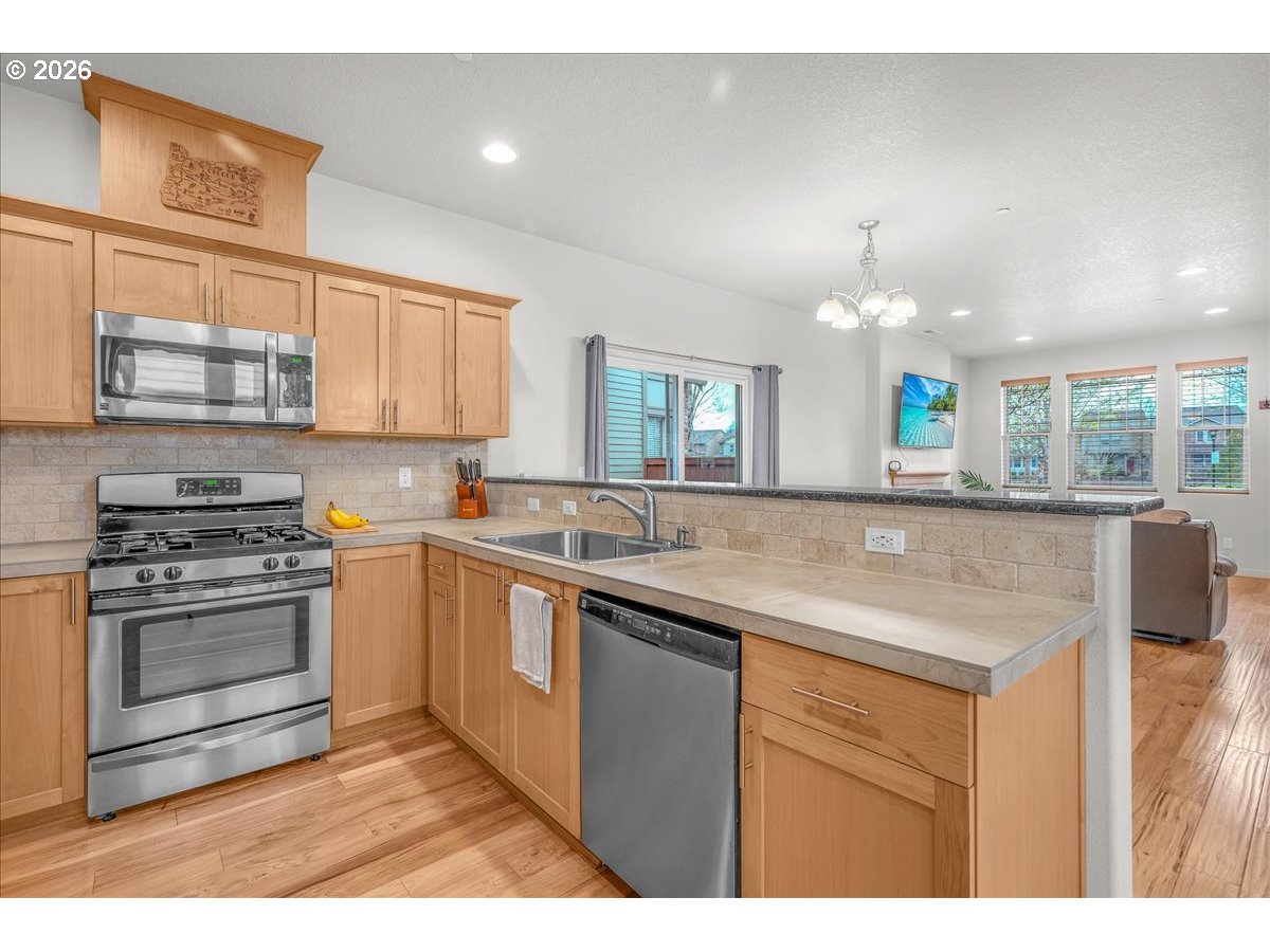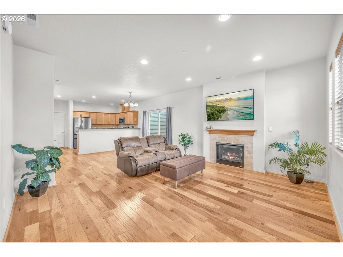 This beautifully well maintained one owner Villebois home is nestled in a highly desirable location directly across from Piccadilly Park with its scenic trails & park activities! Easy open floorplan living, gas fireplace in living room, has dinette area as well as a flex cubby space that can work as dining or an office set-up (your choice). This home also has a dedicated laundry room conveniently located on 2nd level with bedrooms. Has new hot water heater, newer quieter disposal w/upgrded sink & faucet, new A/C system and thermostat installed June 2025, high speed internet connection & fresh paint. The side yard has high quality soft SynAugustine faux grass for easy low-maint living and comfort. Has a 2 car garage w/attached high quality ceiling storage system that stays with the property. This home offers a wonderful balance of neighborhood living and modern convenience. Has access to parks, trails, pool, courts, playgrounds, gym and retail (some of these optional amenities require additional membership fees). Beautiful and hard to beat location in Villebois, enjoy the view of Picadilly Park from your front porch!