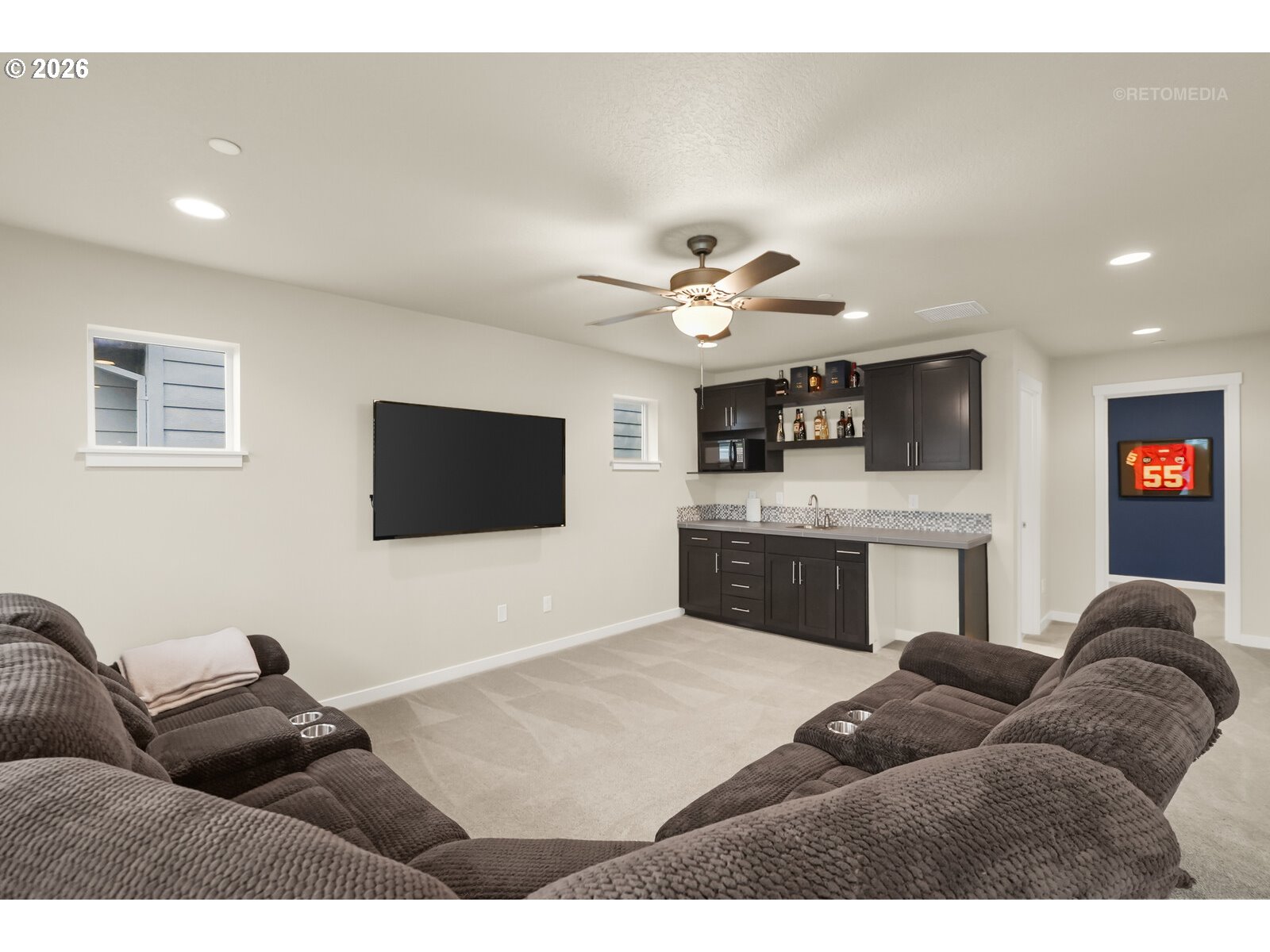 Set in the heart of Wilsonville’s beloved Villebois community, this move-in ready JT Roth-built home offers effortless living in one of the area’s most sought-after neighborhoods. Thoughtfully designed and beautifully maintained, this barely lived-in residence features light-filled interiors, flexible living spaces, and a layout perfectly suited for today’s lifestyle. The main level showcases engineered hardwood floors, wainscoting, crown molding, and a welcoming living room with a custom tile surround gas fireplace and built-in shelving. The spacious great room flows seamlessly into the dining area, creating an ideal setting for gathering. The modern kitchen is equipped with granite countertops, stainless steel appliances, a pantry, and an eat-bar for casual meals and conversation. Indoor-outdoor living is made easy with a slider off the kitchen leading to a side patio, perfectly sized for grilling, outdoor seating, or even a hot tub. A unique retractable glass garage door opens directly to the patio, creating a fun entertaining space! Upstairs, the primary suite serves as a comfortable retreat with French door entry, a walk-in closet, and a private balcony. The primary bathroom features a dual-sink vanity, soaking tub, and a tile-wrapped walk-in shower. Two additional well-sized bedrooms, a hall bath, and a dedicated laundry room provide convenience. The third level offers exceptional versatility with a large bonus room featuring a wet bar, ideal for movie nights and game days, plus an office-flex room that can serve as a potential 4th bedroom, along with a half bath. Additional highlights include central air conditioning, blinds throughout, and a two-car garage with alley access. Enjoy all that Villebois has to offer, including tree-lined paths, parks, trails, sport courts, and a strong sense of community. Conveniently located to schools, shopping, dining, and major commuter routes, this home delivers comfort, flexibility, and an unbeatable Villebois lifestyle!