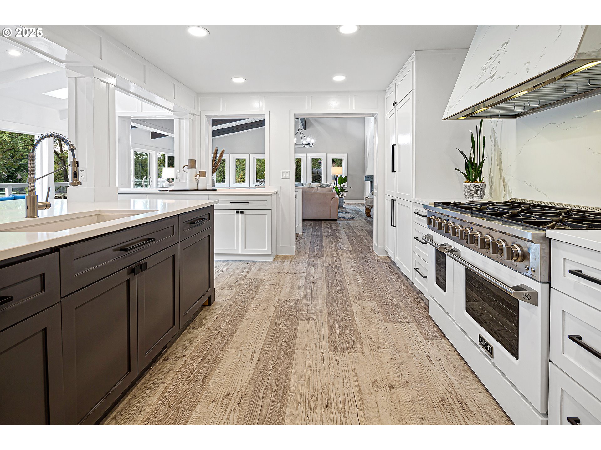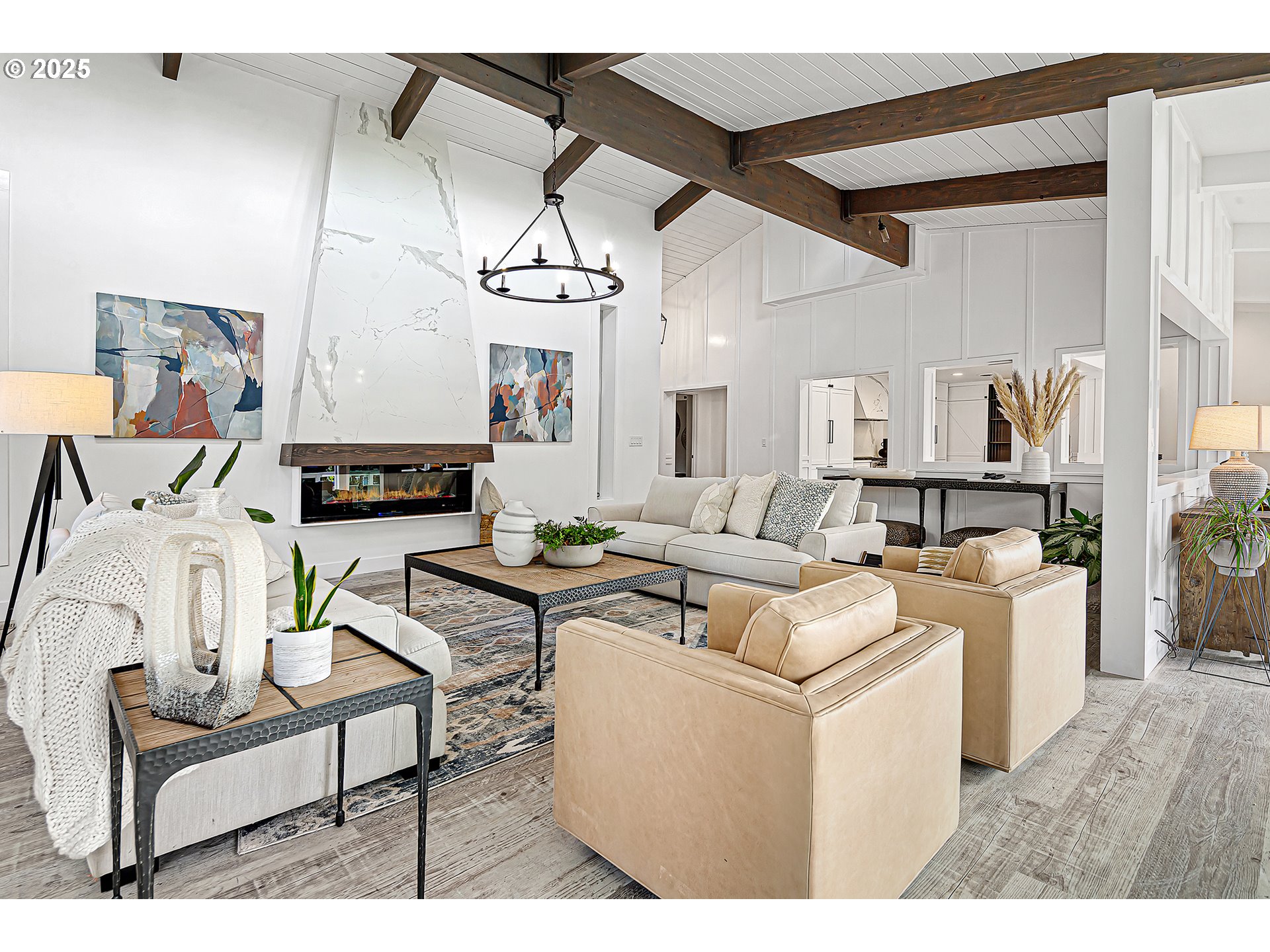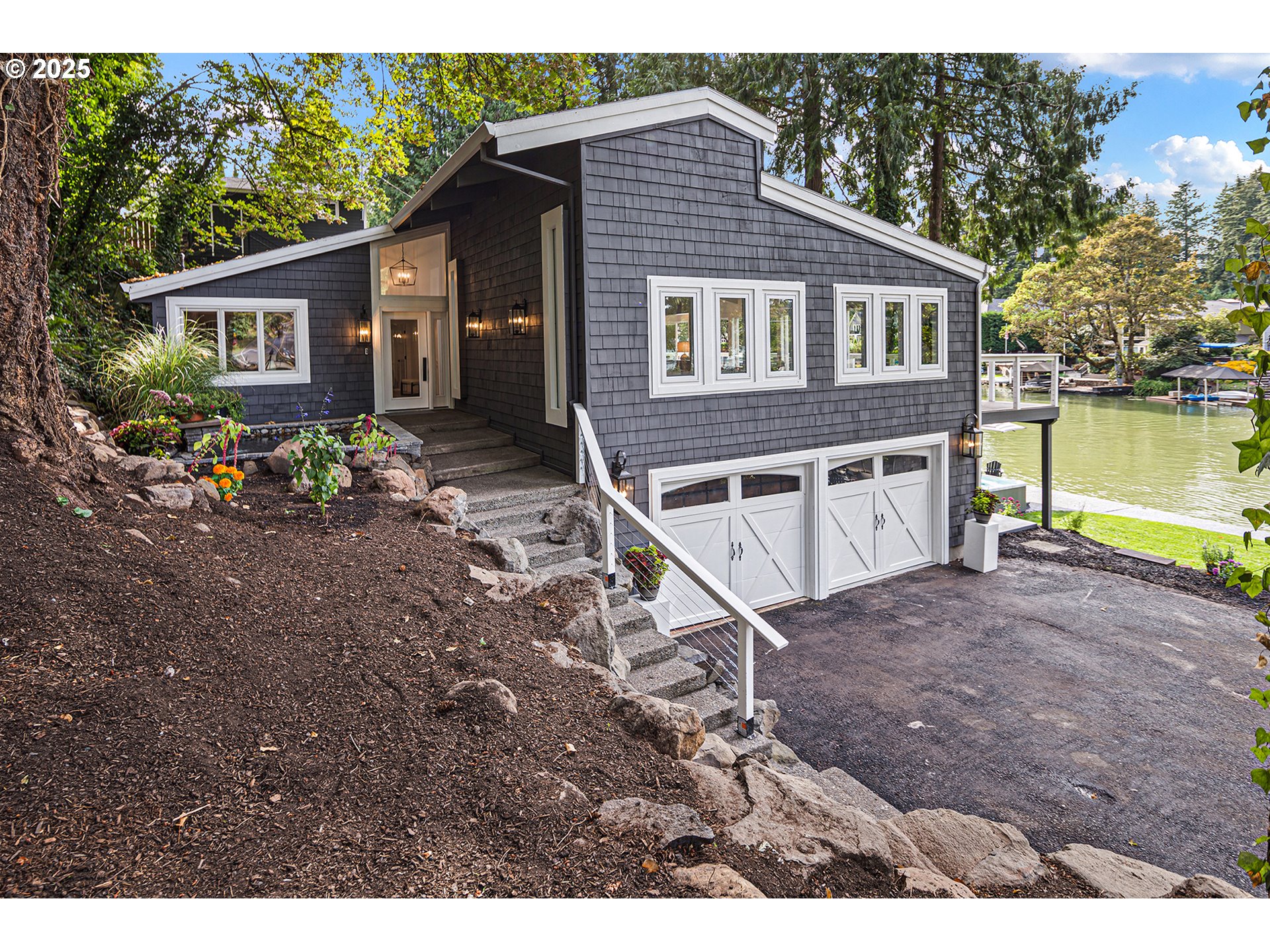 Exceptional opportunity to own a low-bank lakefront home on Blue Heron Bay, offering 134 feet of waterfront on Oswego Lake. Meticulously updated inside and out, this residence blends iconic design with refined modern living. Expansive views, abundant natural light, and a vaulted great room with a dramatic fireplace create a stunning main-level living experience. The well-appointed kitchen features stainless steel appliances, a professional 6-burner range, built in refrigerator, generous counter space, and an island ideal for both daily use and entertaining. The main-level bedroom suite features a beautifully finished custom walk-in closet, and a luxurious walk-in shower, with access to the main level deck. All of the bedrooms are ensuite, providing three full baths and offering comfort and privacy for guests or multi-generational living. The lower level enhances flexibility with a family/media room, custom built-ins, and direct access to the covered lakeside patio with a built-in outdoor kitchen complete with a BBQ. Outdoor spaces are thoughtfully designed to maximize the waterfront lifestyle, including a boathouse, fire pit, hot tub, and manicured shoreline with generous boat parking adding convenience for lake enthusiasts. With approximately 3,462 sqft this home is ideally located offering easy access to the main lake and the best of Lake Oswego living.