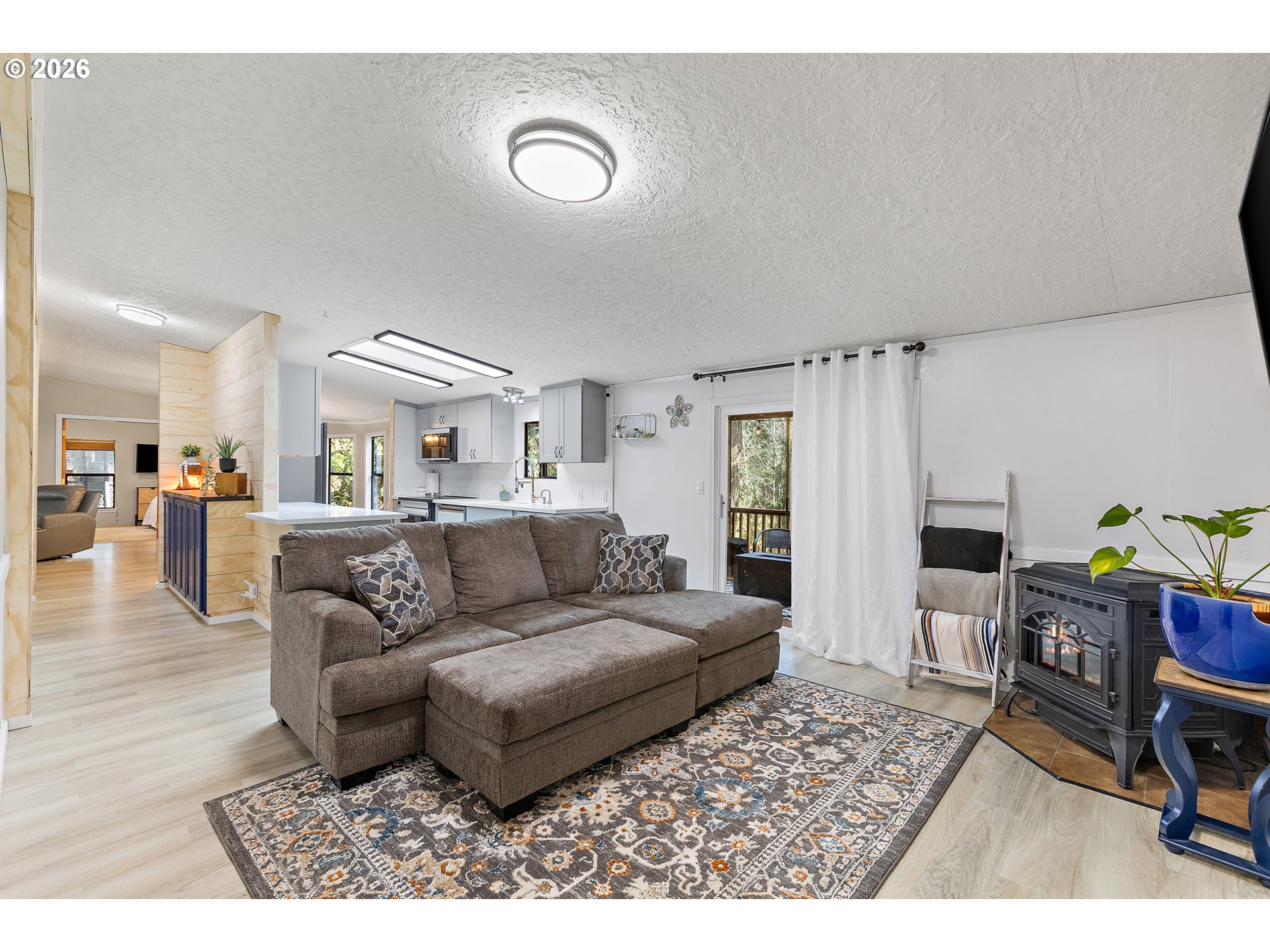 Updated, move-in ready, and surrounded by nature—this Big Valley Woods home lives larger than expected. Inside, vaulted ceilings and large windows create a bright, open feel throughout. The spacious newly updated kitchen, with all new Bespoke appliances provides ample counter space and storage, flowing seamlessly into both the living and dining areas for easy everyday living.This flexible floor plan with two separate living spaces is ideal for spreading out, working from home, or entertaining. The family room opens directly to a covered and screened deck, creating the perfect indoor/outdoor living space and a great spot to enjoy the surrounding greenery year-round. The primary suite offers a comfortable retreat with a walk-in closet and walk-in shower, 3 additional rooms provide versatility for whatever you need. Large laundry/mud room, with pantry and extra storage, new Samsung washer & dryer included. Keep cozy and warm with the two pellet stoves. Extensive system updates include: New heat pump (2025) Updated PEX plumbing (2020) Home re-leveled (2023) New water heater (2023) Covered parking/Paved driveway & walkway (2018) 30-year roof (2010)wired in generator supporting ~75% of the home. New hard surface flooring, updated light fixtures, wainscoting, ship lap wall accents, natural wood trim, and fresh paint, leaves nothing left to do but bring your things and settle in.