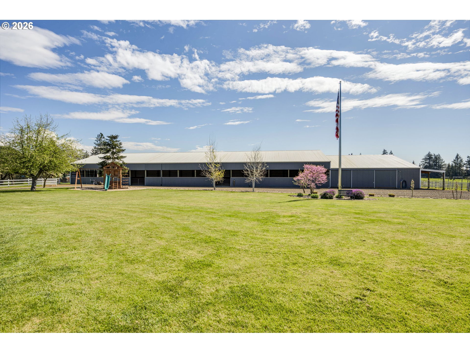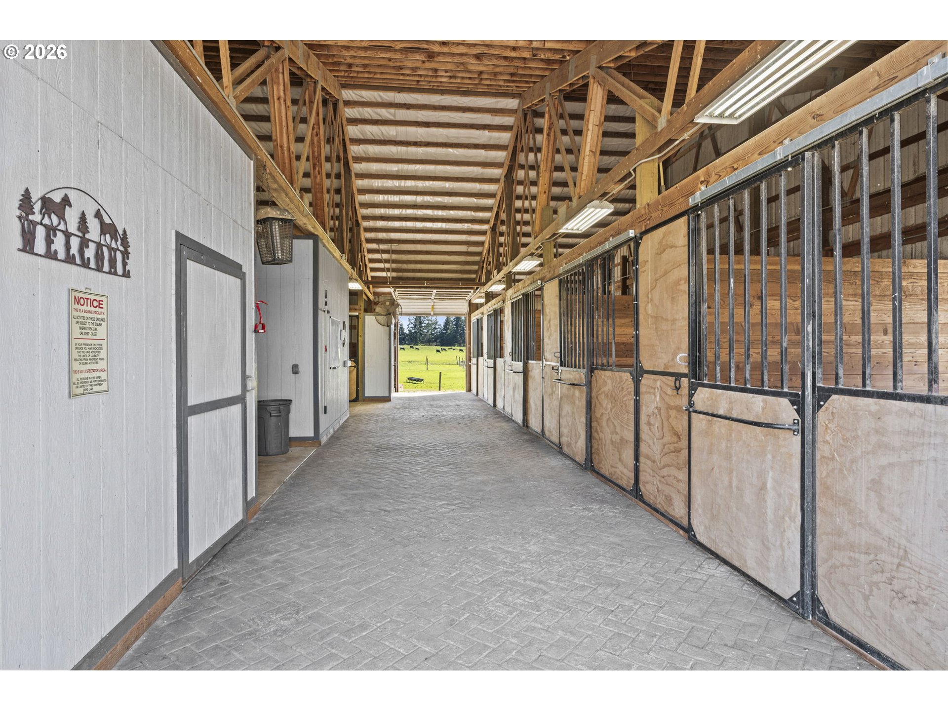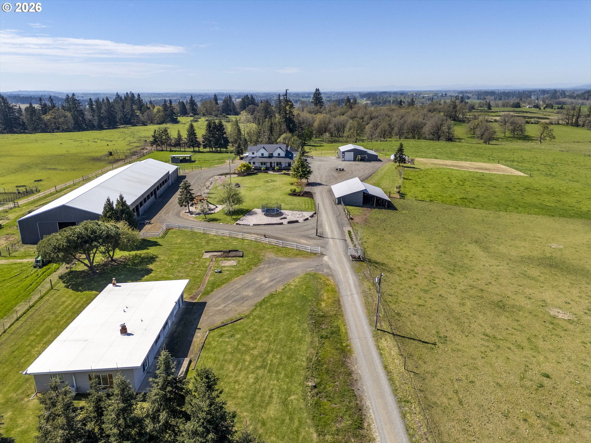 Where luxury living meets true country functionality, this exceptional, move-in ready equestrian & livestock property on just under 40 acres offers the complete package! The stunning 5,104 sqft custom 3 level home has 4 bedrooms, 4 full baths, office, formal dining, two primary suites (main-level and upper-level), additional upstairs family room, & a basement with exterior entry ready for so many options. The kitchen was beautifully remodeled in 2021, & more recent major updates include: metal roof, siding, windows, geo-thermal furnace, concrete patio, porch, railings & more. Details like quartz, farm sink, wine fridge, engineered bamboo flooring, arched walkthroughs are all features that add to the elegance but functionality of this beautiful home. Equestrian facility is equally impressive with a gorgeous barn with 6 12x12 matted stalls, stamped concrete walkway, 12x48 attached runs, heated tack room, washer/dryer hookups, wash rack with instant hot water, foaling stall, and easy-access hay/sawdust storage & manure dump. Ride year-round in the 60x180 covered arena with premium Equiloft footing. The barn is perfectly set up & will meet all your needs! Additional mixed-use stock barn, multiple covered shelters in pastures, & fenced/cross-fenced acreage make this ideal for horses, cattle, or multi farm use. Other outbuildings include a 36x48 insulated/heated shop with concrete floors, 220 power, built-in cabinets/workbench, storage loft, RV parking, & 16x48 lean-to for equipment storage, plus a 20x48 Quonset greenhouse with double-layer plastic. The back pasture is accented by beautiful oak trees, creating a serene and picturesque setting. And the rare bonus, a legal second residence! Approx. 1,431 sq ft with 2/3 bedrooms, updated kitchen, bath, laundry, and garage, ideal for multigenerational living, rental income, caretaker quarters, or guests. A truly turnkey legacy property where every detail has been thoughtfully done. Appointment only, do not drive up driveway.