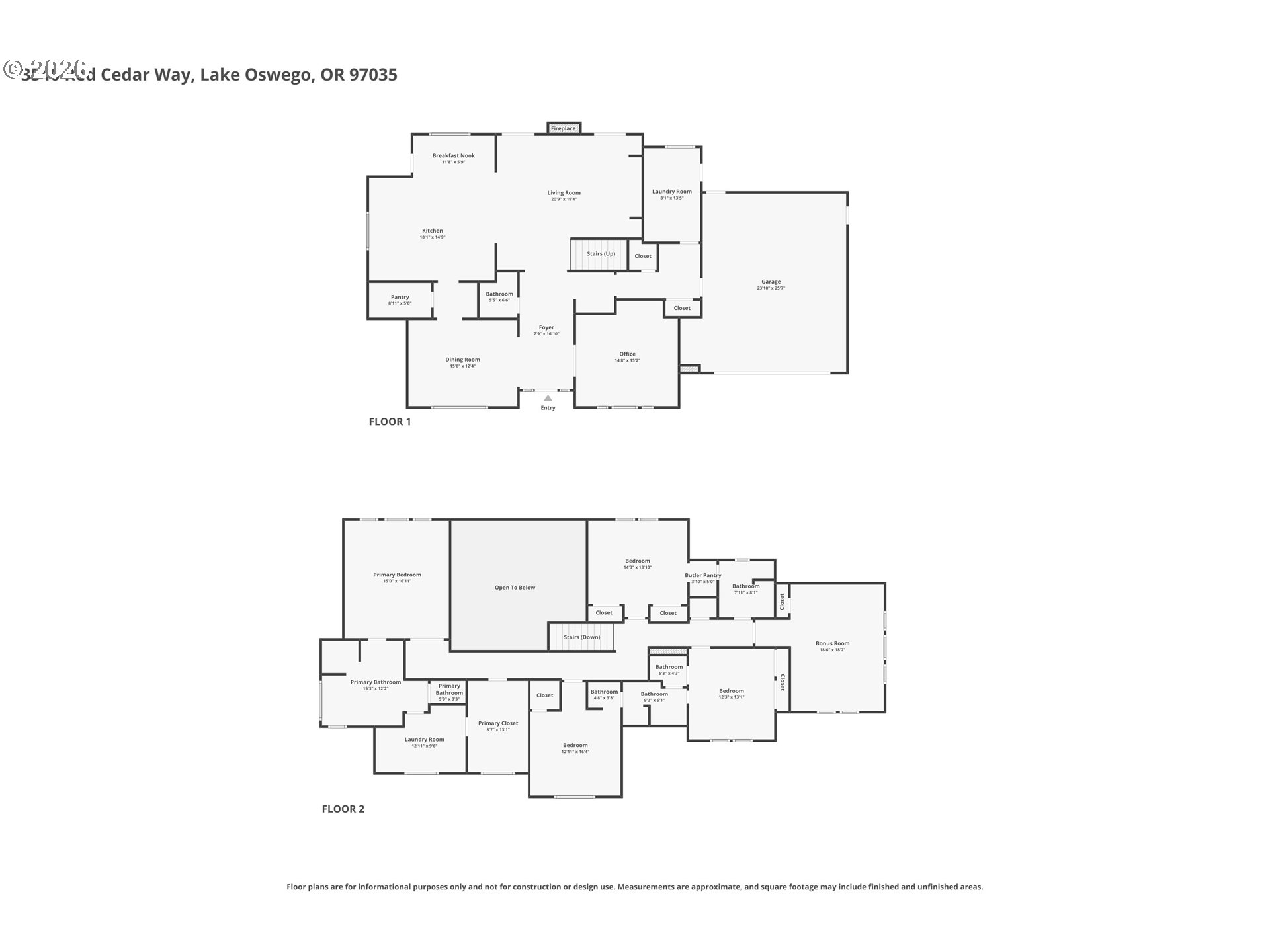 Modern farmhouse perfection on a quiet cul-de-sac where soaring vaulted ceilings and dramatic walls of glass create an unforgettable first impression. Designed for luxury and livability, the home features new Pella windows throughout and a roof less than one year old. The main level showcases walnut hardwood flooring and an expansive, light-filled living room anchored by a chef’s kitchen with heated limestone floors, premium stainless-steel appliances, a Thermador gas range, extensive counter space, an oversized walk-in pantry, and a wet bar with built-in wine fridge. Formal dining and a large separate living room with gas fireplace, new skylights, and French doors connecting to the outdoors, along with custom built-ins, offer ideal spaces for both intimate gatherings and larger entertaining, while a private office off the entry features custom millwork, bookcases, and a built-in desk. Upstairs, all bedrooms are thoughtfully positioned, including a stunning primary suite with two walk-in closets, backyard views, and a spa-like en suite with walk-in shower, rain showerhead, soaking tub, and secondary laundry, along with a convenient Jack and Jill bathroom serving the secondary bedrooms and a vaulted bonus room with picturesque windows providing a bright, open retreat. The flat, fully fenced backyard offers exceptional privacy and usability, with professional landscaping by Dennis’ 7 Dees, a new brick patio and hardscape, and nectarine and cherry trees. Additional features include central vacuum, a three-car garage with tool/garden bench, and a remodeled main-level laundry with cork countertops, new tile, sink, updated finishes, and backyard access, all just minutes from top-rated schools, freeway access, and Lake Grove shopping and dining.