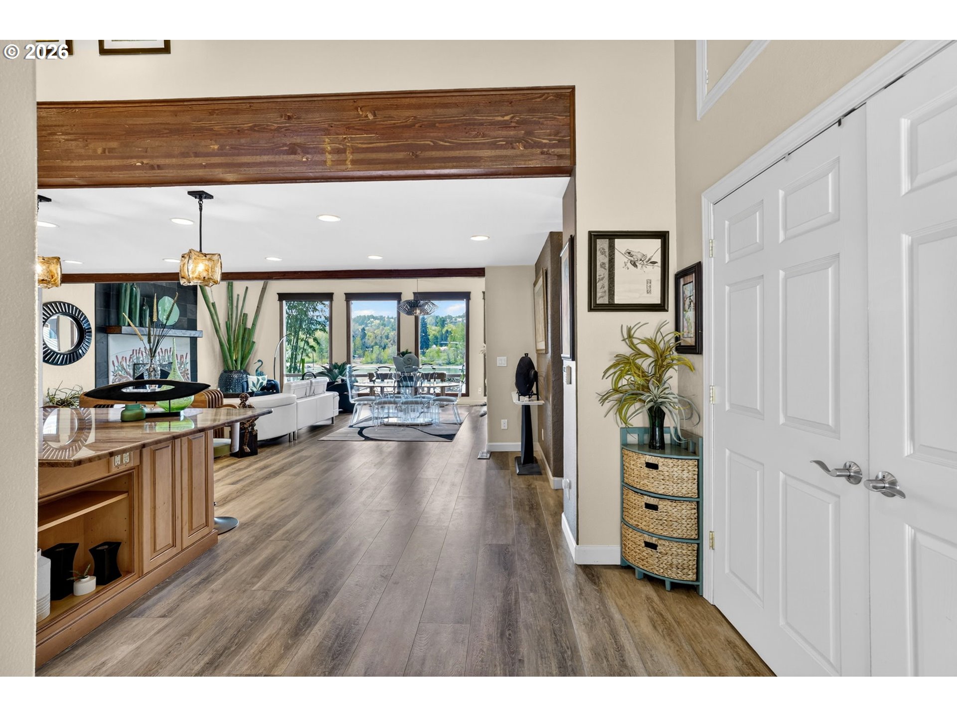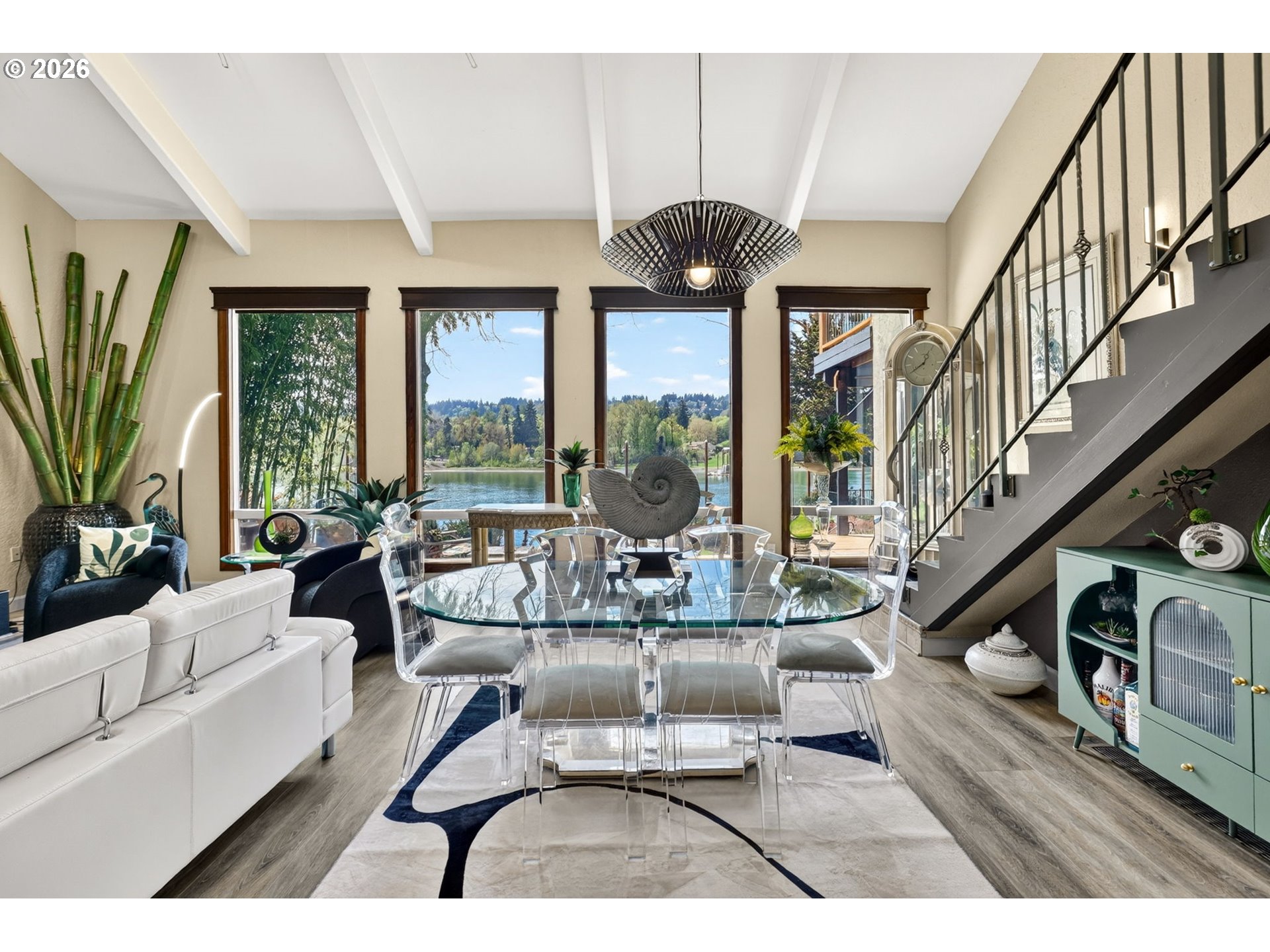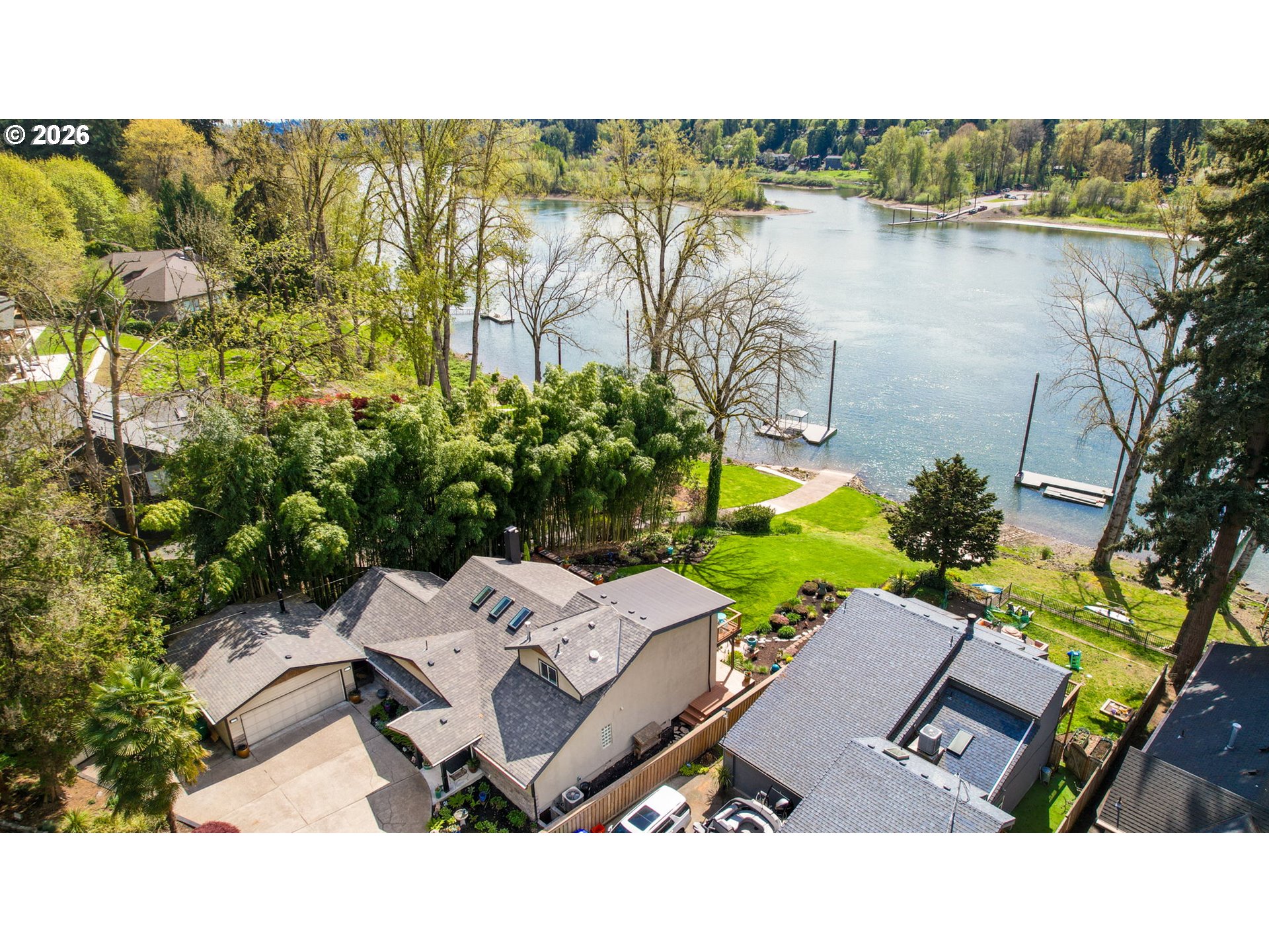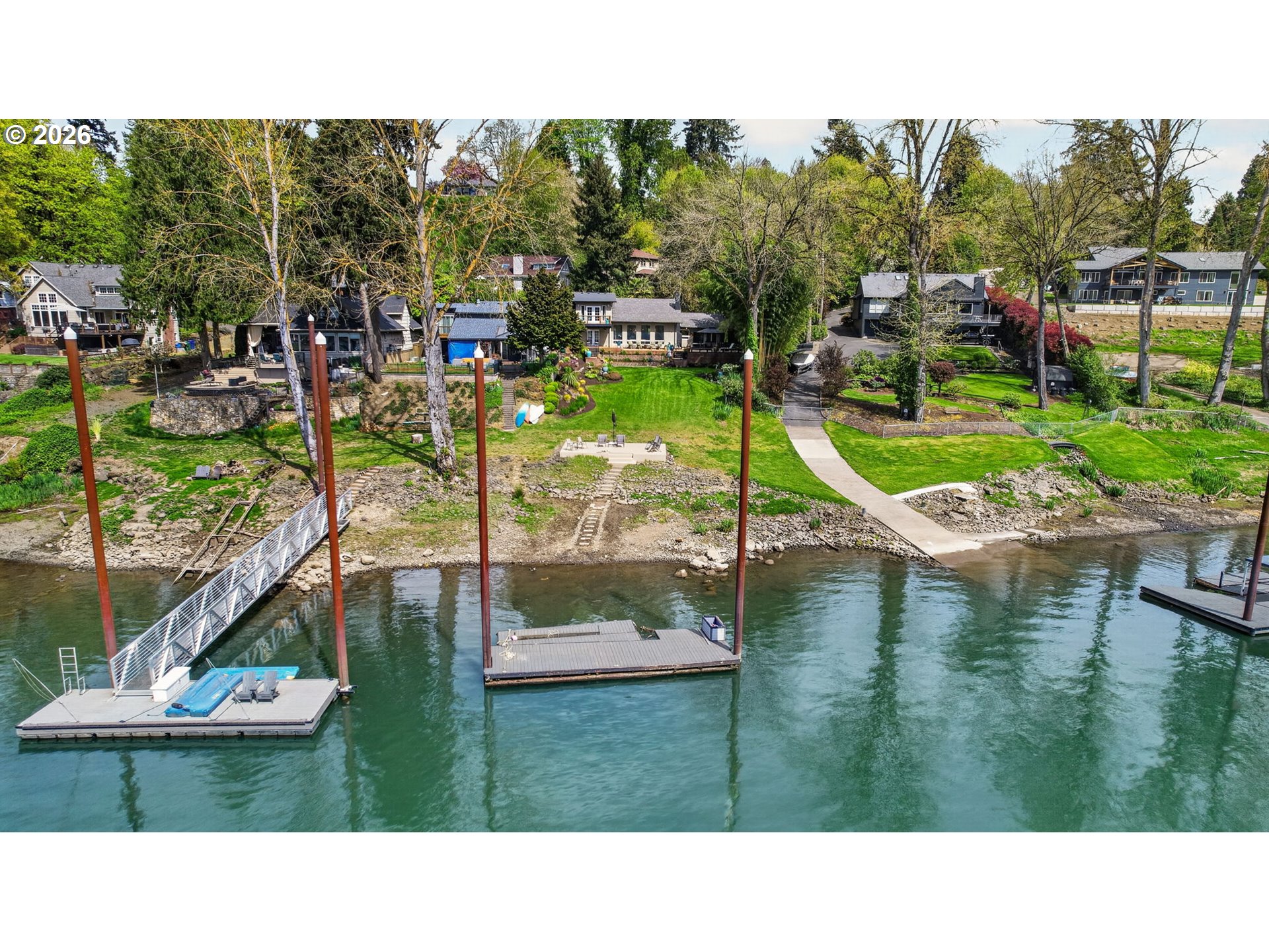 This fabulous contemporary home is ideally located on the scenic Willamette River, offering both tranquility and convenient access. Designed to embrace its stunning surroundings, the property features expansive windows and an open layout that frame breathtaking water views. Step outside to a spacious river-view patio—perfect for entertaining, dining, or simply relaxing while enjoying the peaceful flow of the river. Your very own beach!! The private dock and "summer river patio" provide direct water access, making it easy to launch a kayak, paddleboard, or boat right from your backyard. Blending modern elegance with a prime waterfront setting, this home delivers a truly exceptional living experience. Boat/RV parking.