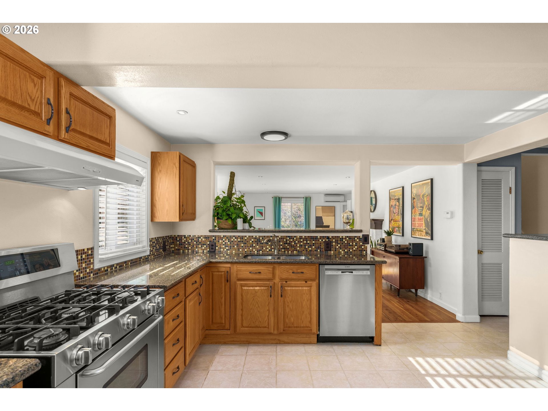 Welcome to this stylish Milwaukie home perfectly situated on a large, flat lot on a quiet cul-de-sac close to numerous amenities. From the welcoming front door, this house provides a relaxing vibe. As you enter the open and airy living room, the light filled space envelops you. Large windows, rich hardwood floors and a large brick fireplace make the space a cozy spot to enjoy a cup of tea or throw an impromptu dance party. The spacious kitchen is designed with both everyday living and entertaining in mind, featuring abundant counter space and an inviting layout. A sliding glass door leads to a patio with an inviting hot tub, perfect for year-round relaxation. The main level also includes a primary bedroom with en suite bathroom and double closets, a second full bathroom and a spacious family room. The main level’s circular floor plan also allows for maximum flexibility. With four additional bedrooms upstairs, there’s plenty of space for a home office and out of town guests. Outside, you’ll discover one of the home’s most special features: a level, oversized lot with several mature fruit trees and a patio with a gorgeous pergola. Whether you’re envisioning summer BBQs under the stars, working on your master-gardener skills, creating a play space, or just enjoying your peaceful, private retreat, this space can fulfill your vision. A large attached garage as well as a storage shed provide ample room for hobbies, gear, or weekend adventures.This home offers the best of both worlds-a tranquil space to call your own and a prime location just minutes from shopping, dining, and amenities in Milwaukie and Sellwood. [Home Energy Score = 4. HES Report at https://rpt.greenbuildingregistry.com/hes/OR10243755]