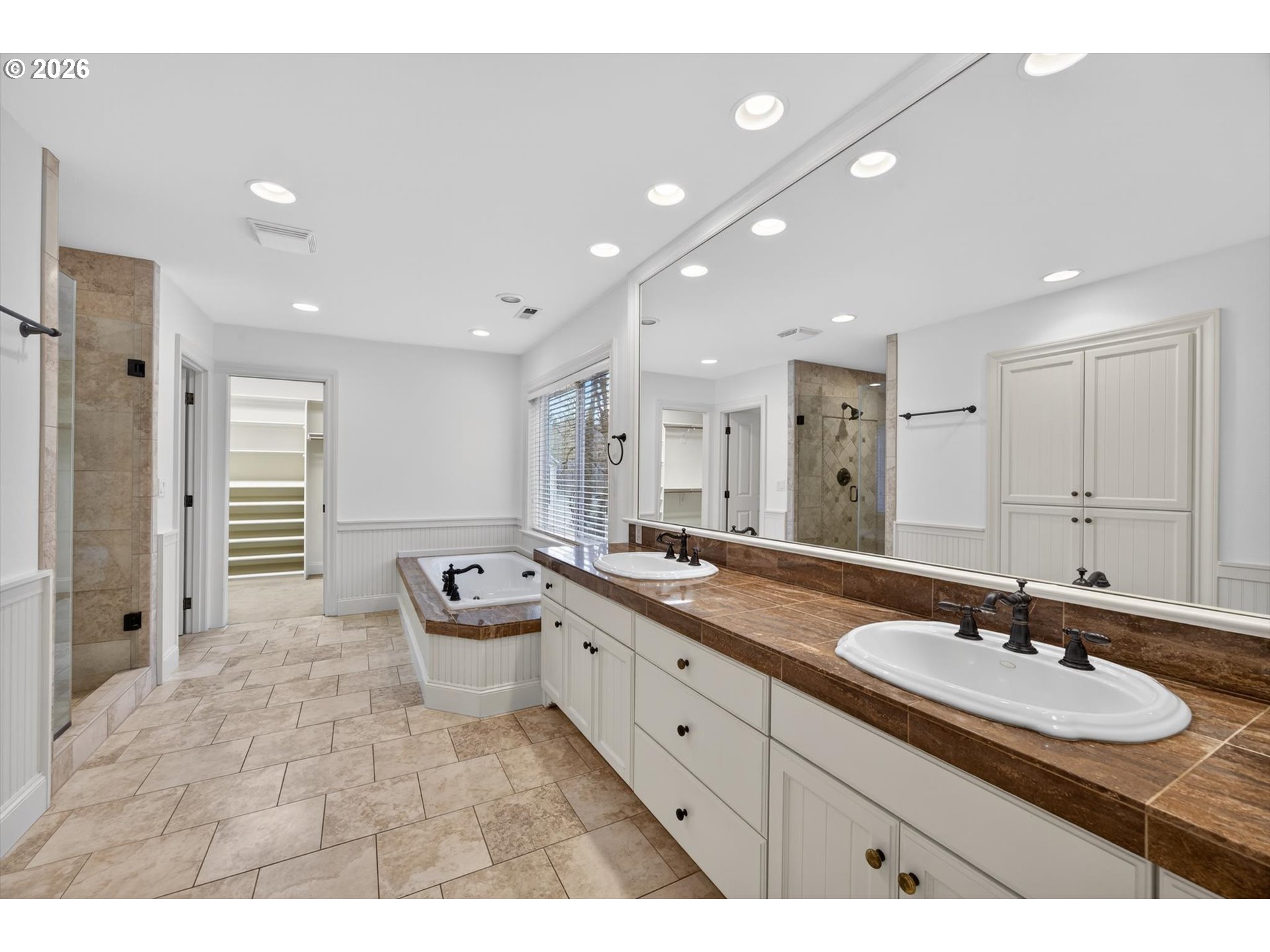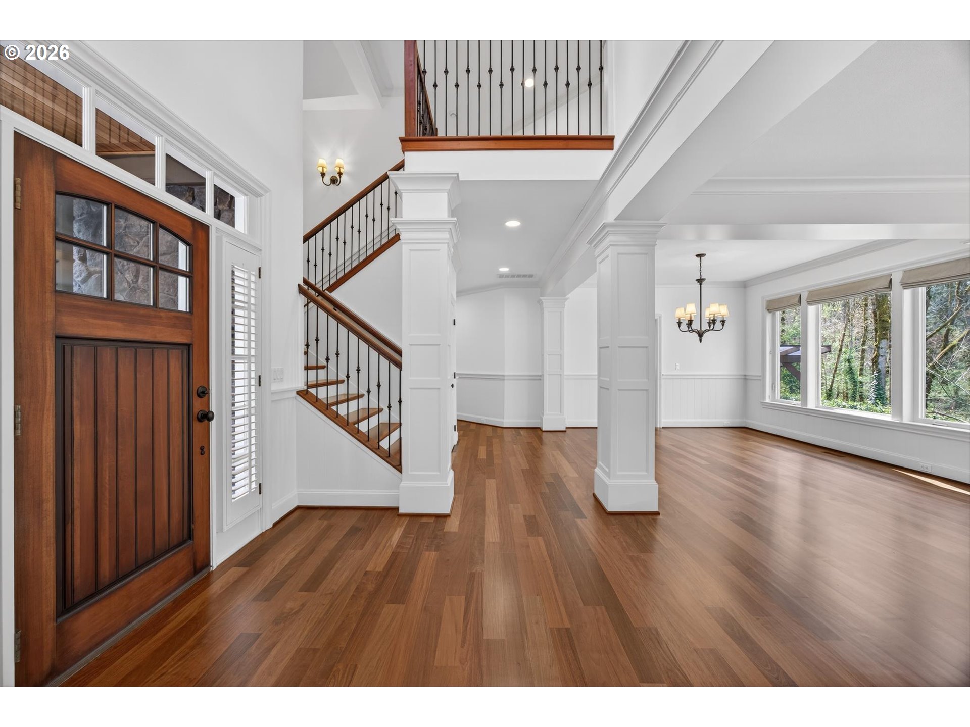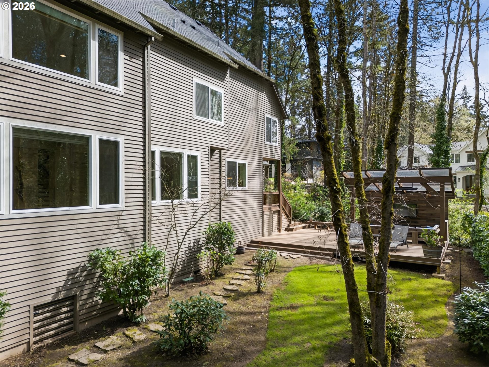 Tucked at the end of a private cul-de-sac in Lake Oswego’s Westridge neighborhood, this private 5 bedroom, 3.1 bath home backs to a tranquil greenspace and is located just minutes from town. At just over 4000 square feet, this home features refinished solid hardwood floors, new carpet on the main level, and fresh interior paint. The bright foyer opens to office with built-in cabinetry, a living room with fireplace, and formal dining. Large windows frame serene park-like views. The updated kitchen flows to the dining nook and family room with built-in cabinetry and a second fireplace. Upstairs offers five bedrooms, including a spacious primary suite with sitting area, spa-like bath, and walk-in closet; flexible fifth bedroom is ideal for a media room or guest space. Enjoy a stunning covered deck and outdoor living area surrounded by nature, which perfect for year-round entertaining with the covered space. Privacy, tranquility, quality and a brand new roof!