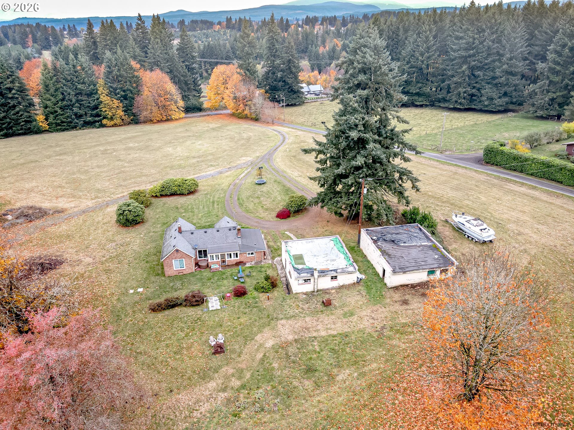 EPIC almost 30ac of park like setting with miles of timbered trails to walk or ride, year round creek and two bridge crossings. Ideal for nature, equestrian, or ATV enthusiasts! Adorable 1354 sf cottage style 1 level home with 3 bdrms (non conf) & 2 baths. Newer 50x120 shop ready for your customization. Merchantable timber. Location! Owner is Lic Oregon RE Broker. 24 hr notice to tenant required to show.
