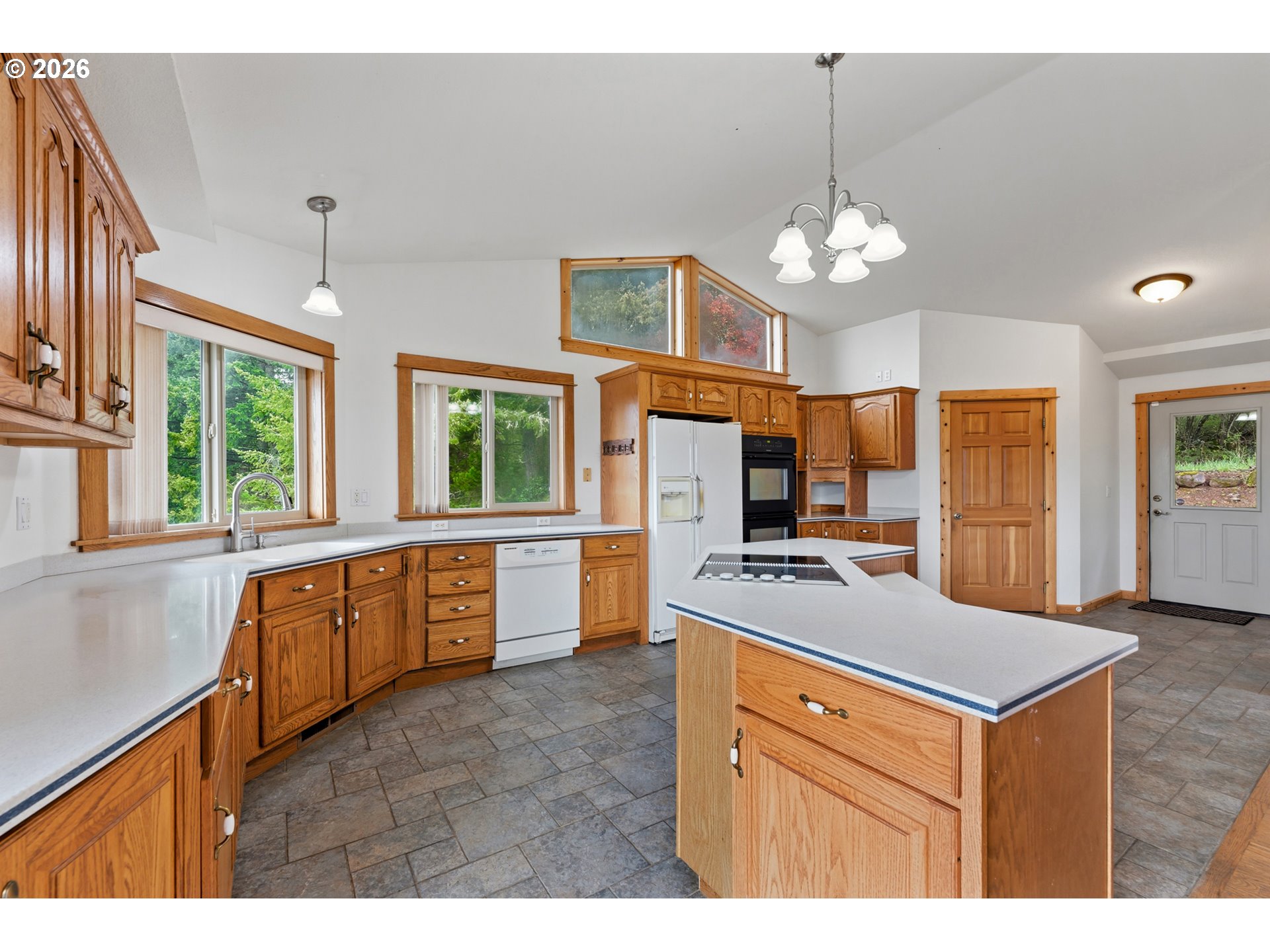 BuiltinOven, Cooktop, Dishwasher, DoubleOven, FreeStandingRefrigerator, Island, Pantry, SolidSurfaceCounter