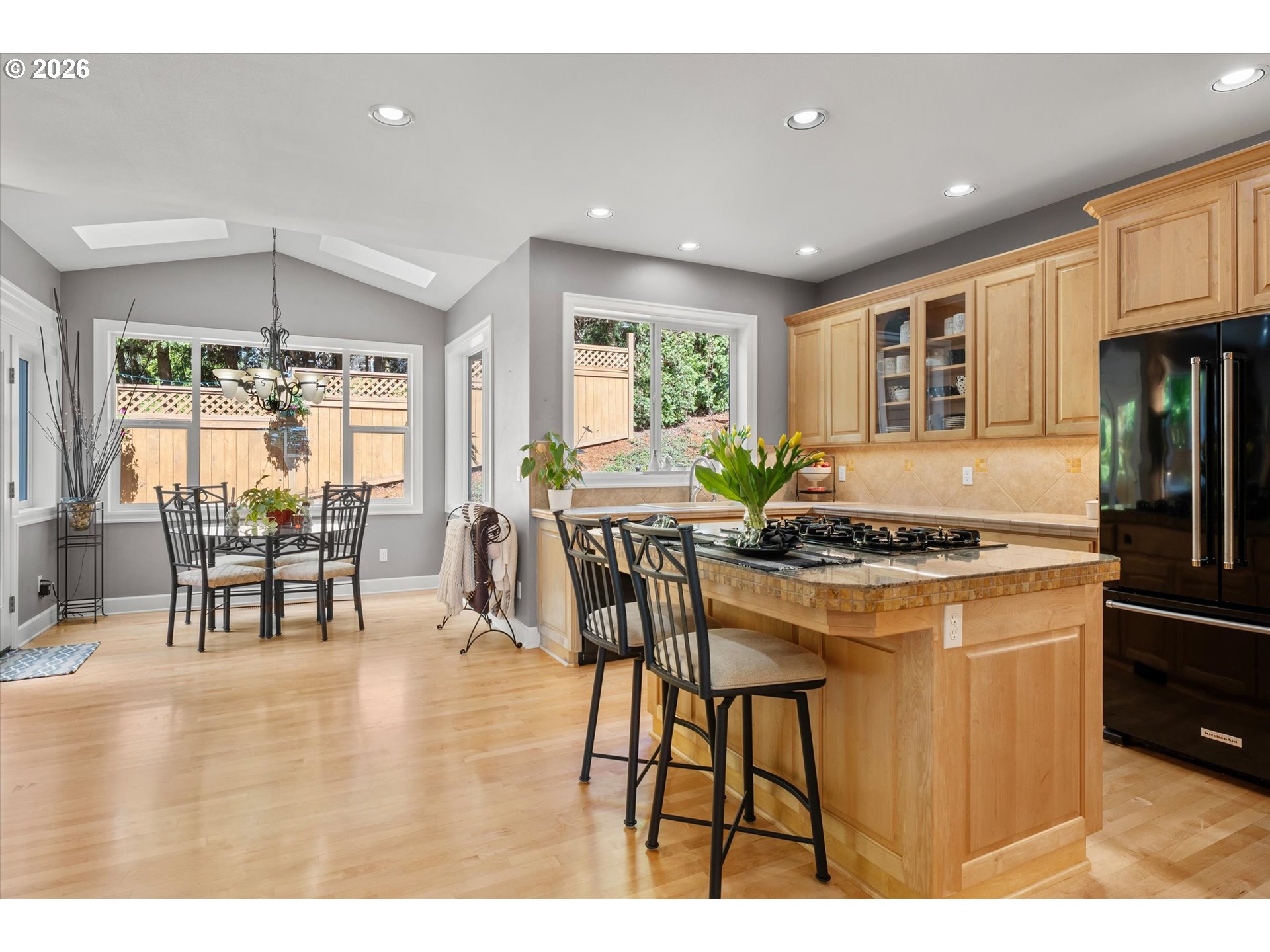 This high quality luxury townhome has been both tastefully and practically updated and is ready for you to move right in! This end unit is on a dead end street and is adjacent to green space making it quiet and tranquil. The open kitchen, dining nook large windows and skylights, plus great room with a door out to patio is perfect for entertaining. High end luxury finishes and surfaces throughout. Kitchen features island with gas range and a large, walk-in pantry. Large beautiful dining area and open living room create lots of room to spread out. Upstairs the spacious en-suite primary bedroom features an additional flex space to be used as an office, craft room, or reading room, plus two large walk-in closets plus a linen closet and an amazing bathroom with a jetted tub shower and double sinks, plus a slider from the bedroom out to a balcony! The large additional bedroom also has an ensuite bathroom, great for privacy for family members or house guests multi-generational living! The 2 car garage is large, and an additional storage room, or flex space, on ground level that can be used as a wine cellar, work room, small shop etc. All new siding, deck, roof, skylights and gutters within the past year as well all new HVAC (furnace and A/C unit, plus ductwork inspected and improved). Newer washer and dryer included. Central vac system. Highly rated schools and close to parks, shopping, restaurants, transit and easy access to freeways! HOA $568/month includes all exterior maintenance.