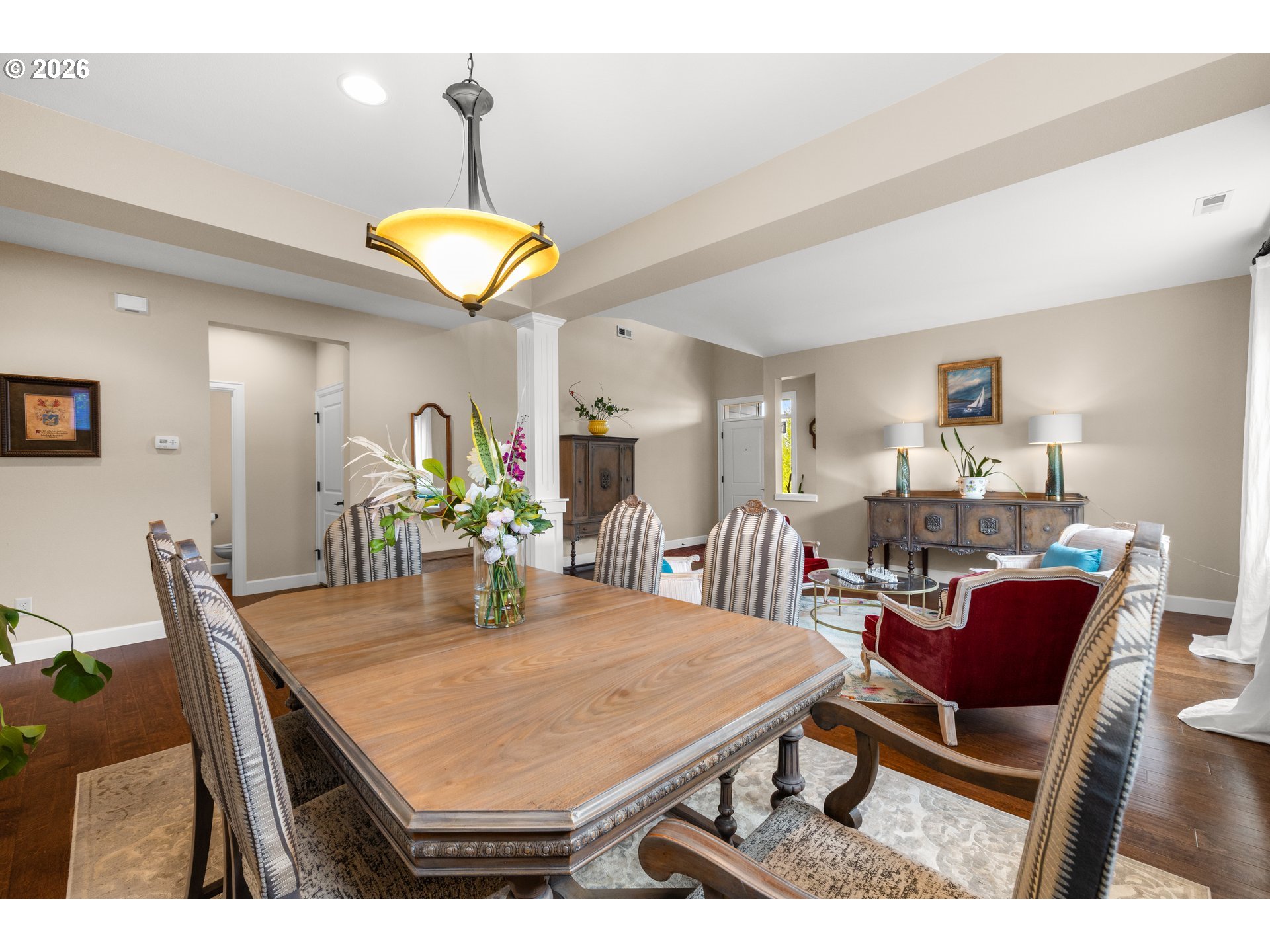 Meticulously maintained 2-story traditional home nestled in a sought-after West Linn neighborhood, ideally positioned on a .22-acre lot at the top of a quiet street, capturing stunning territorial views. Built in 2013, this home reflects quality construction and true pride of ownership throughout. The main level offers a flowing, functional layout with rich hardwood floors, soaring vaulted ceilings, and spacious formal living and dining rooms. The open-concept great room is ideal for entertaining, featuring a well-appointed kitchen with stainless steel appliances that flows into a generously sized family room and out to a private back patio. A powder room and dedicated office add flexibility and convenience to the main level.Upstairs, you’ll find all four bedrooms, including an expansive primary suite with a cozy reading nook or flex space that opens to an incredible covered deck—perfect for enjoying peaceful morning coffee or evening sunsets right from your bedroom. A large bonus room provides additional versatility and could easily serve as a fifth bedroom, media room, or play space.The oversized three-car tandem garage offers ample space for parking, storage, and all your outdoor gear. Ideally located just minutes from Hilltop shopping center, local restaurants, Tanner Creek Park, Historic Old Town, and scenic walking trails along the Willamette and Tualatin Rivers, as well as nearby parks, green spaces, and local wineries. Situated within top-rated school boundaries, this home delivers the perfect blend of comfort, convenience, and the best of Pacific Northwest living.