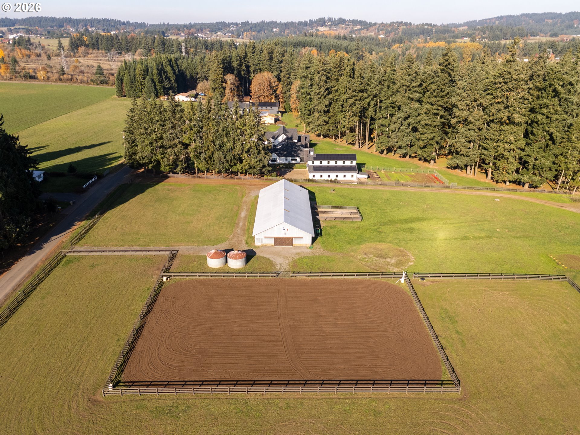 Exceptional Equestrian Estate on 15.79 fully usable acres in one of Wilsonville's most desirable rural settings. The 2022 custom-built single-level residence, designed by architect Troy Fowler and constructed by NW Natural award-winning Elite Development Northwest, offers 5,436 square feet of elevated living. Expansive ceilings and windows flood the interior with natural light, while white oak hardwood floors and designer lighting create warmth and sophistication throughout. With six bedrooms, including two luxurious primary suites, and five full bathrooms, the layout is both functional and refined. A beautifully appointed separate living space provides ideal flexibility for guests, extended stays, or multi-generational living. The entertainer’s kitchen is equipped with Sub-Zero and Wolf appliances, quartzite and quartz countertops, and premium Rohl fixtures, seamlessly blending performance with design. Spa-inspired bathrooms feature Victoria + Albert volcanic limestone soaking tubs and elevated finishes that create a true retreat experience. Beyond the residence, the property is fully equipped to support an exceptional equestrian lifestyle. Privately gated with a paved drive and secondary farm access, the acreage is framed by over 4,000 linear feet of classic four-rail wood fencing, creating two expansive pastures and multiple open field areas. A fenced 180’ x 100’ outdoor dirt arena provides dedicated space for schooling and training. The 110’ x 50’ renovated barn, originally built in 1935, blends timeless character with modern functionality. It offers four spacious stalls with generous run-outs, a heated tack room, heated bathroom with washer and dryer, wash rack with hot water, storage room, and two striking 14-foot diameter silos with concrete floors. An irrigated garden area & a private approximate two-acre forest area further enhance the land's beauty and versatility. Excellent & convenient location, just minutes from I-5 access and & local amenities.