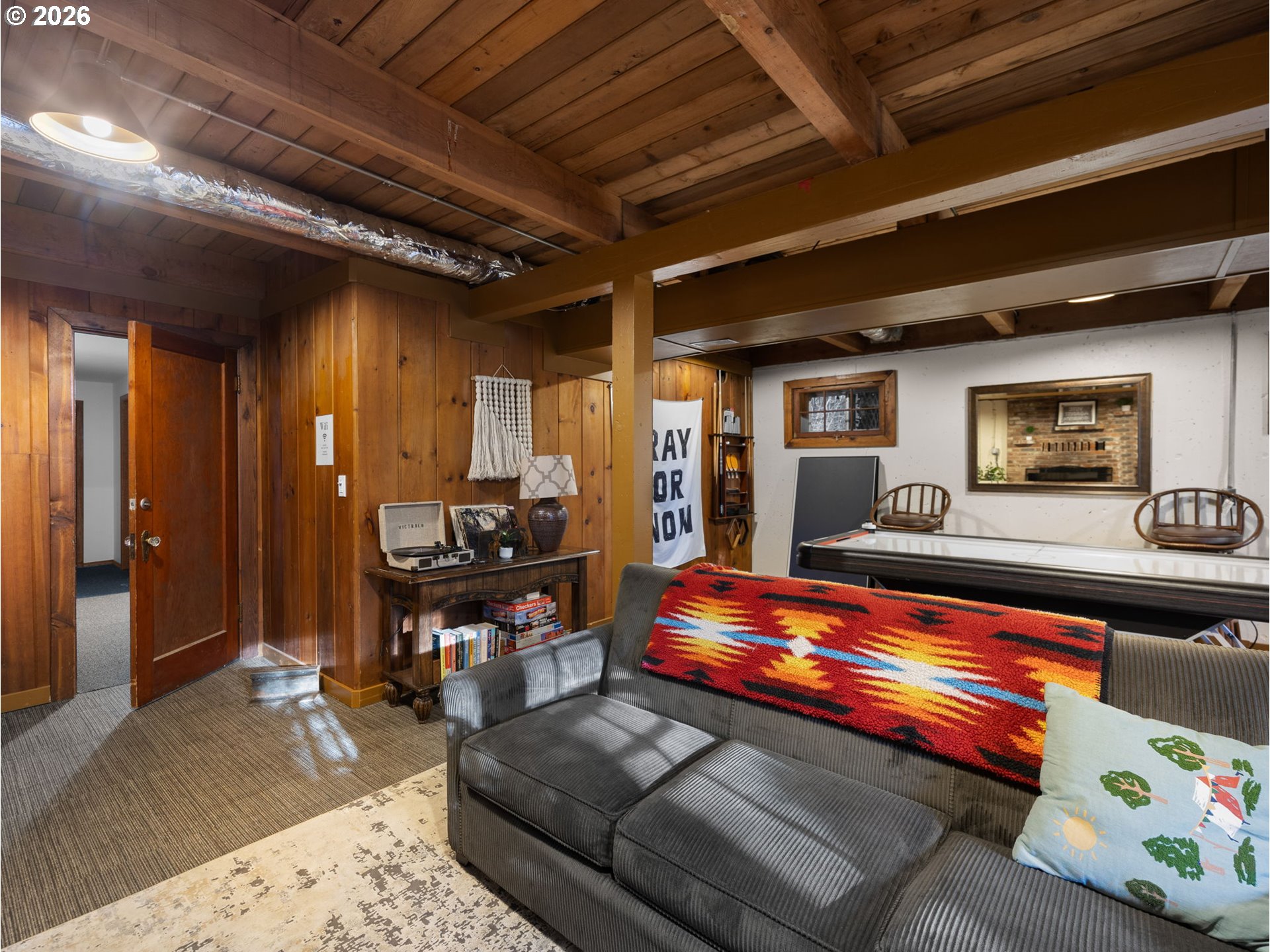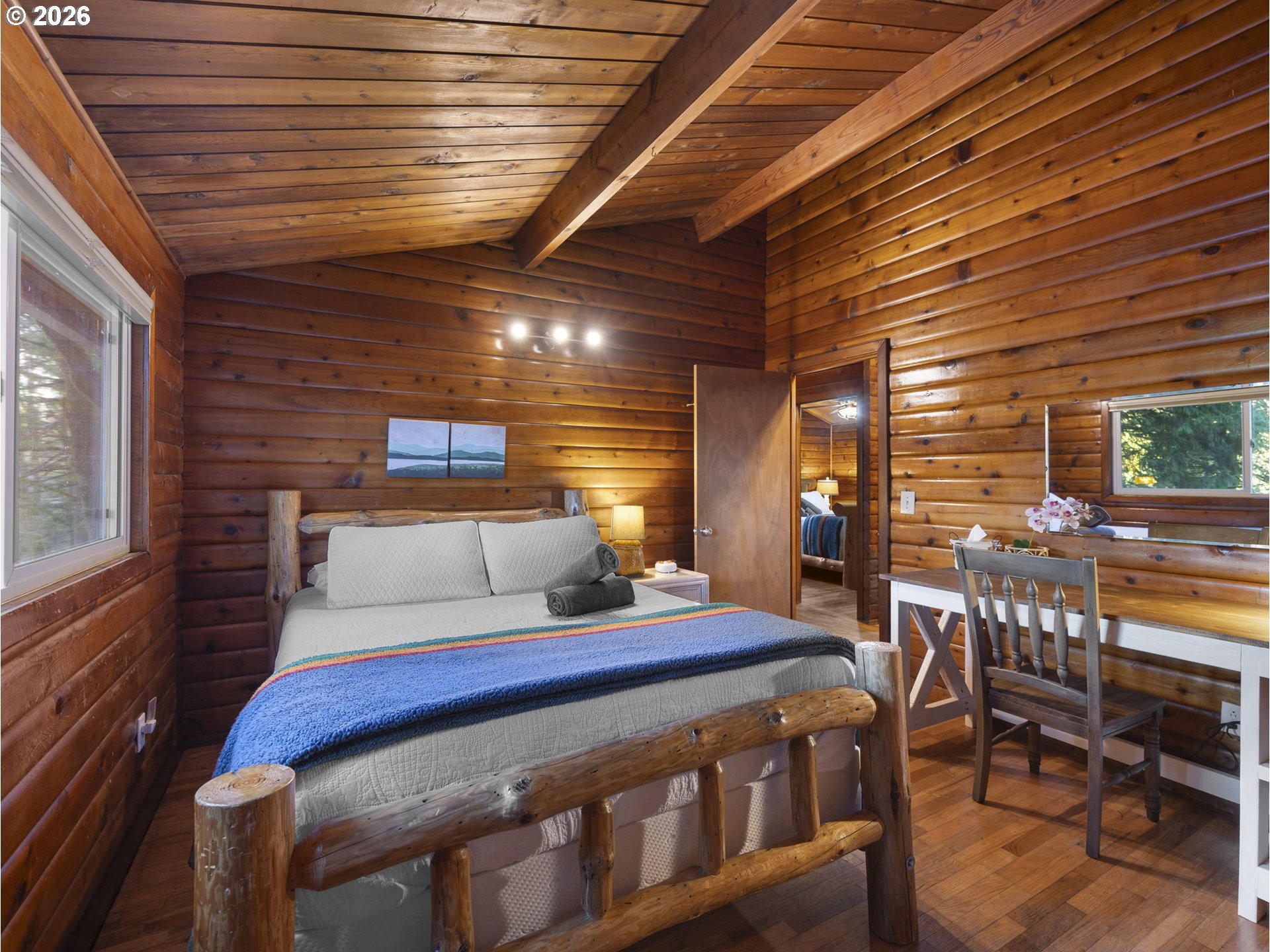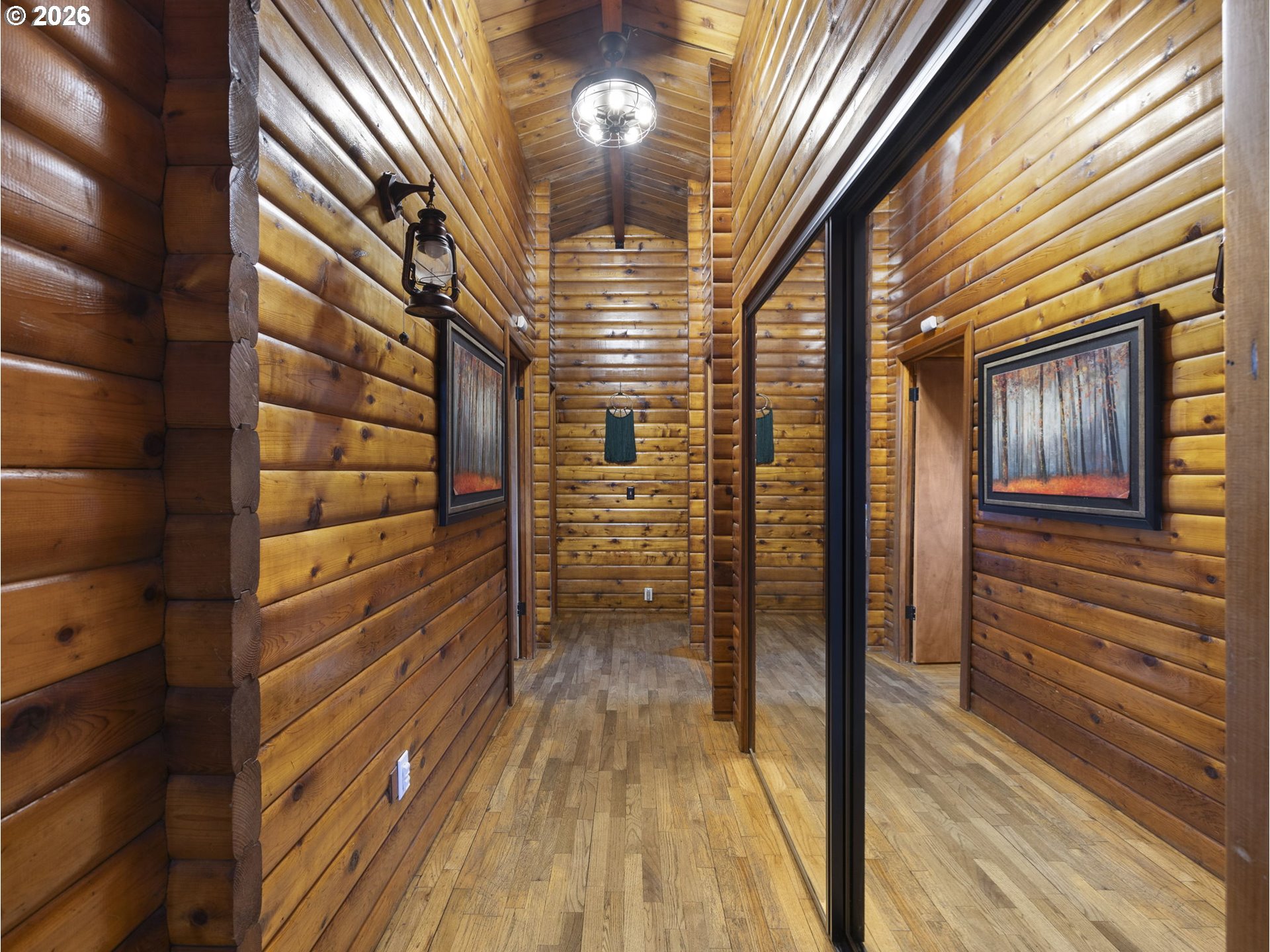Inside this 4-bedroom, 2-bath home, nestled at the base of Mt. Hood, lives a beautiful log cabin with the complete mountain vibe boasting vaulted tongue n groove ceilings and open beams. The main level offers a large living room with fireplace insert, dining room with pellet stove, upgraded kitchen with access to the covered back deck, 3 bedrooms and 1 bathroom. The lower level has front and rear yard exterior access. Descending to the great room below from inside, you will find a large open family room with woodburning fireplace and game area as well as 4th bedroom, remodeled bathroom laundry/utility area door to the attached garage. Covered hot tub sits outside the rear door on the lower level for privacy. Quaint bridge off the upper back deck leads to the remainder of the acreage up the slope for a little extra adventure. New roof and HVAC system within the last 2 years!