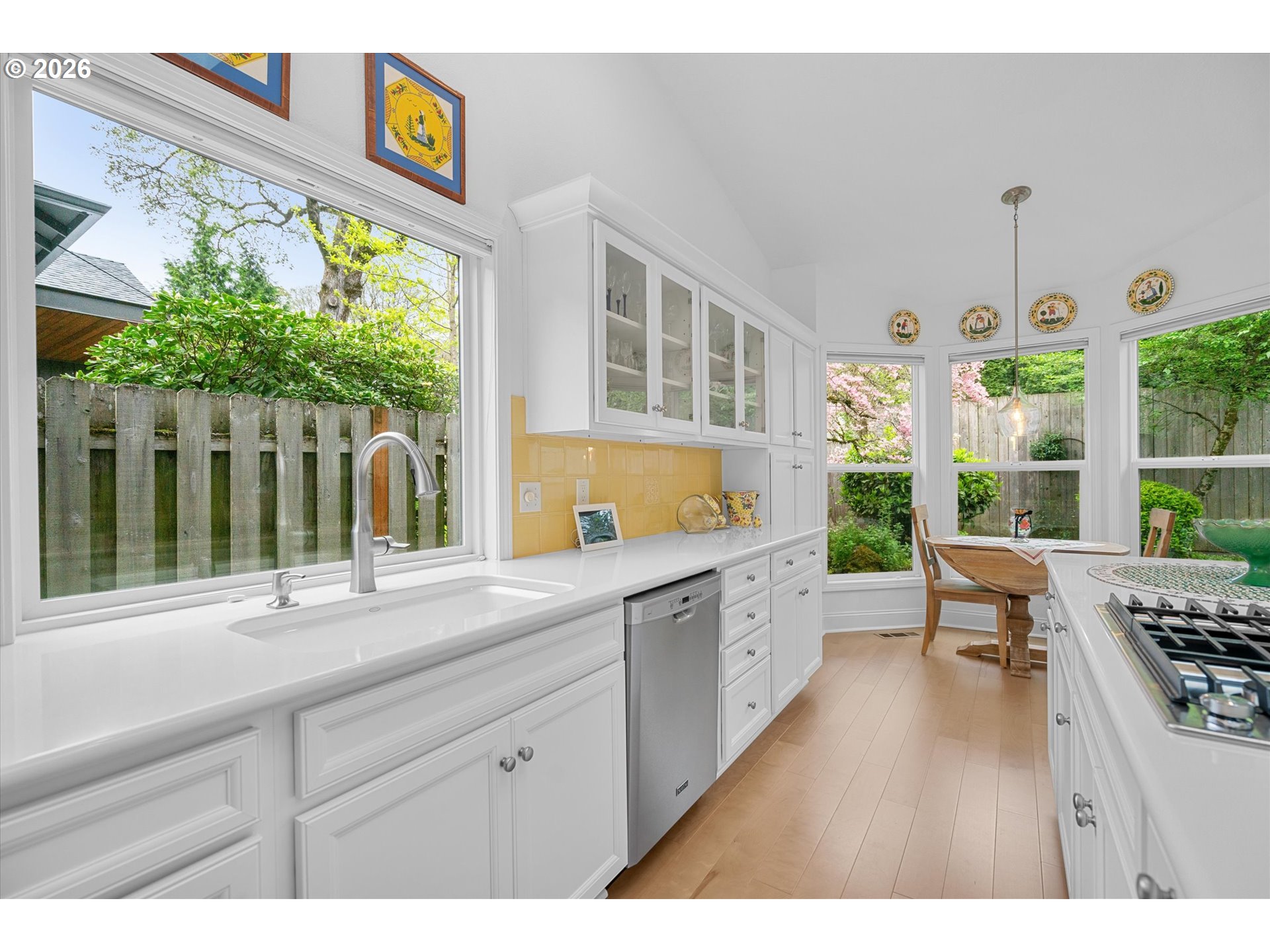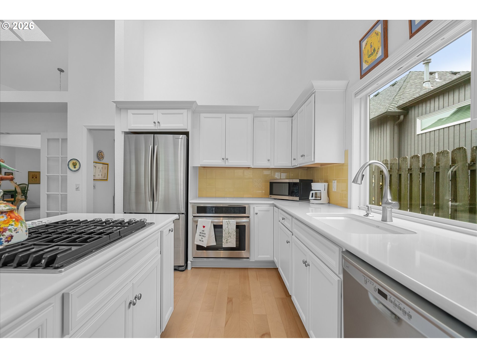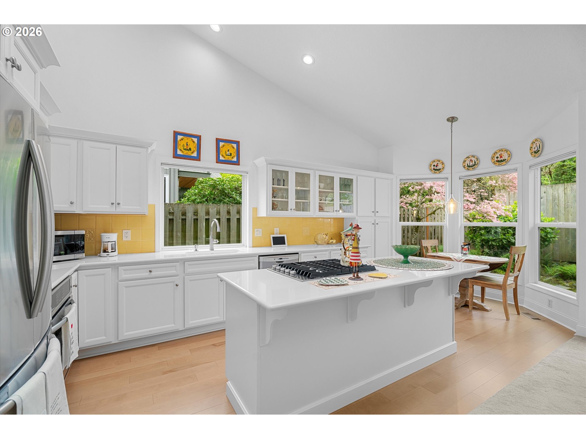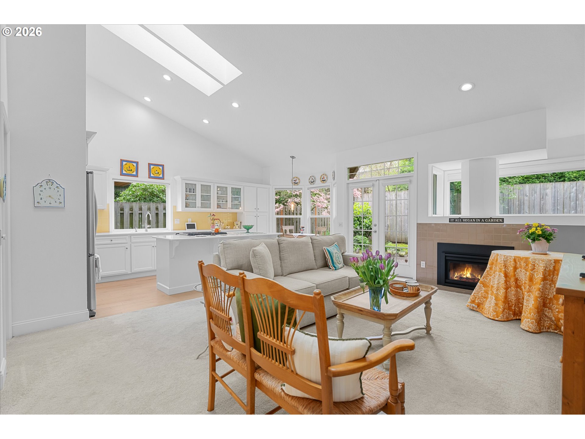 Impeccably maintained and move-in ready! Welcome to this single-level gem in Lake Oswego's coveted Windfield neighborhood; this could likely be the one you have been waiting for! Enjoy the new roof (2025), updated furnace & AC (2024), newer water heater, and fresh exterior paint (2024). This home has been lovingly maintained, and it shows in every detail. With 2,038 sq ft, the 2-bedroom, den, 2-bath floor plan is as functional as it is beautiful, with vaulted ceilings throughout the Kitchen/nook/ family room! The skylights and windows flood every room with natural light. There is superb circular flow with the living and dining rooms moving easily into the great room. The family room features a tiled gas fireplace and French doors opening to the backyard, while the kitchen impresses with a generous island, built-in gas stovetop, loads of cabinets, and a sunny south facing coffee nook. A charming set of French doors open into the office which include extensive built-ins. The primary suite is a peaceful retreat with vaulted ceiling, abundant natural light, and an en suite bath with skylight, double sinks, soaking tub, glass shower, and a spacious walk-in closet. The laundry room is equally well-appointed with built-in storage, washer and dryer, and direct garage access. The oversize two car garage is finished, clean and includes a newer garage door & openers.Outside, a concrete patio is ideal for entertaining, a fully fenced backyard provides privacy, and a stone path winds around to the welcoming front entry patio with room for potted gardening; all nestled in one of the most charming neighborhoods in the area. Welcome home!Pristine, polished, and ready for you!