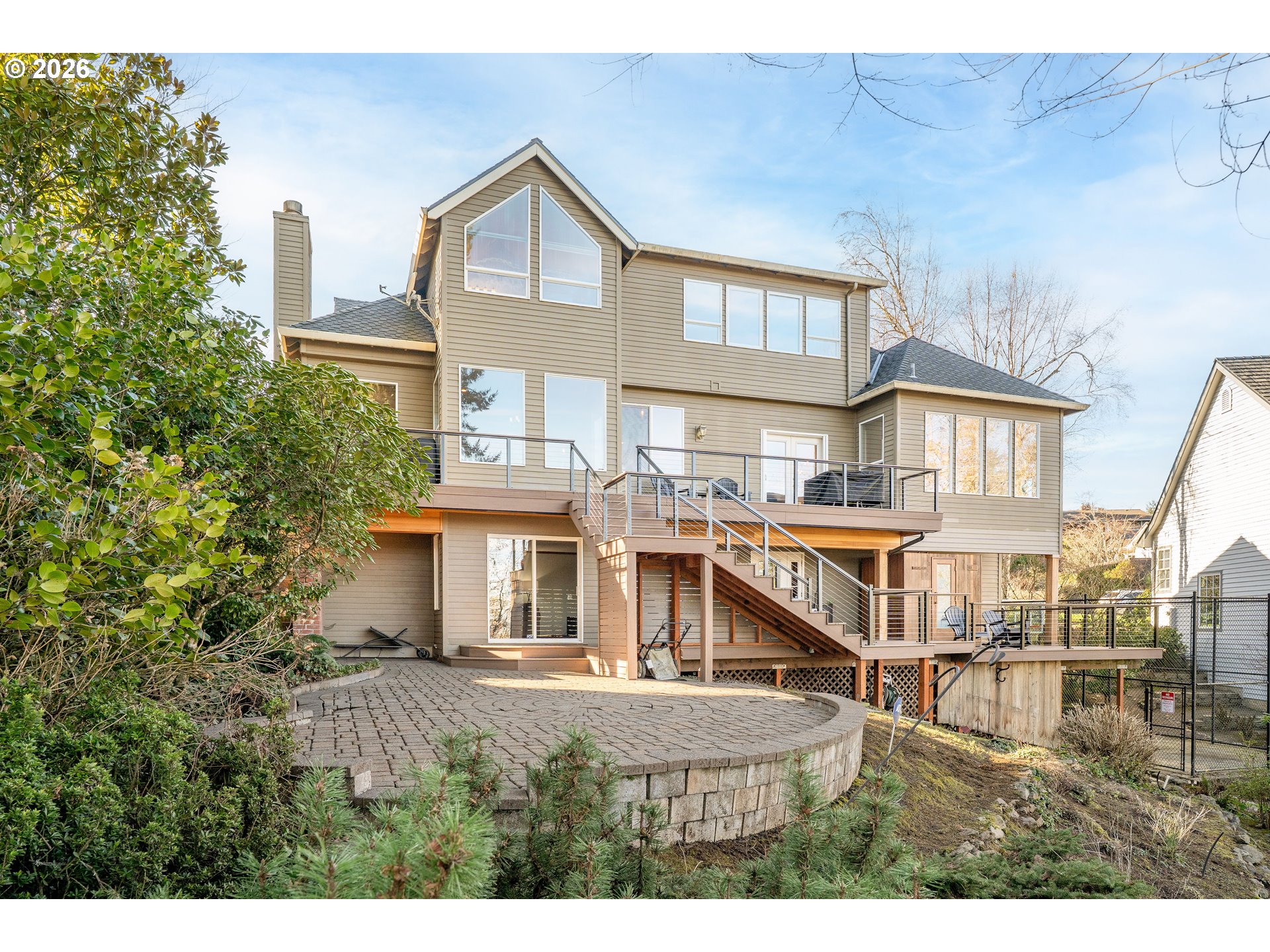 Stunning West Linn mountain-view home offering privacy, outdoor living, and modern updates on a lush quarter-acre lot. Everything you could want in this light and bright 4,413 sq ft, three-level home featuring 4 bedrooms (optional 5th), 3.5 bathrooms, and 3-car garage, surrounded by mature trees for a true Pacific Northwest feel. An impressive entry welcomes you with high ceilings, hardwoods & beautiful views. The remodeled chef’s kitchen combines form and function; white quartz countertops, custom cabinetry, large eat-in island, tile backsplash, and updated appliances, opening to a nook, great room and outdoor deck. Large den/study with wood built-ins and laundry room with sink also on main floor. Upstairs are three bedrooms and a spacious primary suite with gorgeous tree lined and mountain views. The lower level offers separate guest area with bedrooms, full bath, and multi-functional family room with outdoor access to patio and decks. Added bonus is a 575 sq ft climate-controlled space ideal for storage or workshop. Exceptional backyard creates private retreat; includes a brand-new two-level Trex deck with covered sitting area and built-in lighting, gas firepit, patio, sport/basketball court, yard and sauna. Recent systems updates include a new roof (2023) and newer A/C (2025). A rare West Linn luxury home with move-in-ready upgrades, ample storage and wonderful location offering year-round enjoyment and top-rated schools. No HOA. Welcome home!