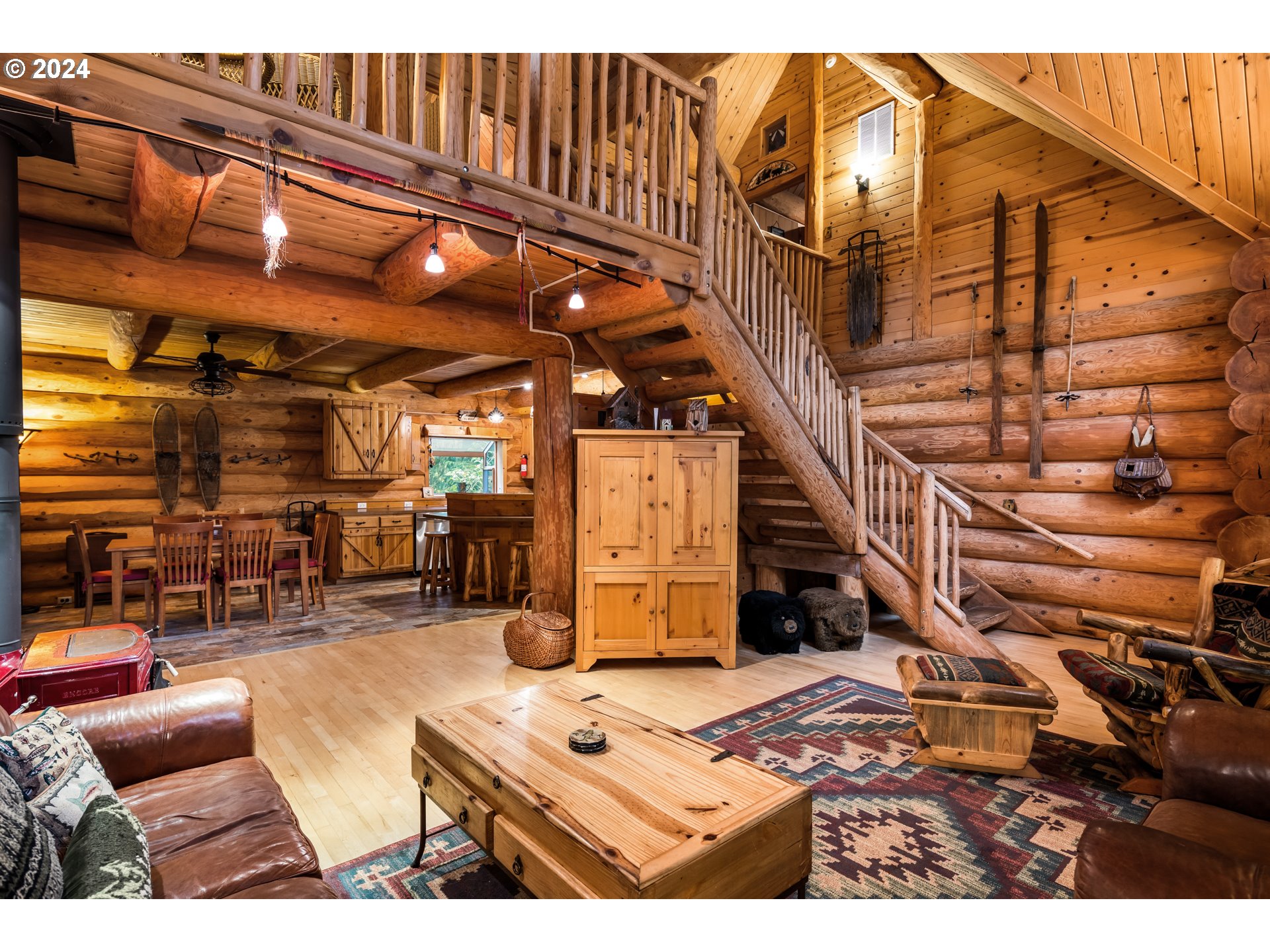 Escape to your own private sanctuary along the Sandy River, where peace and relaxation await. This stunning handcrafted custom log home is nestled on 3.59 wooded acres with over 320 feet of river frontage, offering a rare blend of privacy and natural beauty. Located on the desirable east side of Sandy, the property provides convenient access to hiking trails, mountain resorts, and year-round recreation. With a proven 20-year history as a successful vacation rental, it’s ideally positioned for world-class steelhead and salmon fishing, just minutes from Sandy Ridge’s renowned mountain biking trails and less than 30 minutes from Timberline Lodge. Designed for both comfort and entertaining, the outdoor spaces are exceptional. Unwind on the covered deck with a hot tub overlooking the serene landscape, or relax in the Finlandia sauna with an attached shower after a day on the river or trails. A fire pit and gazebo picnic area sit near the river’s edge, creating the perfect setting for gatherings. Additional features include RV parking with hookups, a wood shed, and a spacious 35' x 30' detached pole building with ample storage and a two-car carport. Inside, the vaulted great room features a cozy wood-burning stove, ideal for chilly evenings. The open dining area includes an island with bar seating. Thoughtful upgrades include new countertops, stainless steel appliances, slate tile, and maple flooring. A laundry/mudroom with exterior access adds convenience. The main level offers a bedroom and full bathroom with a classic clawfoot soaking tub. Upstairs, the primary suite is perfectly positioned to take in the soothing sounds of the river, along with two additional bedrooms and a cozy loft reading area. Starlink internet provides reliable connectivity for remote work, while nearby BLM land ensures exceptional privacy with no neighboring properties in sight. This is a rare opportunity to own a truly special riverfront retreat!