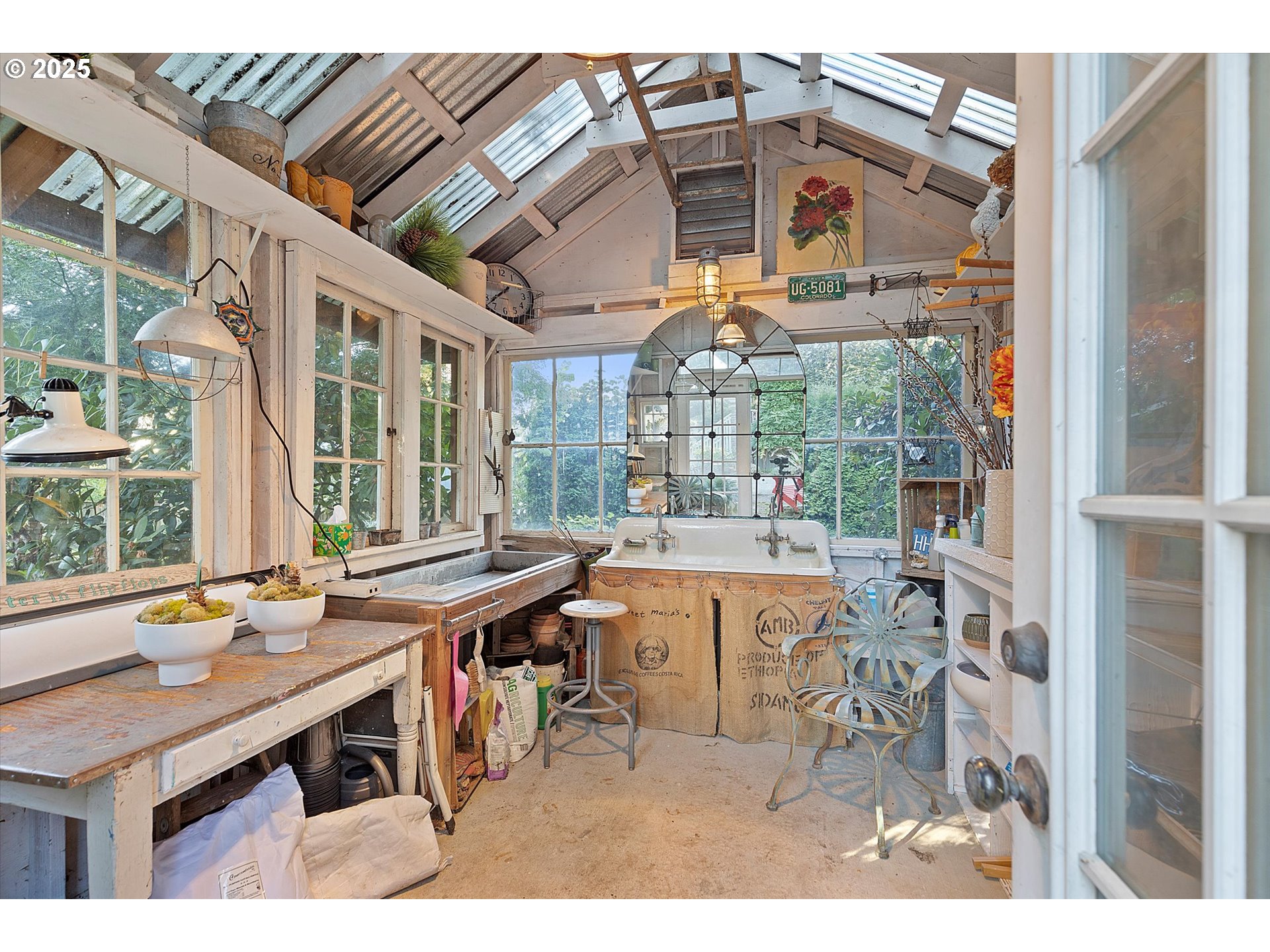 1905 gorgeous Craftsman home on .61 beautiful usable flat acres, peaceful and serene, a haven to relax and entertain in, yet just a mile to the Springwater Trail and 3 miles to all the shops and restaurants of Sellwood! This is the type of home you would expect to find in Hawthorne or Irvington neighborhoods, except it would be on a tiny lot! Rare and unique! It also has a 3 car garage with workshop and over 600SF, separate, really pretty ADU! House is set way back from the road with big front porch, artsy greenhouse shed, and big deck for entertaining in back. You will fall in love with the yard! There isn't enough room to describe all the features! Hardwood floors, picture molding, gorgeous woodwork, wainscotting, built in China hutch and book case, open wood staircase, and a new kitchen with huge metal top island, wainscoting, and gas range, with sunny porch work area and pantry! Den office/bedroom with closet and slider to deck, plus small bathroom with shower, on main floor. Upstairs has large master with 2 walk in closets with windows, plus 2 other bedrooms, and basement is completely remodeled with 2nd kitchen (no range), remodeled bathroom, family room with electric fireplace, bedroom, awesome laundry area and outside entry. The garage is huge with it's own electrical panel, and washer and dryer. ADU above the garage has a great room with new kitchen, a large bedroom with walk in closet and remodeled bathroom, plus slider to it's own deck. House is gated, with sweeping lawns, secluded hot tub in back, flower beds and pretty landscaping, brick patio, numerous sitting areas around the yard, plus an artsy greenhouse shed! You will fall in love with this unique, hard to find gem!