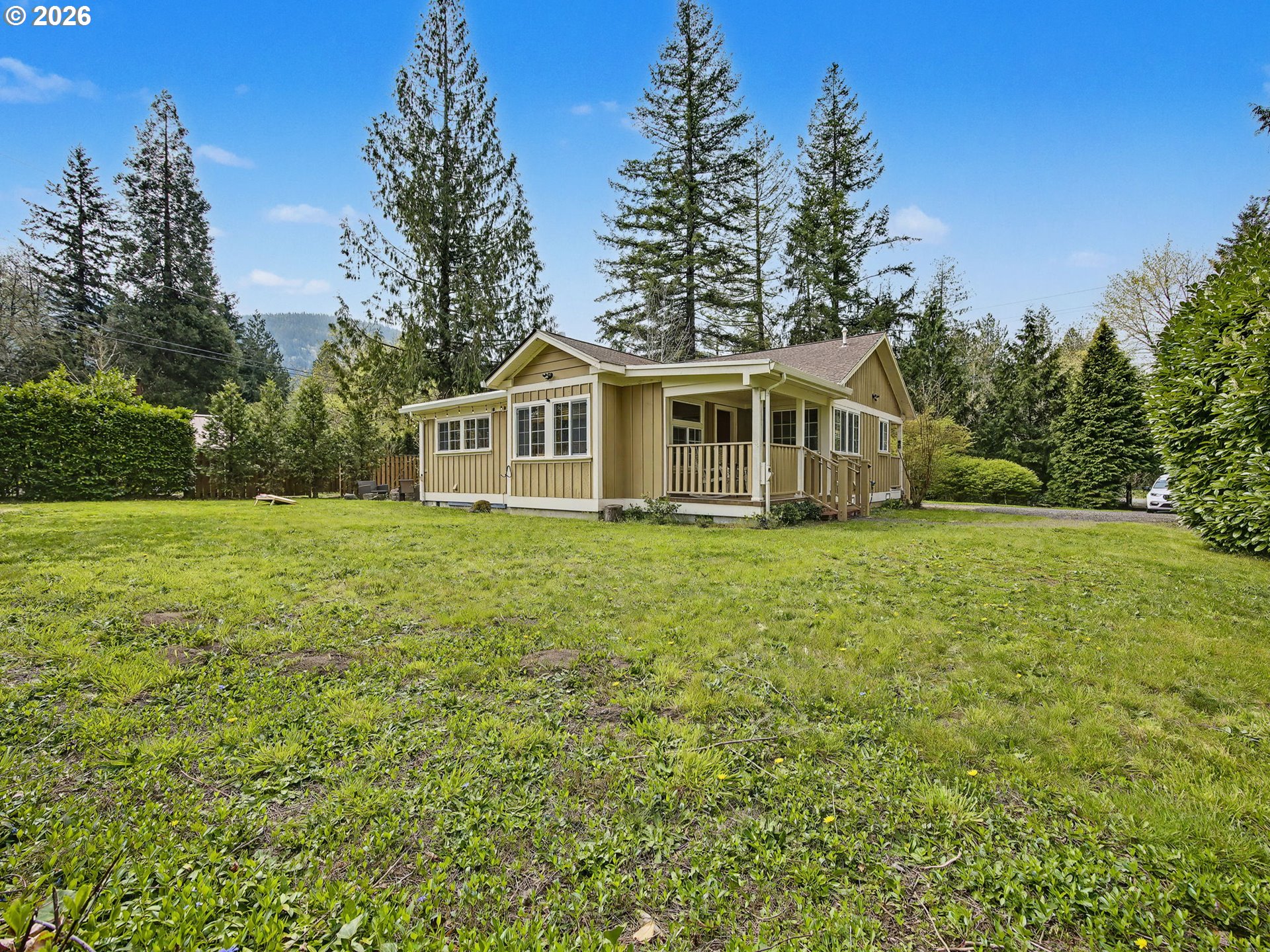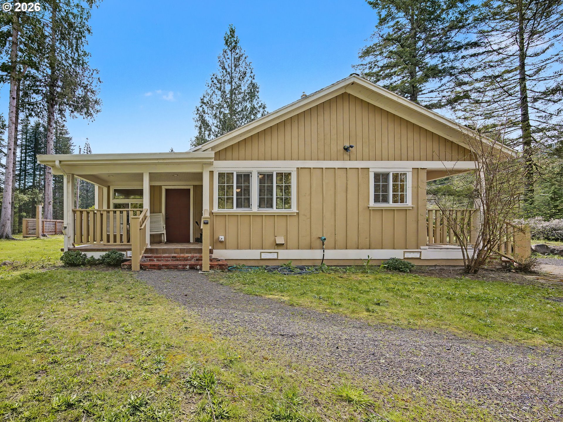If you’re looking for a private retreat near the Sandy River on nearly a half acre, this updated 1925 Craftsman delivers Mt. Hood charm with modern comfort. Thoughtfully restored by a local craftsman, this 2 bedroom, 1 bath cabin is ideal as a full-time residence, second home, or investment property. Step inside to an impressive great room featuring a stone fireplace, soaring vaulted wood ceilings with exposed beams, and restored paned windows that fill the space with natural light. The open living and dining area flows easily into the kitchen, complete with stainless steel appliances and a gas range. Wood floors run throughout the home.The spacious bathroom offers a tiled walk-in shower and integrated laundry area. The primary bedroom opens to a private deck, while the second bedroom, just off the living room, features barn doors and bunk beds for guests.Previously used as a short-term rental, the home is being sold furnished. Shared well and a newer septic system (installed approximately 5 years ago). Bonus outbuilding/shed for storage. Outdoor living shines with multiple gathering spaces, including two stone patios and a large fire ring—perfect for summer evenings. The backyard offers room for games and relaxation, with views toward Devil’s Backbone Ridge along the historic Barlow Trail. Enjoy the sound of the Sandy River just a short distance away.For outdoor enthusiasts, the Sandy Ridge Trail System with 17 miles of biking trails is just minutes away. Convenient access to Highway 26 puts you on the slopes in about 20 minutes, with hiking, rivers, and Mt. Hood National Forest all nearby. Groceries and restaurants are approximately 5 minutes away, and PDX is under an hour—making this an ideal mountain escape.